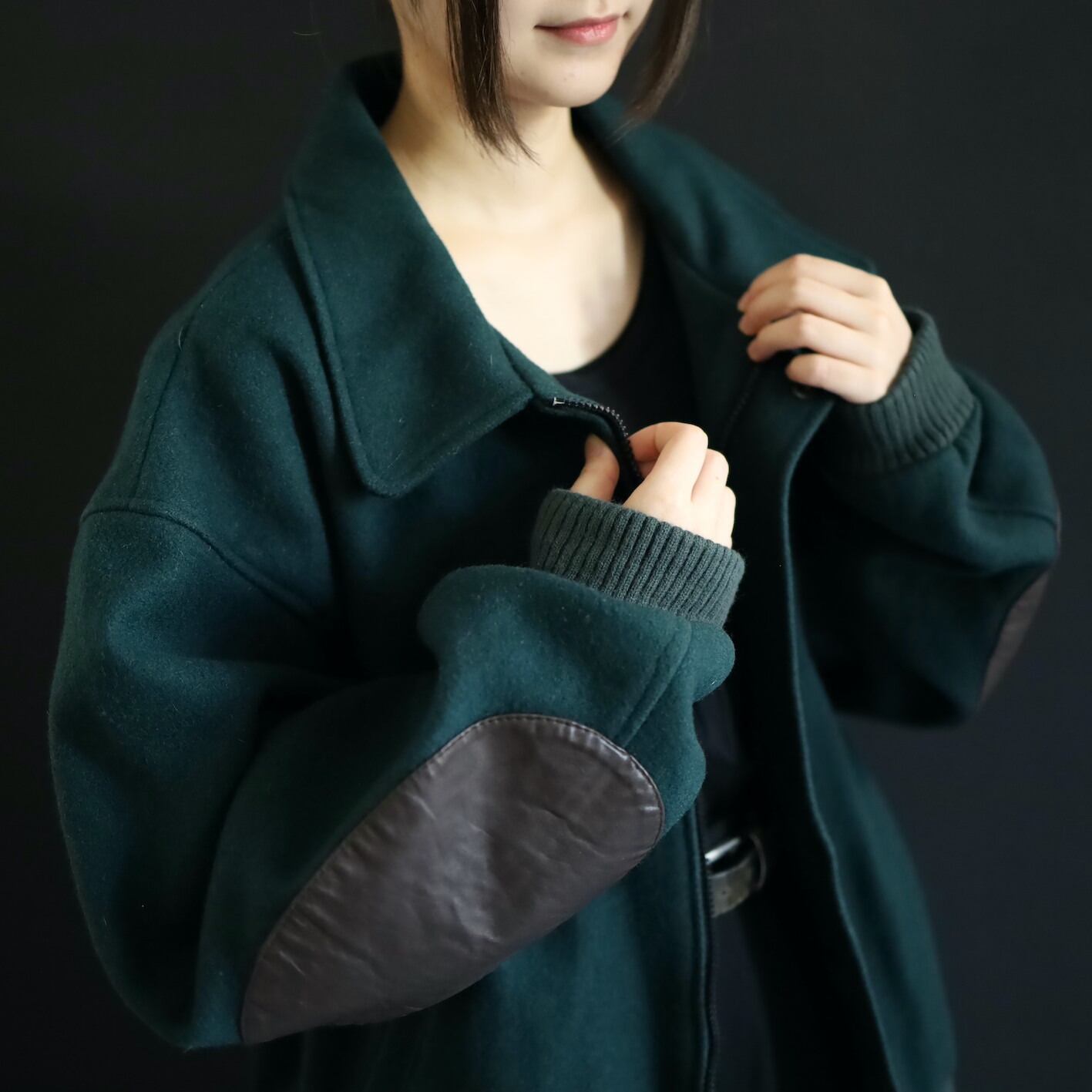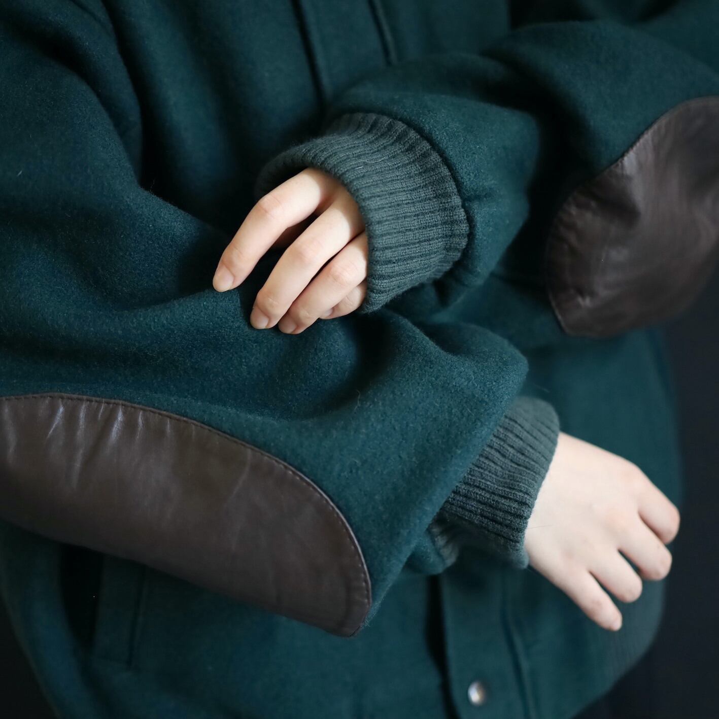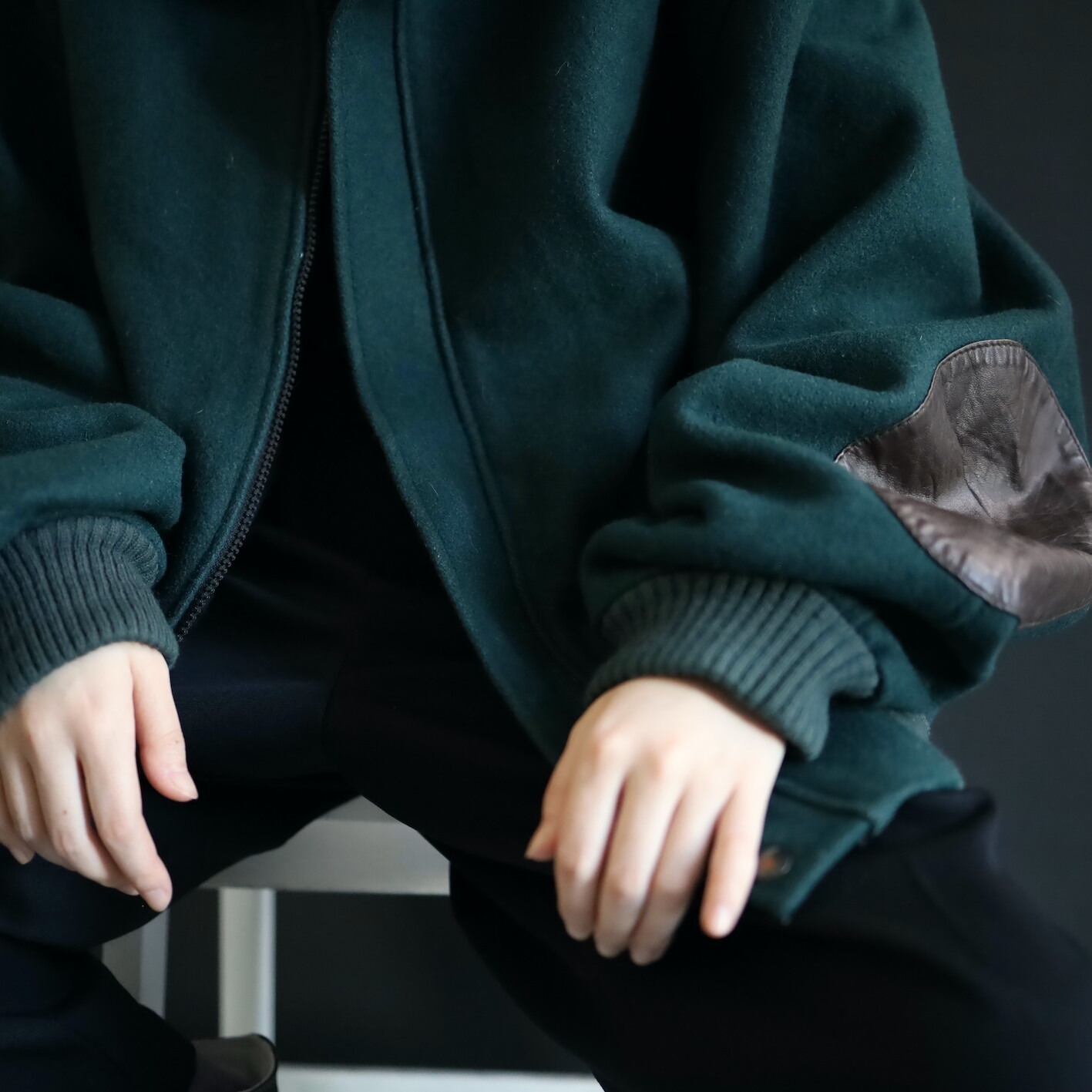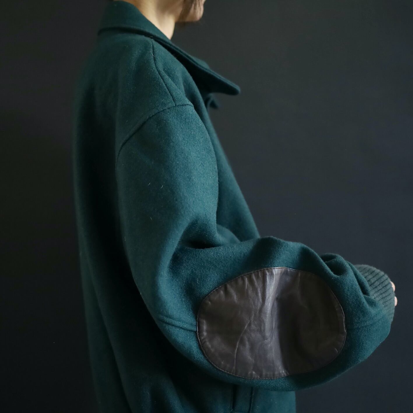 また,両袖にはブラウンレザーのエルボーパッチが施され,ウールとの色のコントラストも取られています.