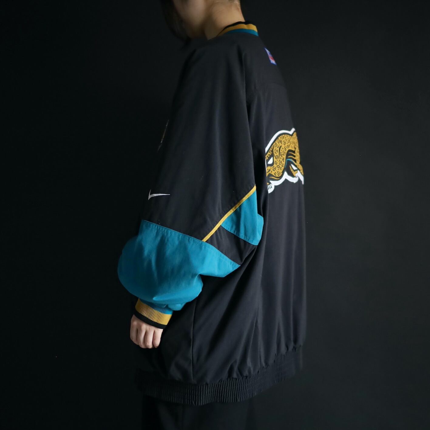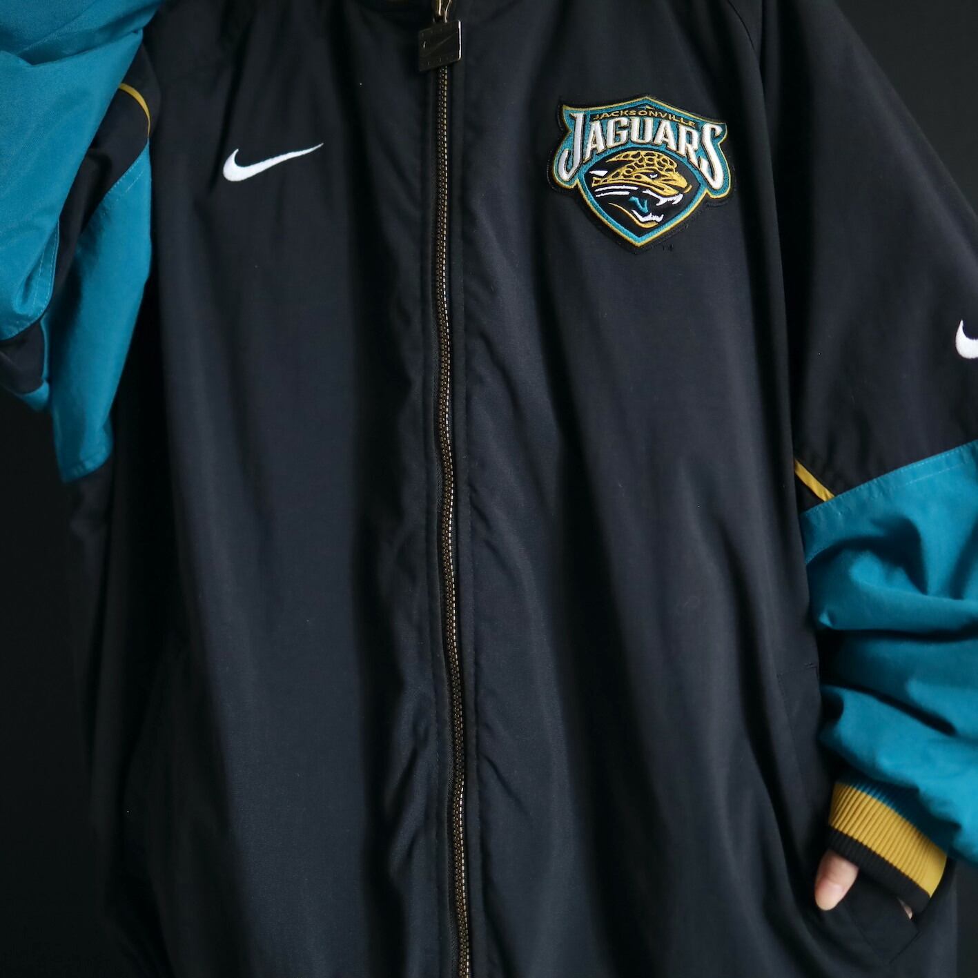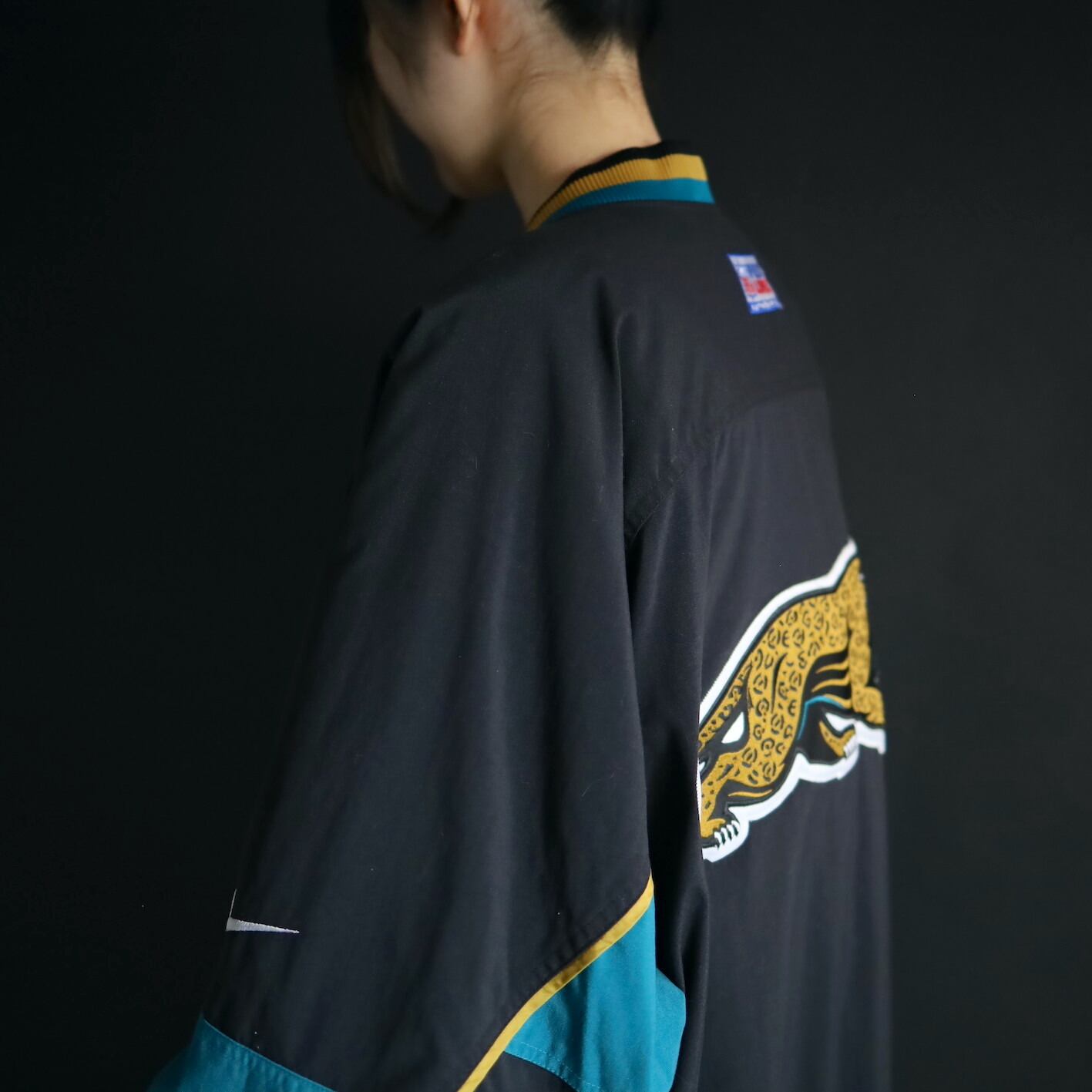 左胸にNIKEのスウッシュの,左胸とバックにNFLチーム,ジャガーズのロゴワッペン.