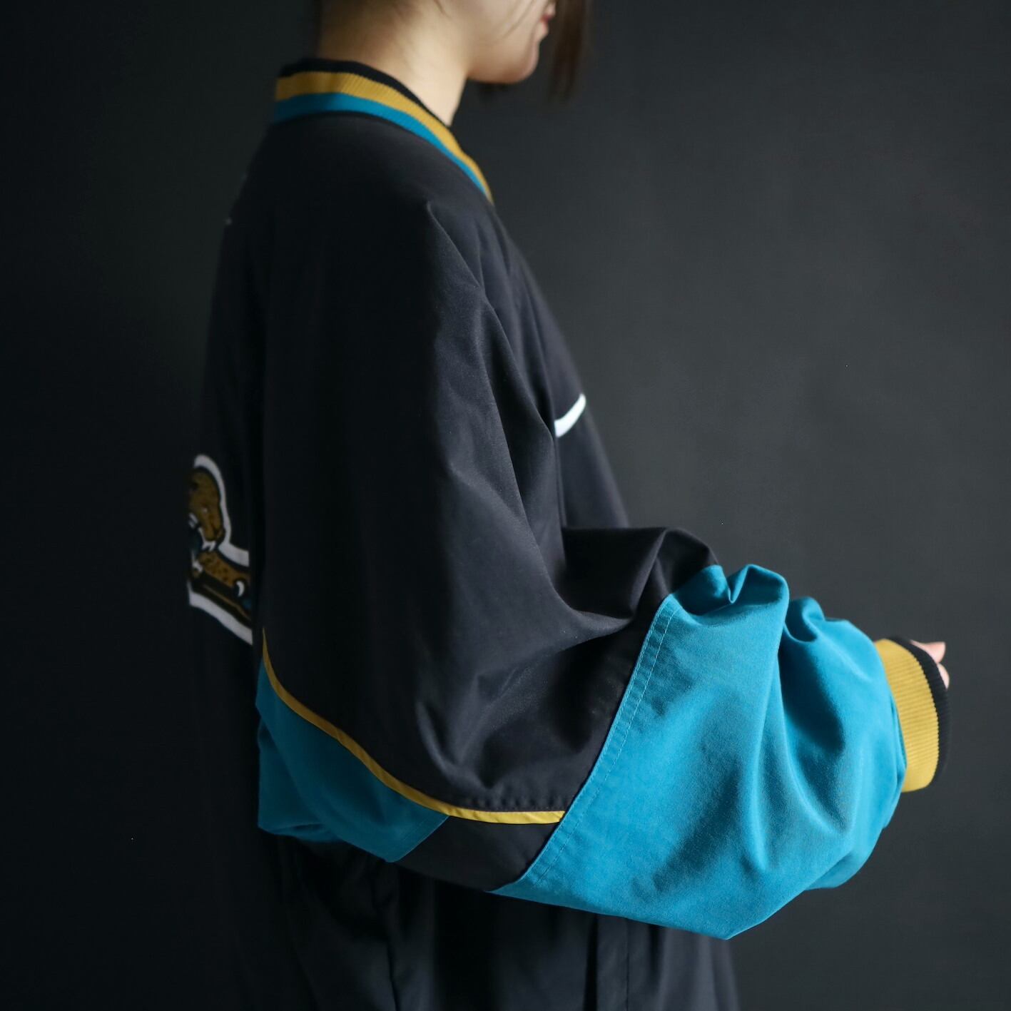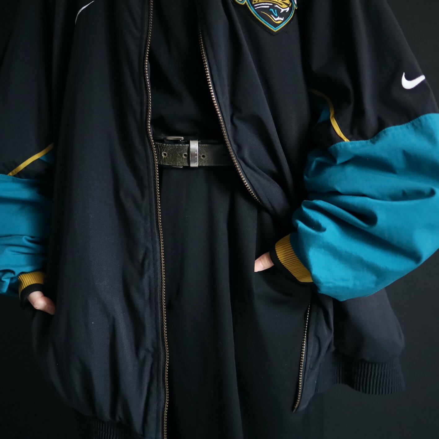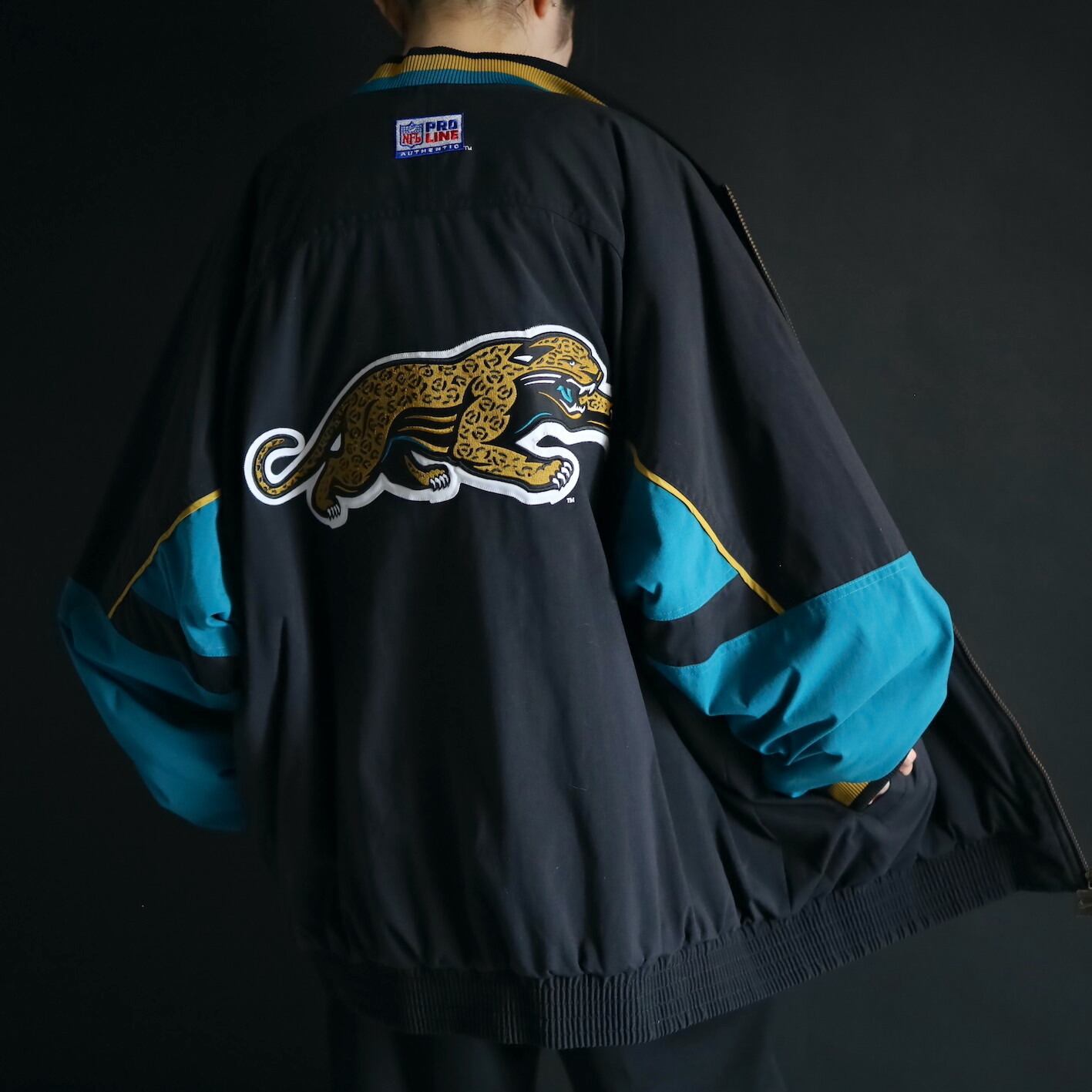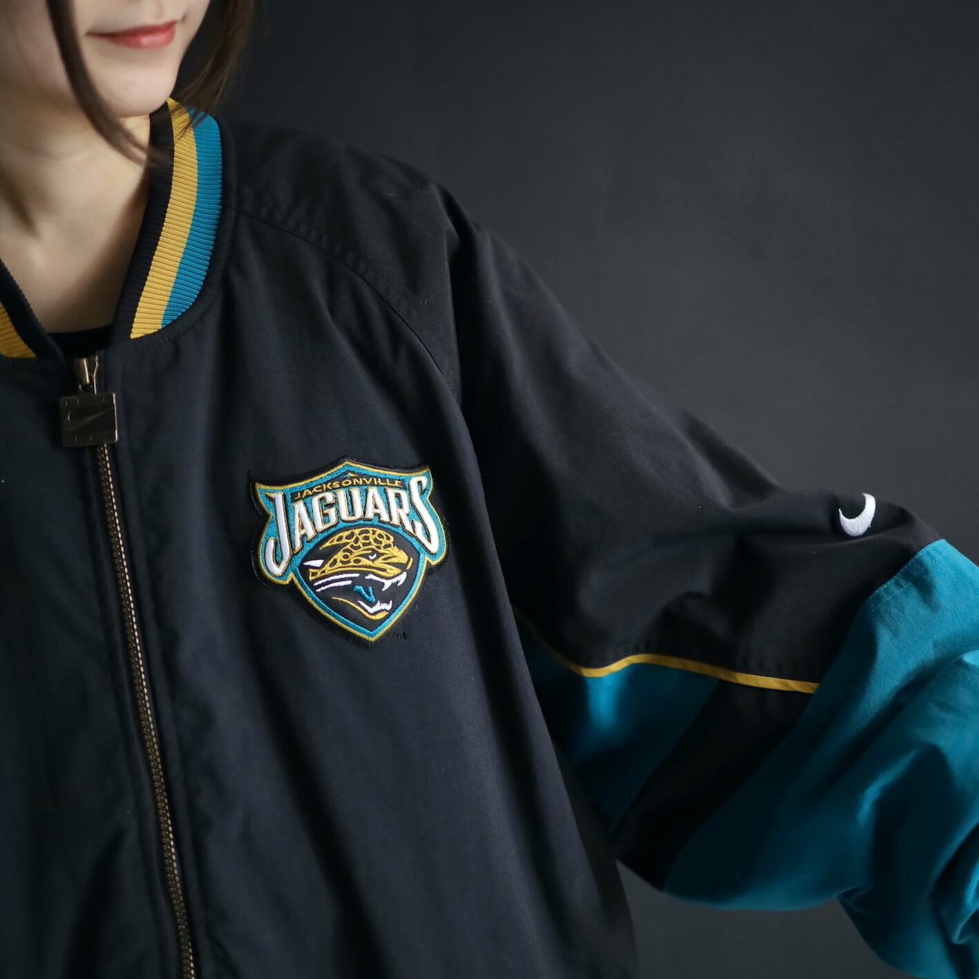 左胸にNIKEのスウッシュの,左胸とバックにNFLチーム,ジャガーズのロゴワッペン.