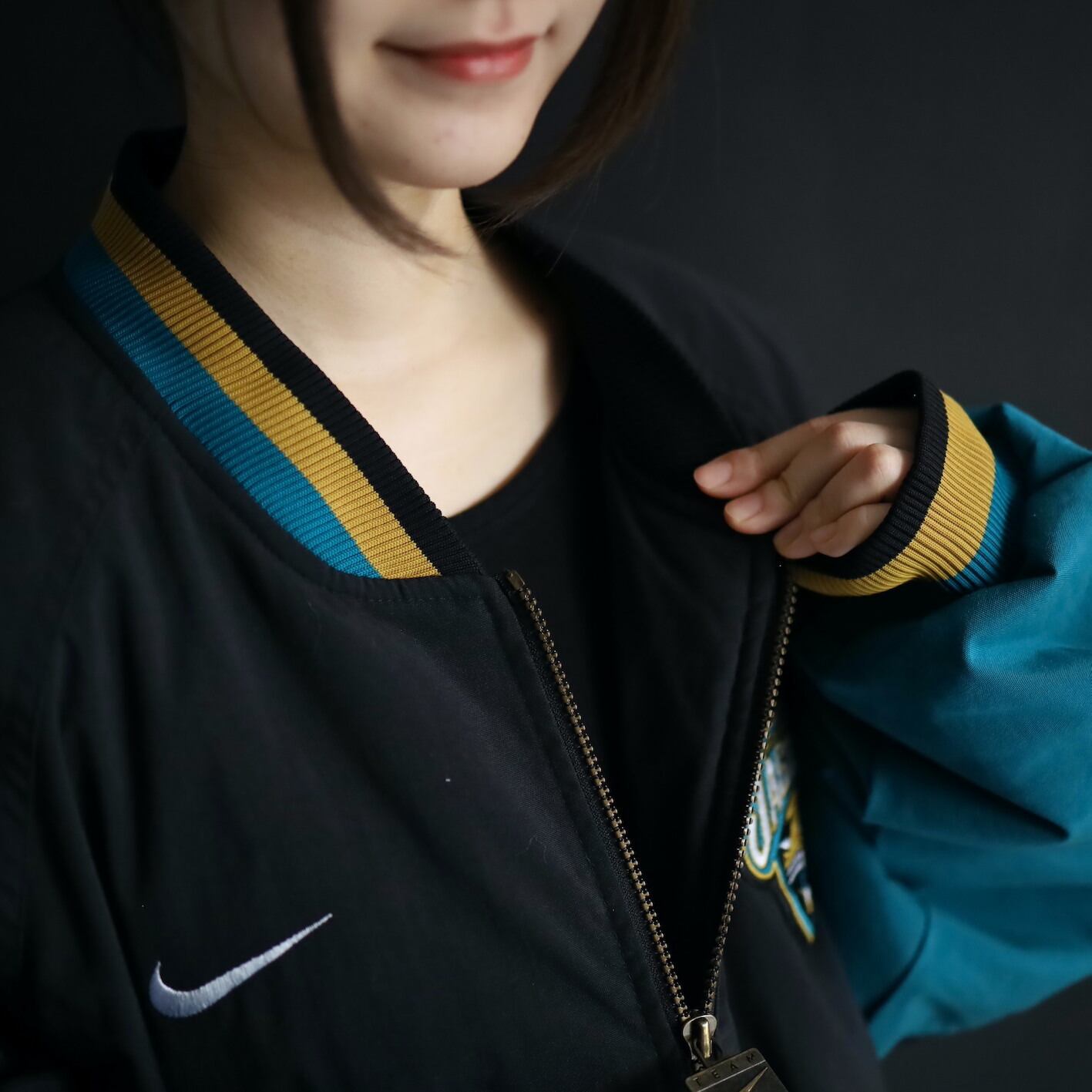 真鍮のジップの引き手のNIKEの刻印もいいです〜.