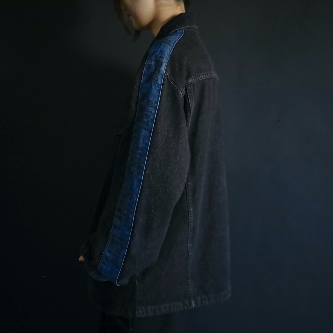 襟から肩を通って袖先まで走ったブルーのライン切替が非常に珍しいデザインかと思います.