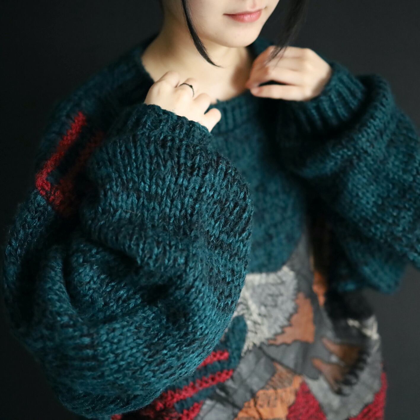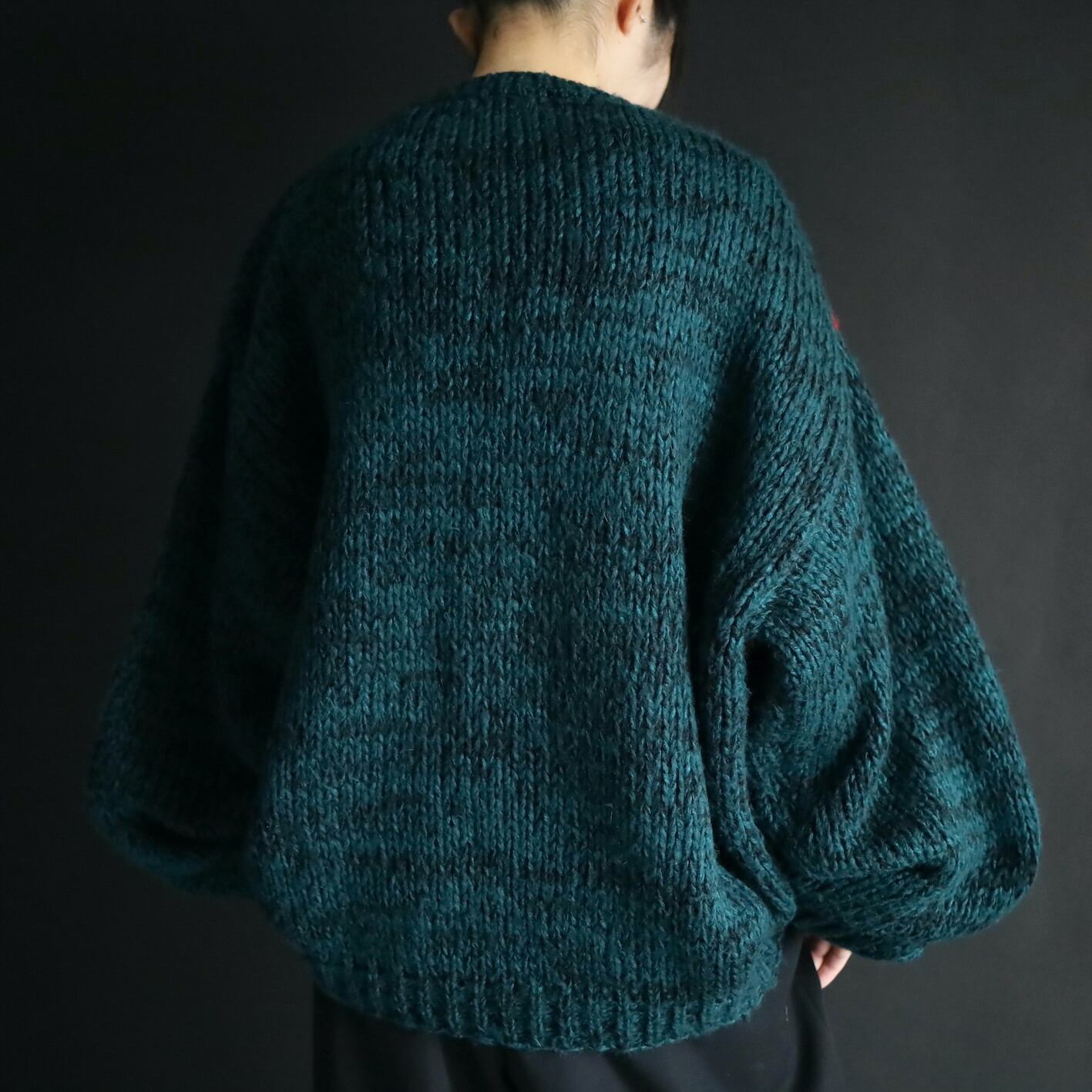 ざっくりと編み込まれたローゲージニットで,柔らかいふんわりボリューミーな一枚です.