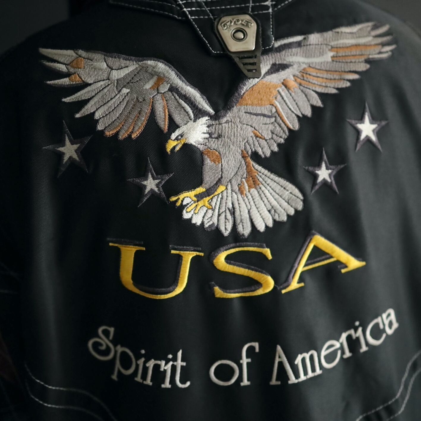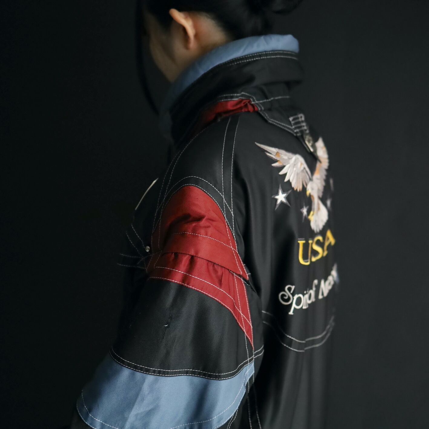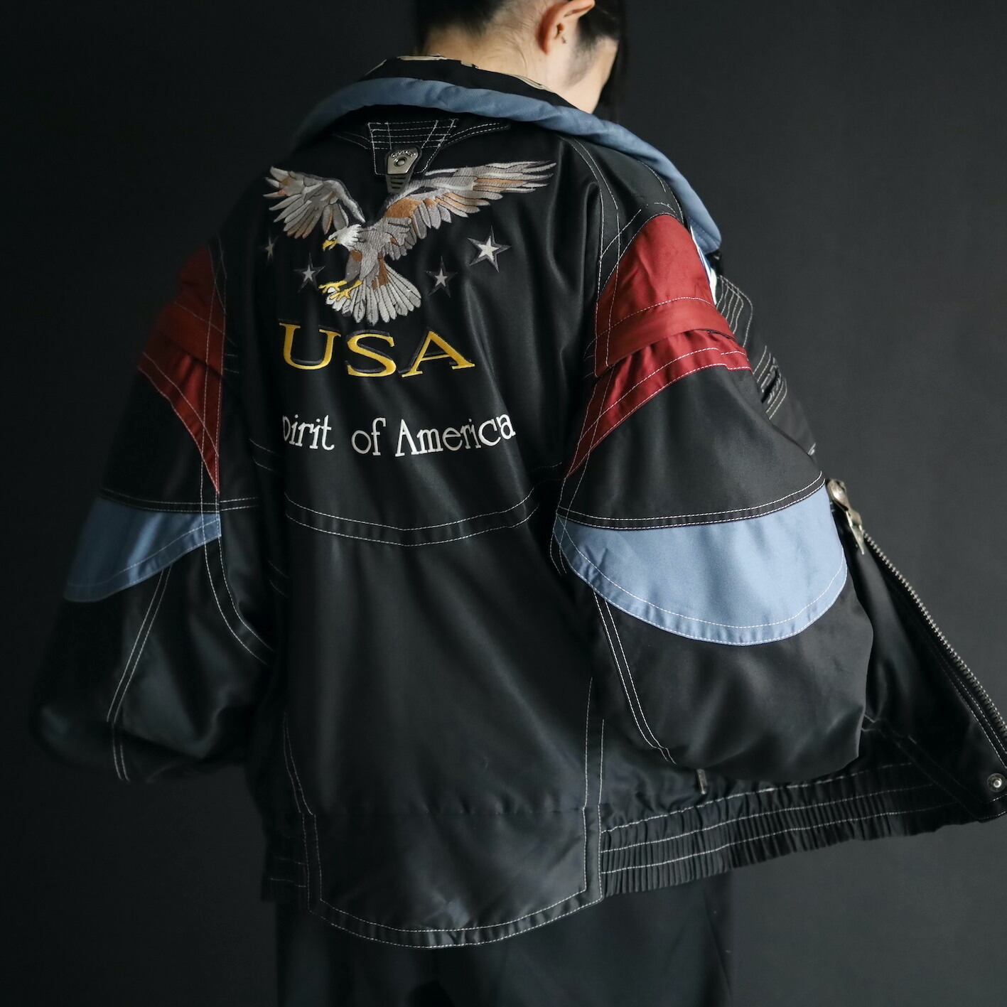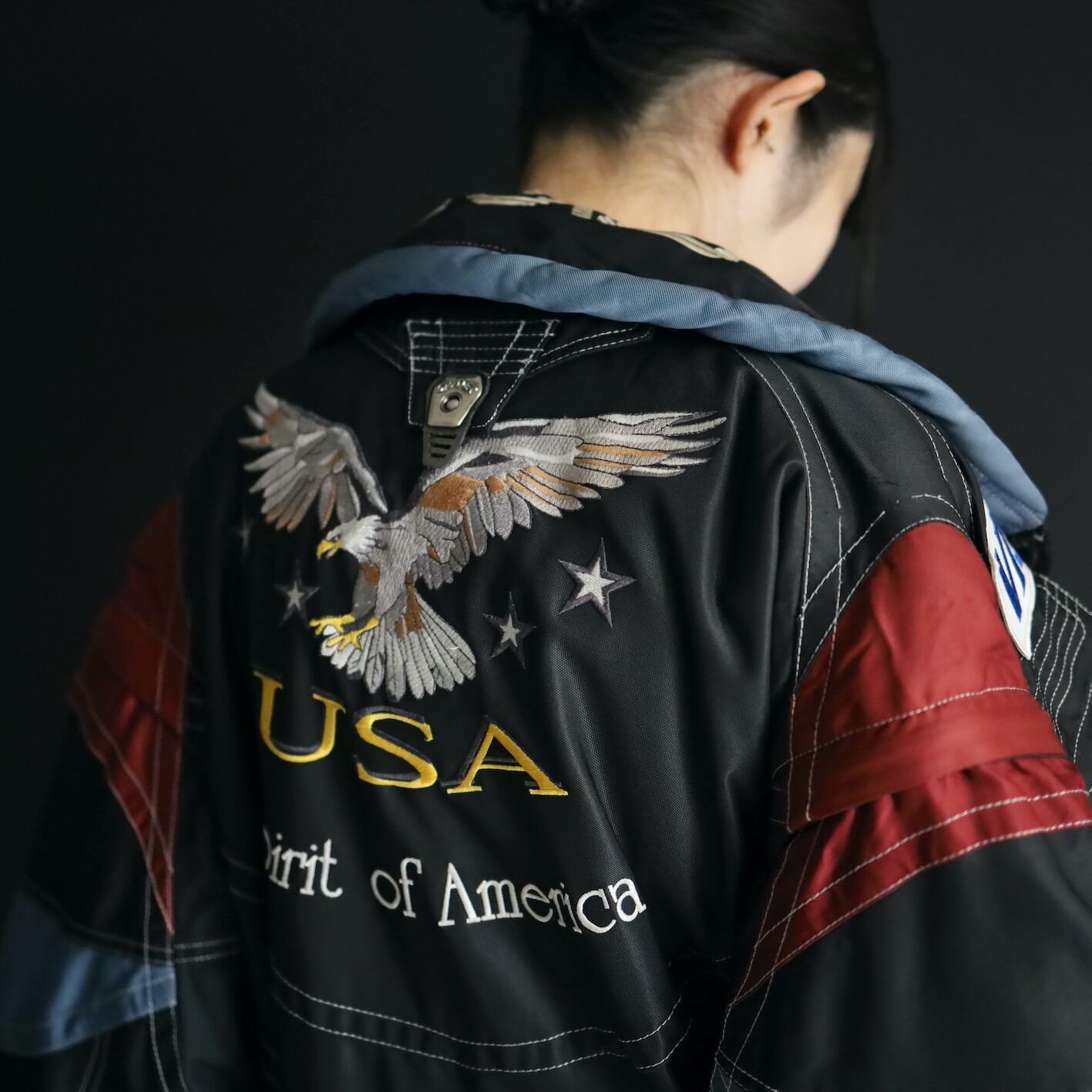 バックの大きな刺繍もいいアクセント.