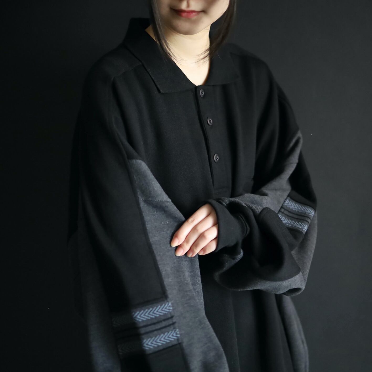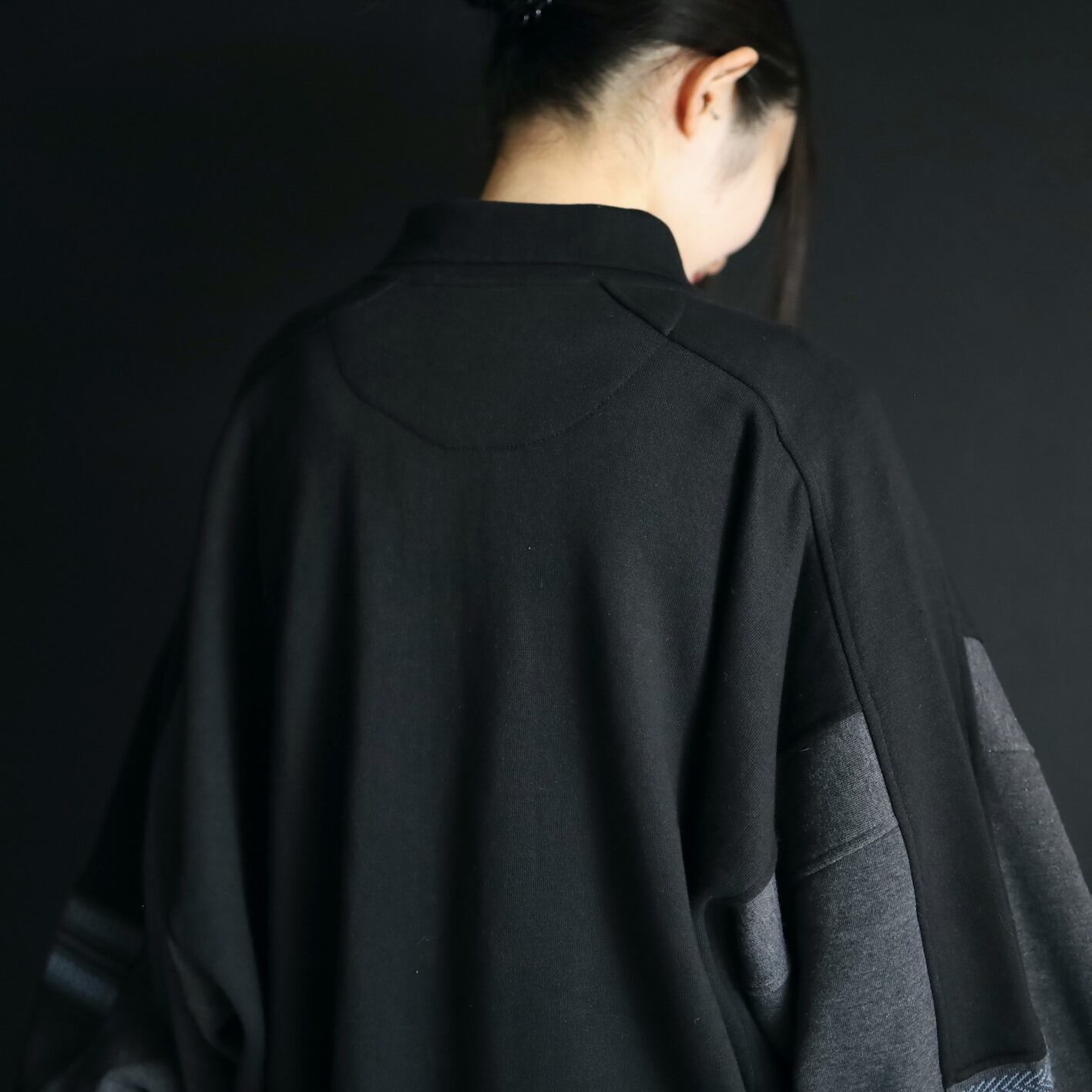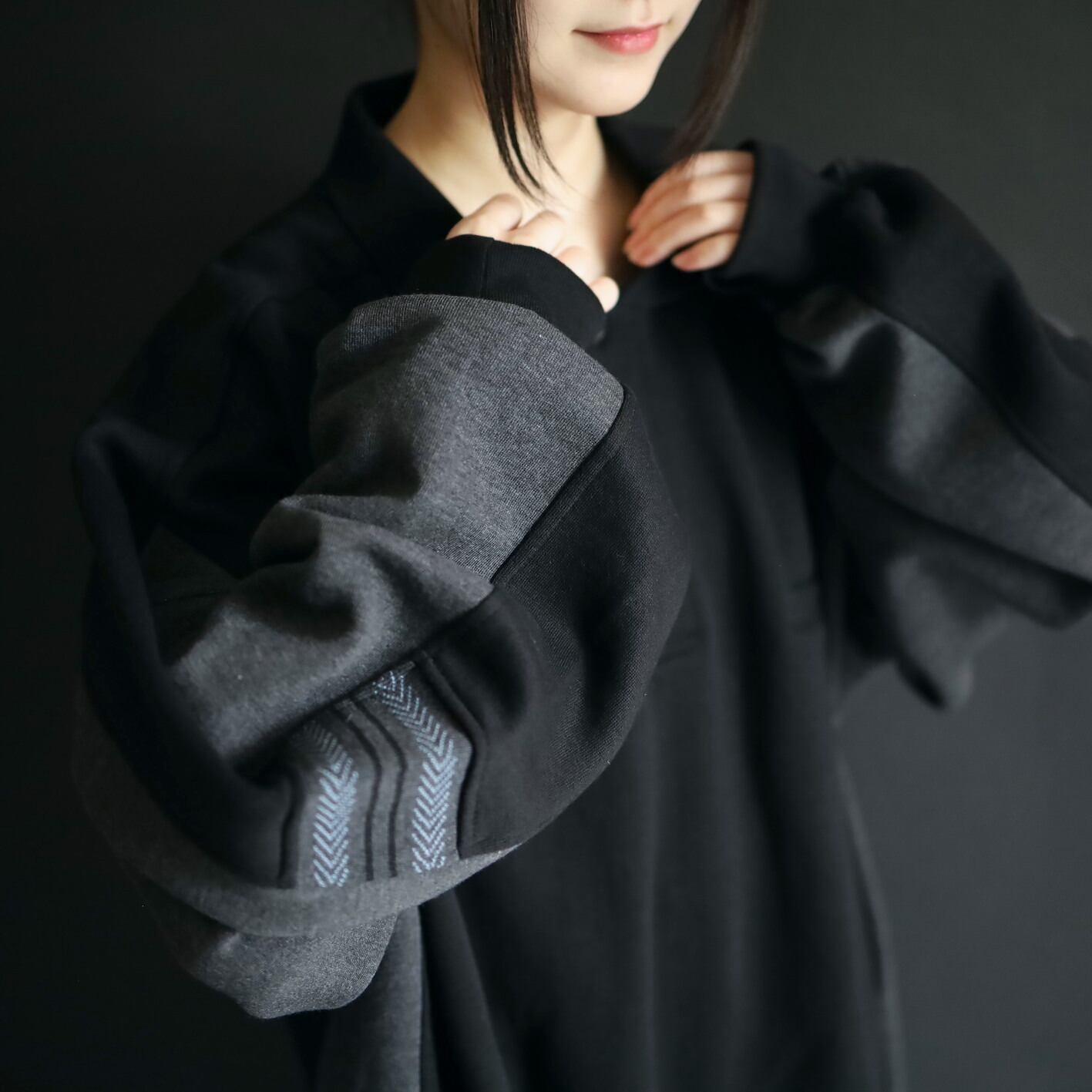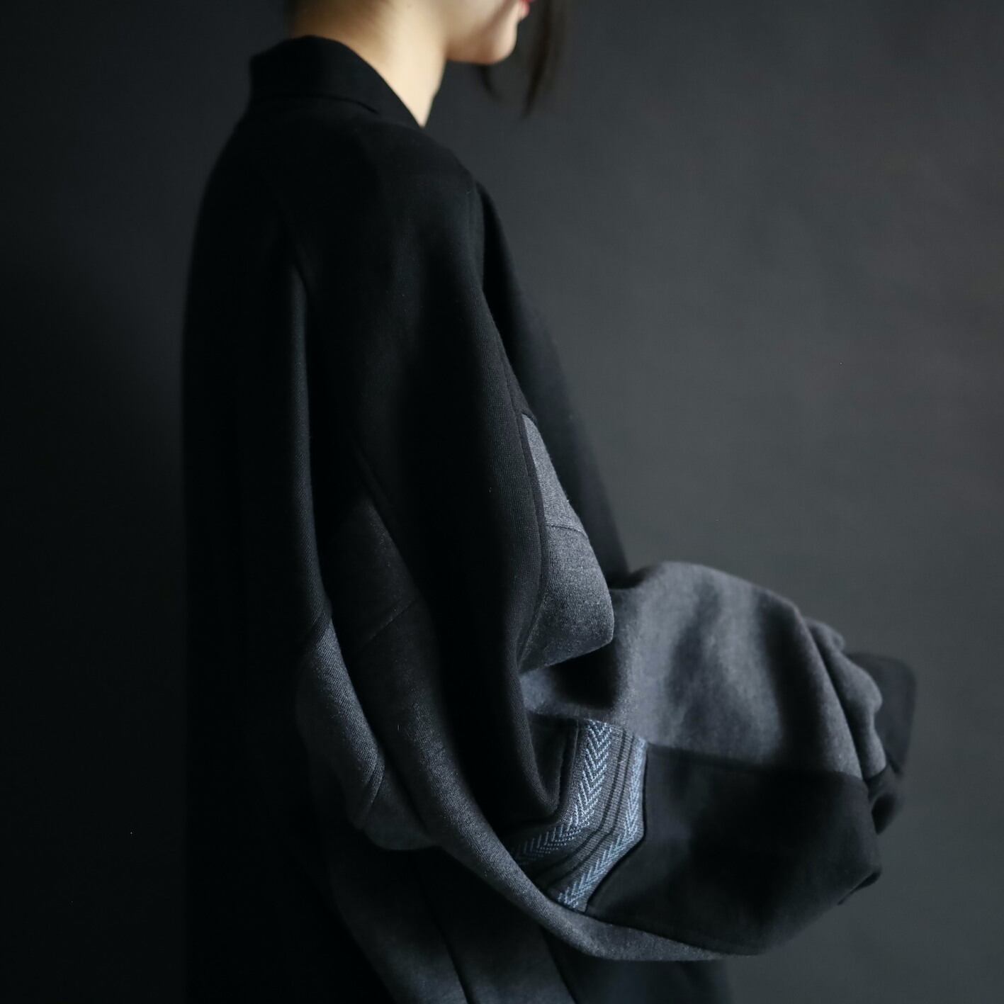 袖,脇下にかけてグレーの切替と,袖にはブルー系の刺繍切替も入ってます〜.