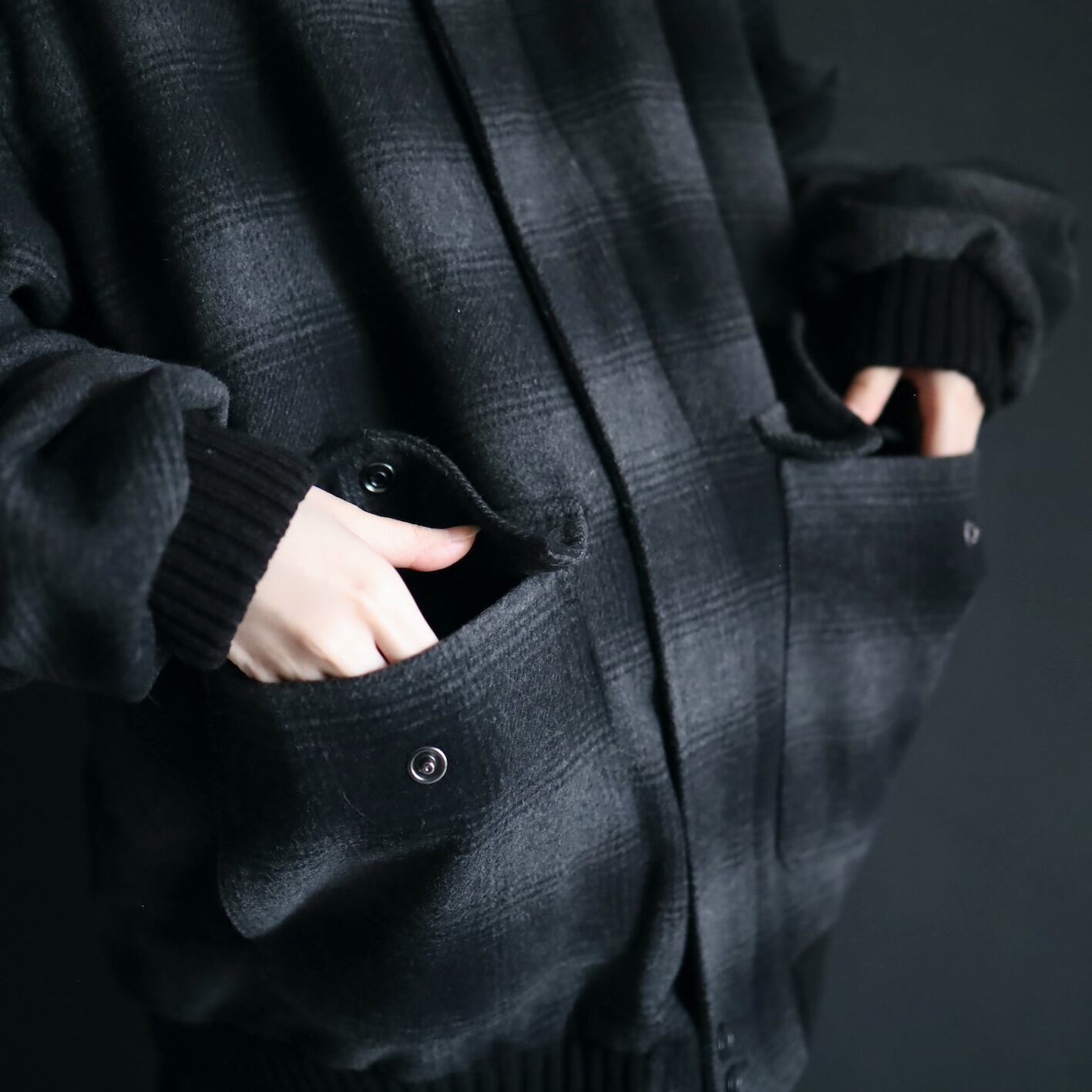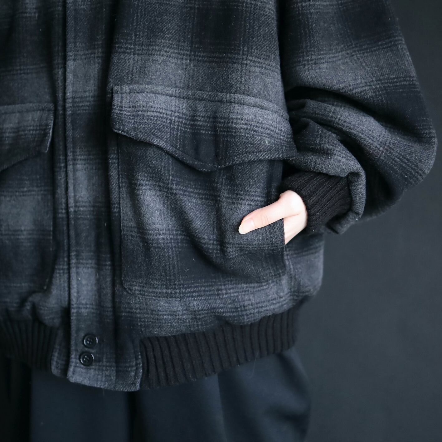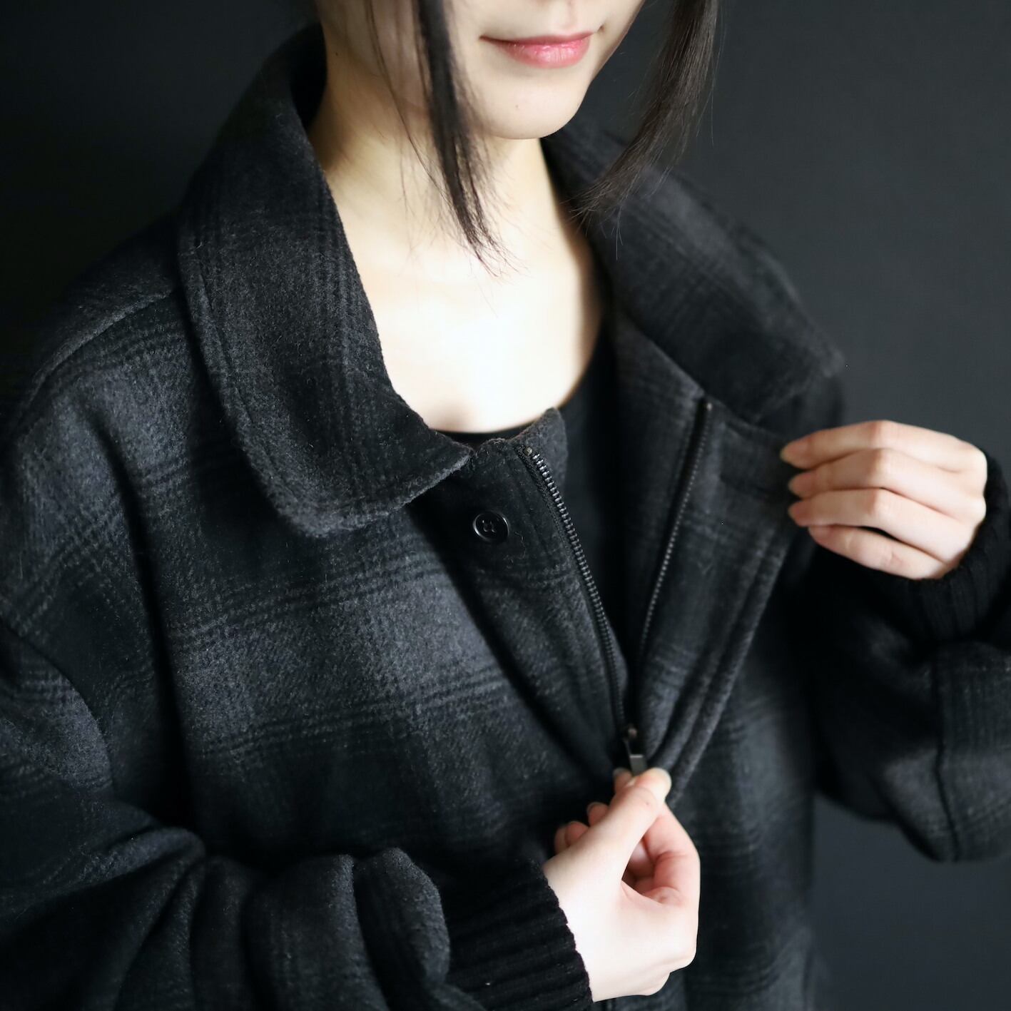 チェックタイプのウールブルゾン.