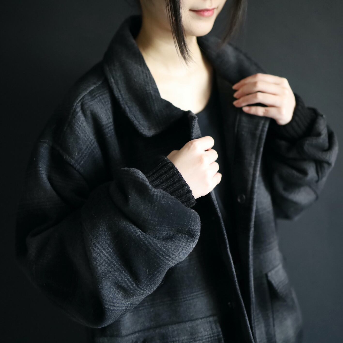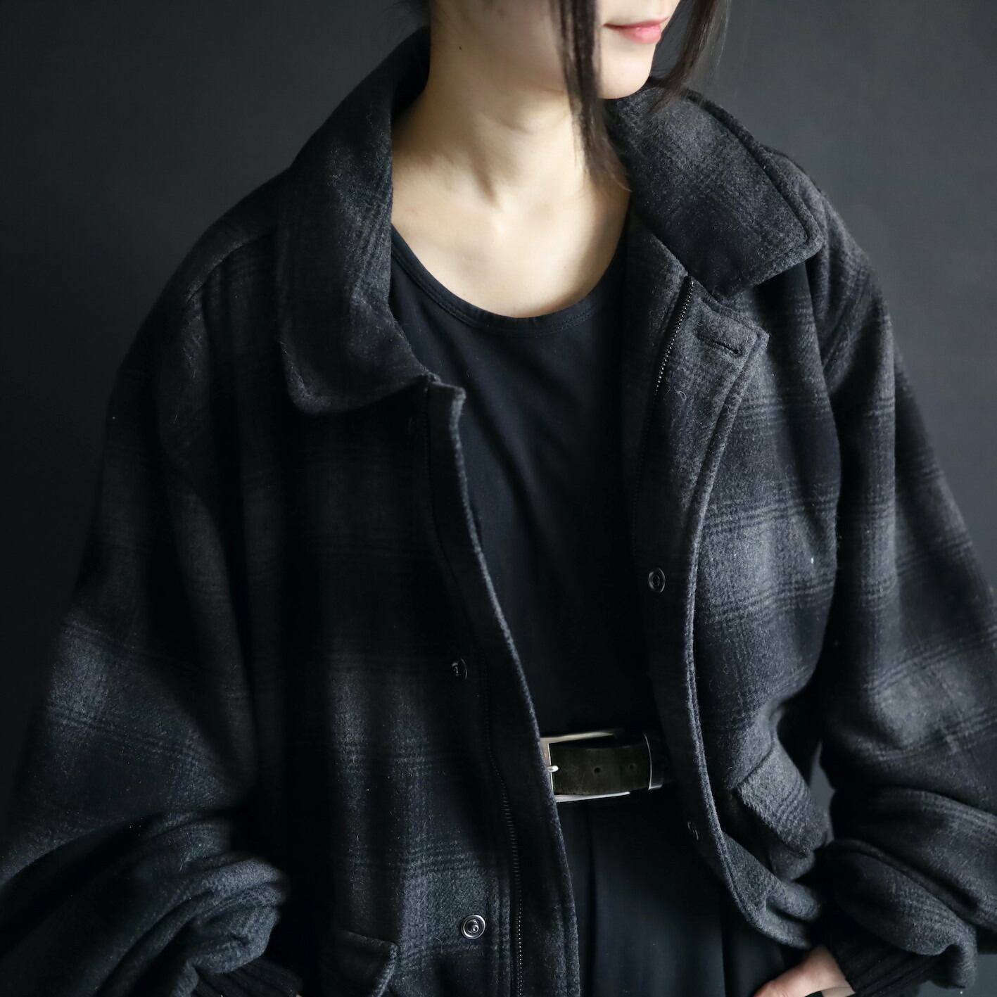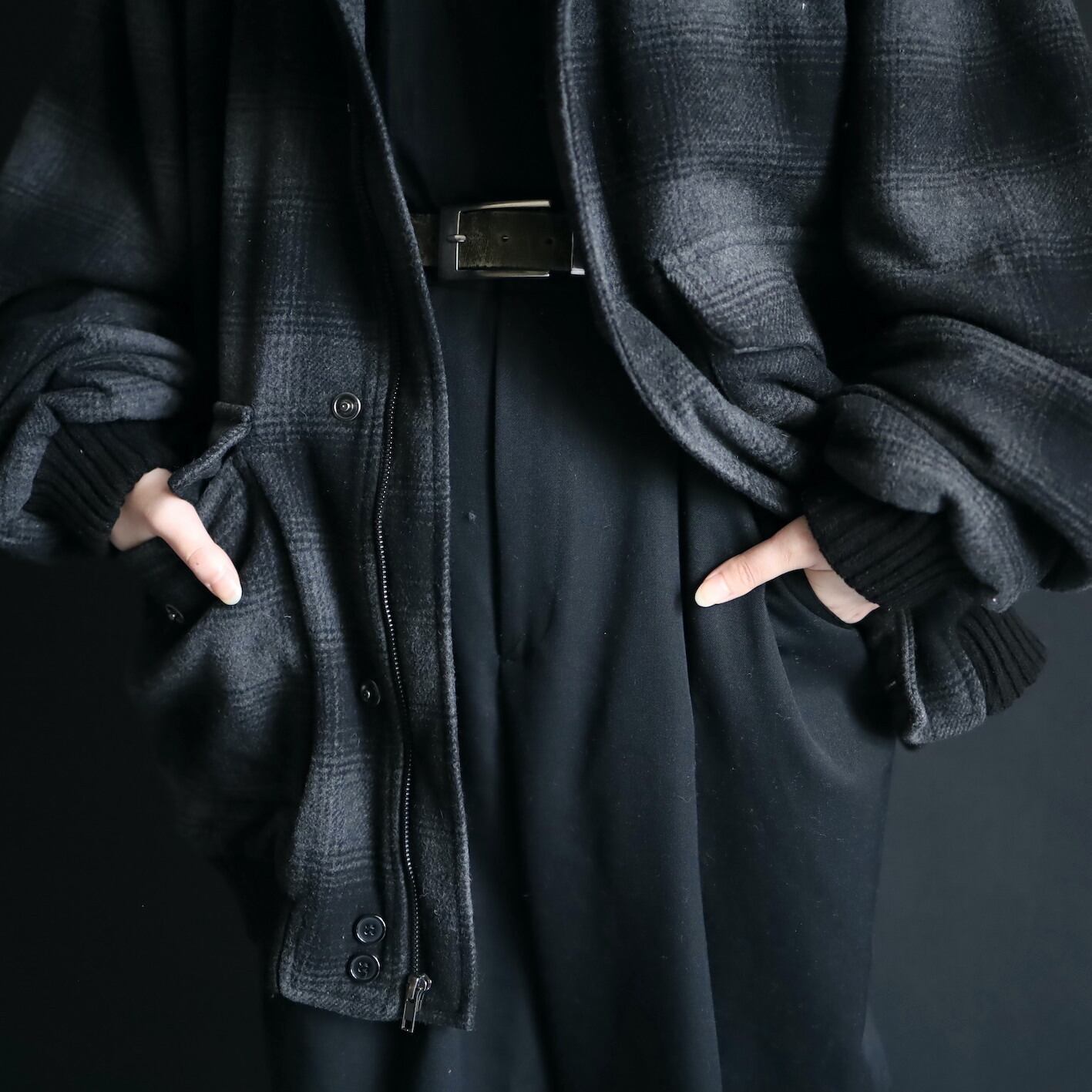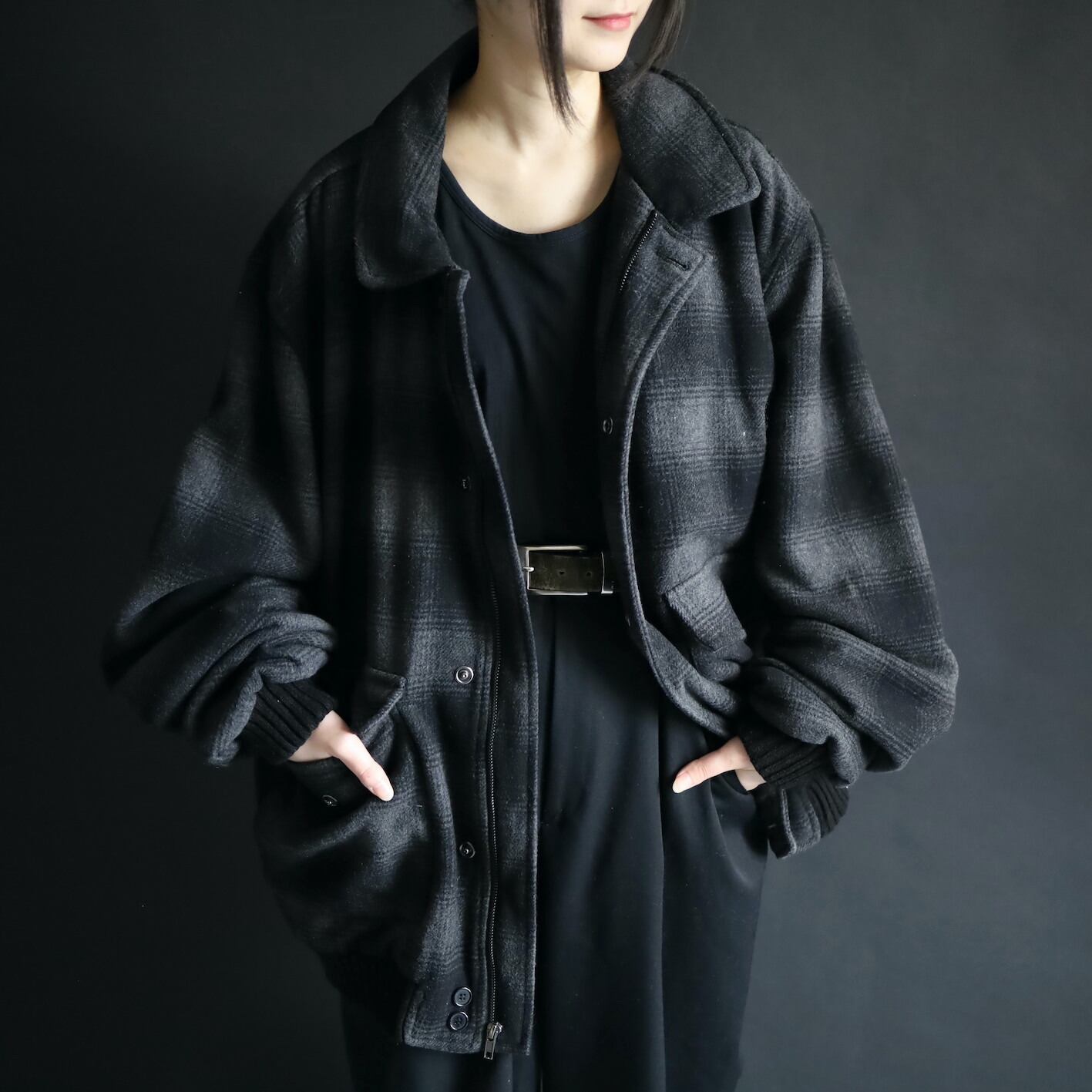 チェックタイプのウールブルゾン.