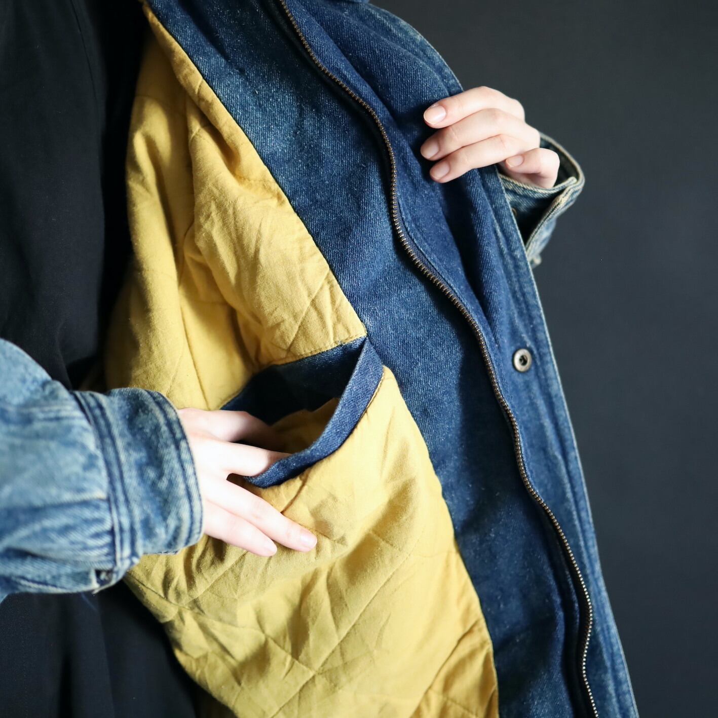 内部キルティング仕様で暖かいのはもちろん,裏地もイエローで可愛いのがポイント.
