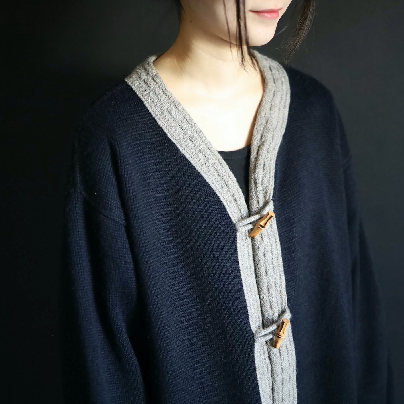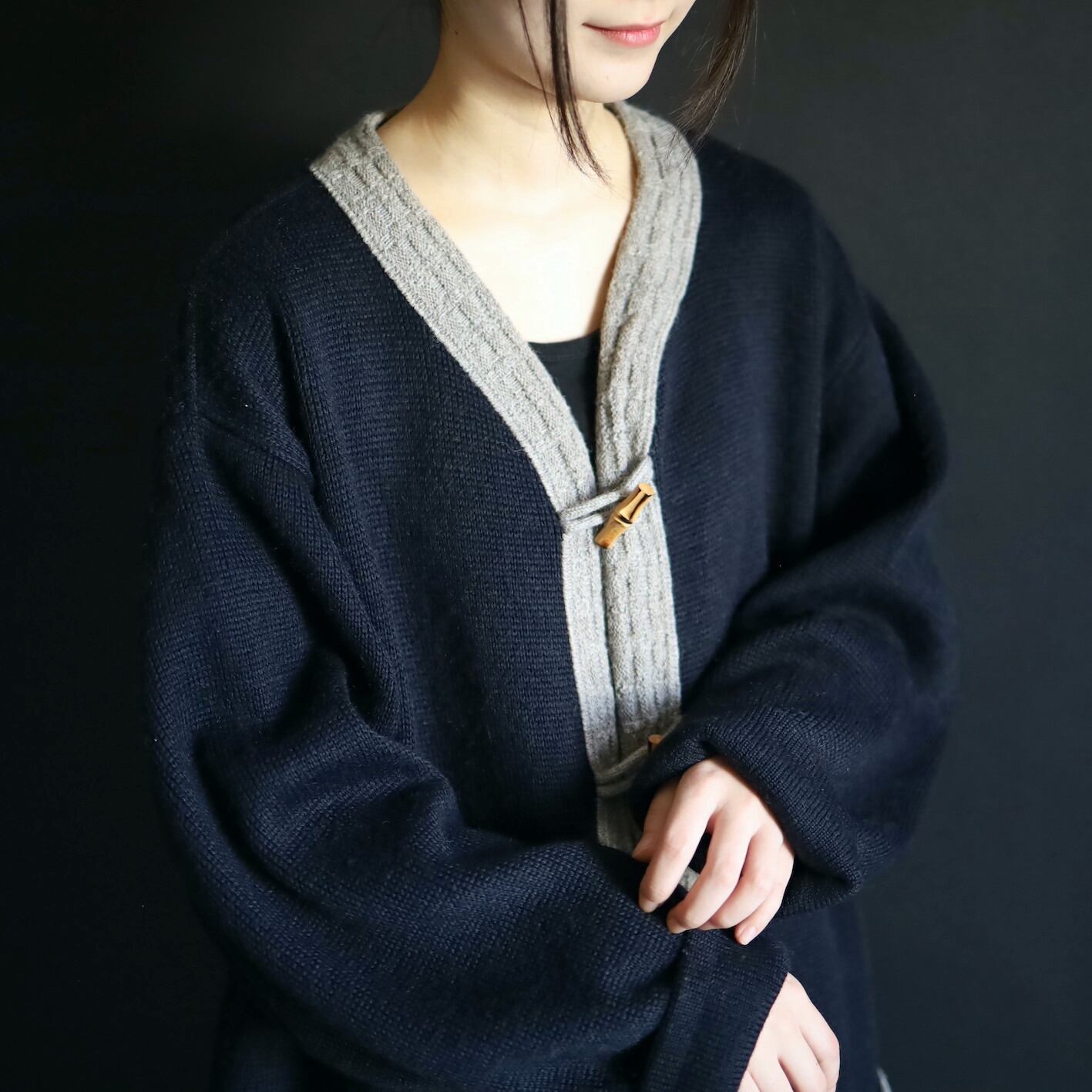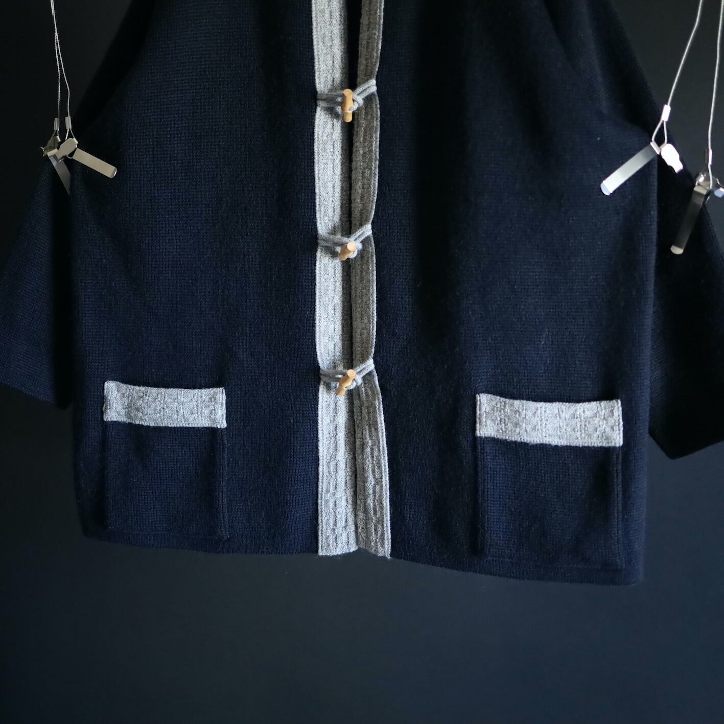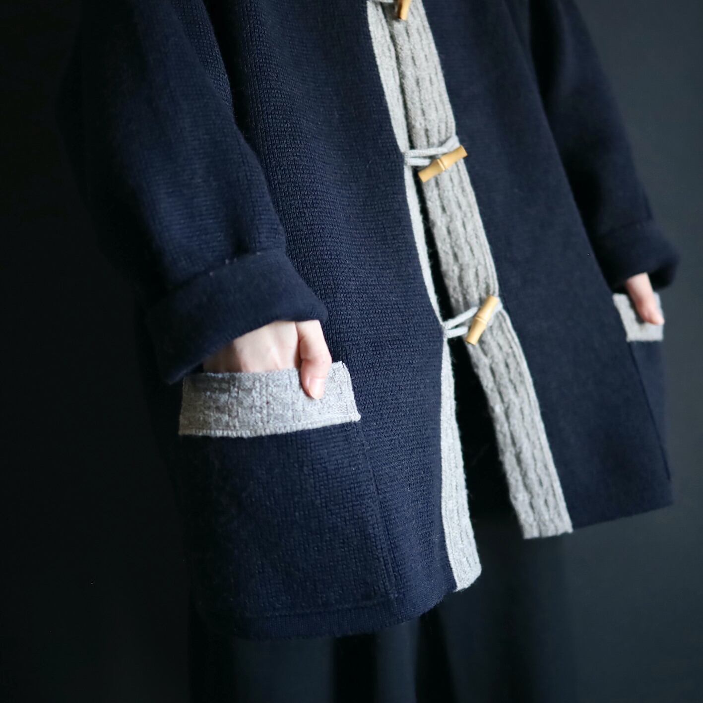 ダッフルコートに多く見られるボタンですが,ニットに付けるのも雰囲気増していいですね〜.