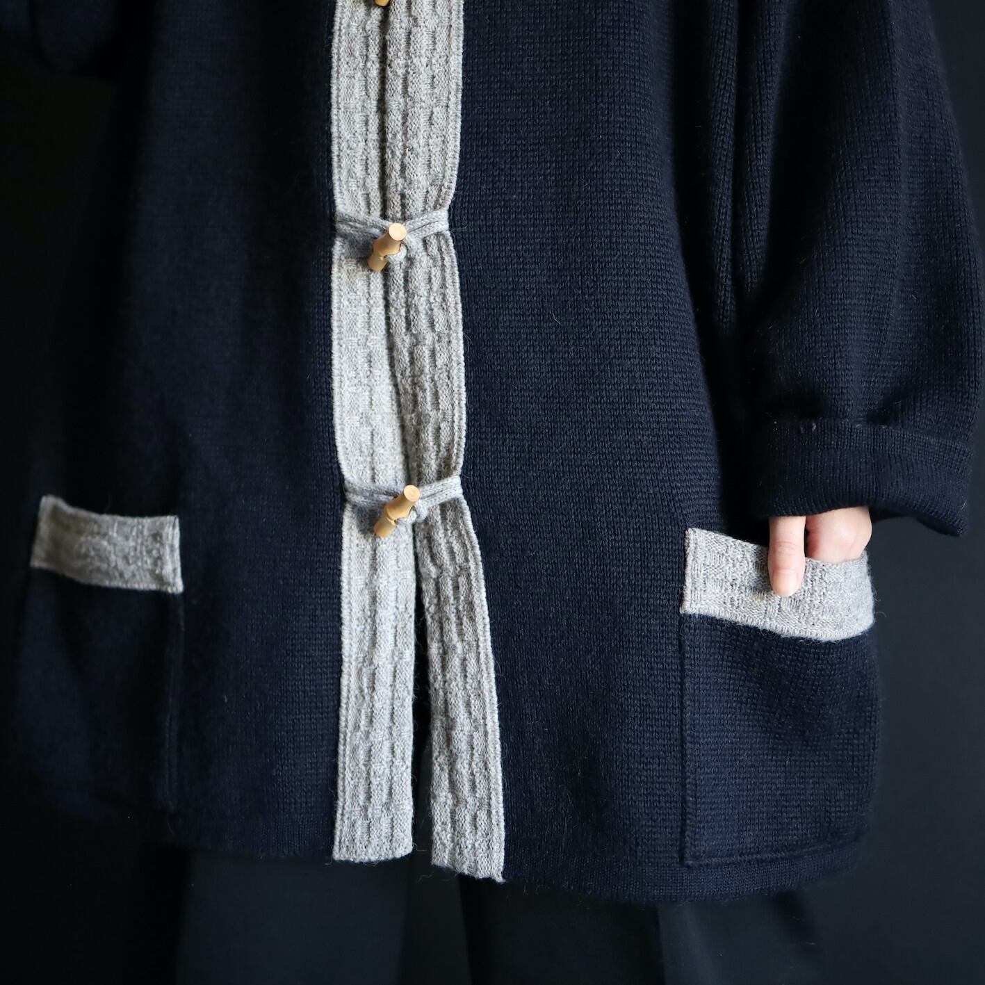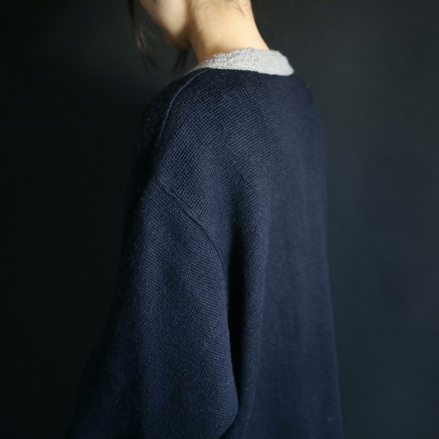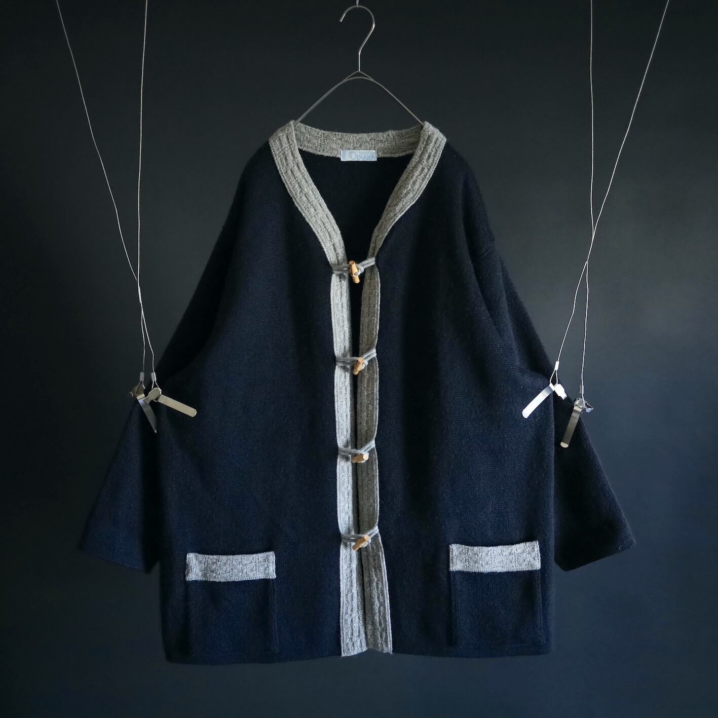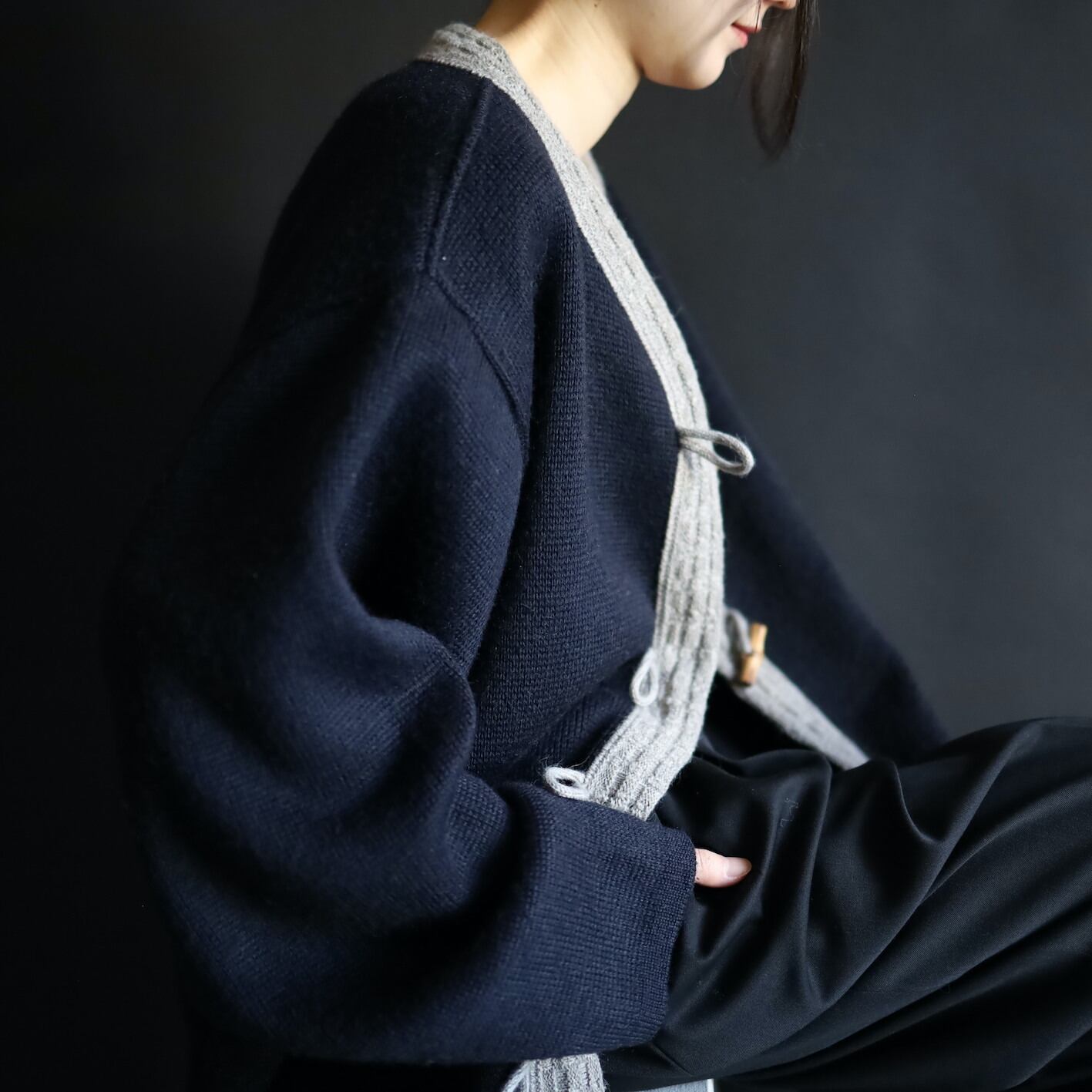 ダッフルコートに多く見られるボタンですが,ニットに付けるのも雰囲気増していいですね〜.