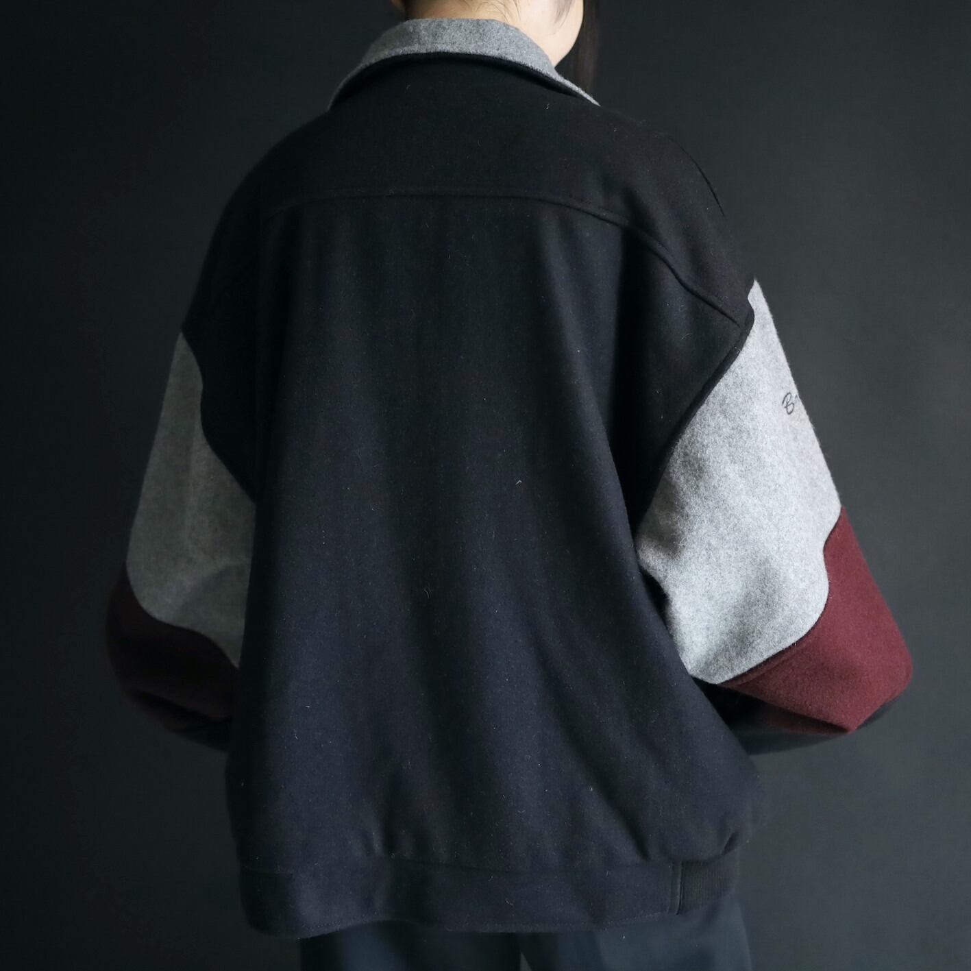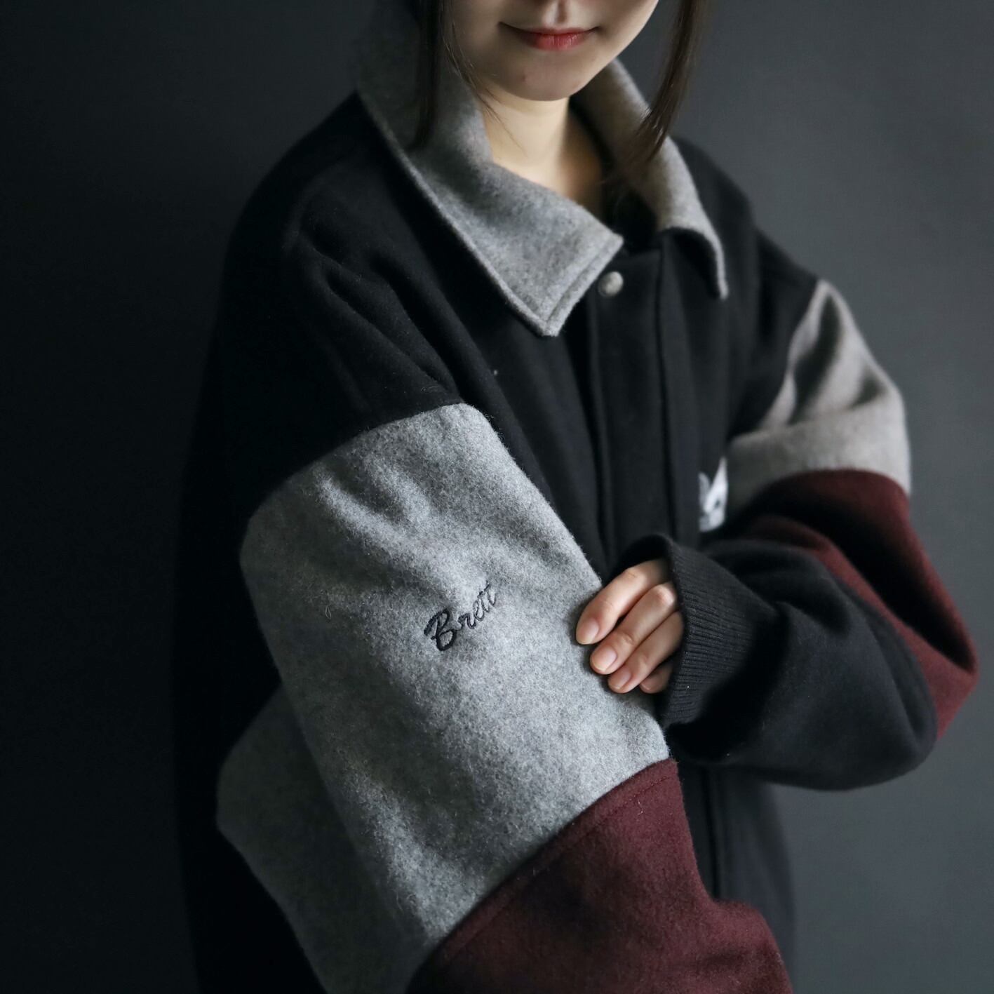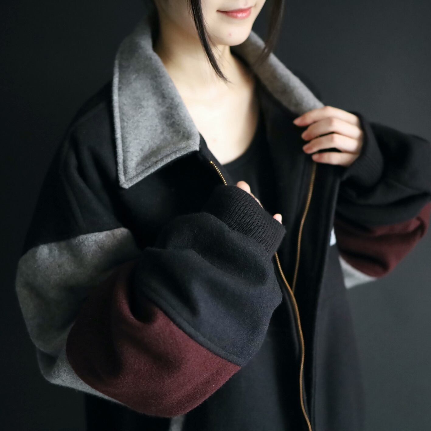 ブラックをベースに,グレー,ボルドー切替のトライカラー.