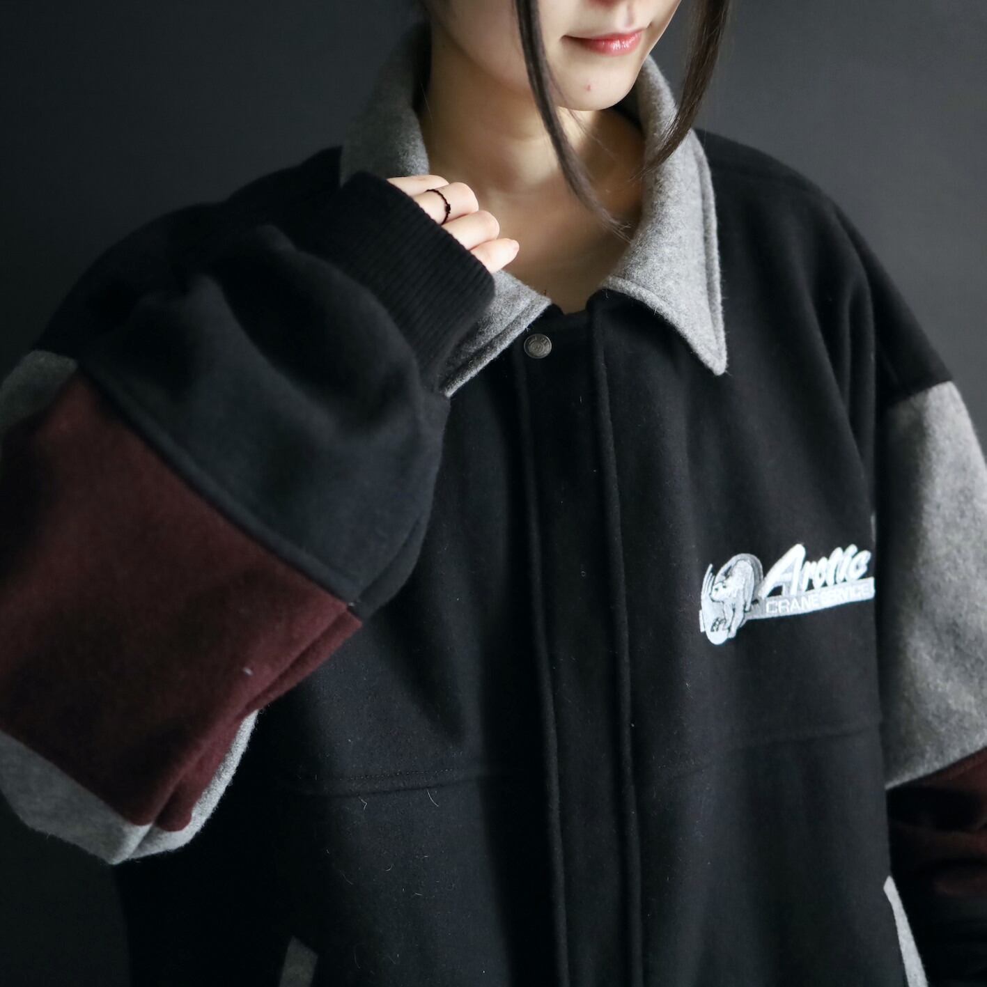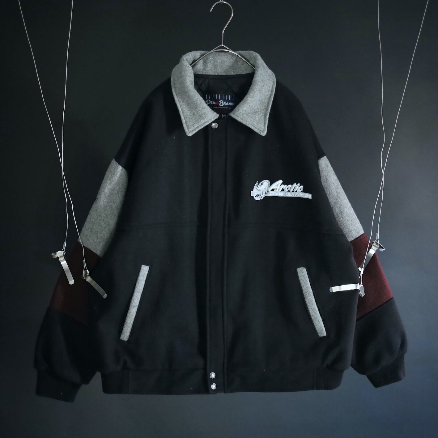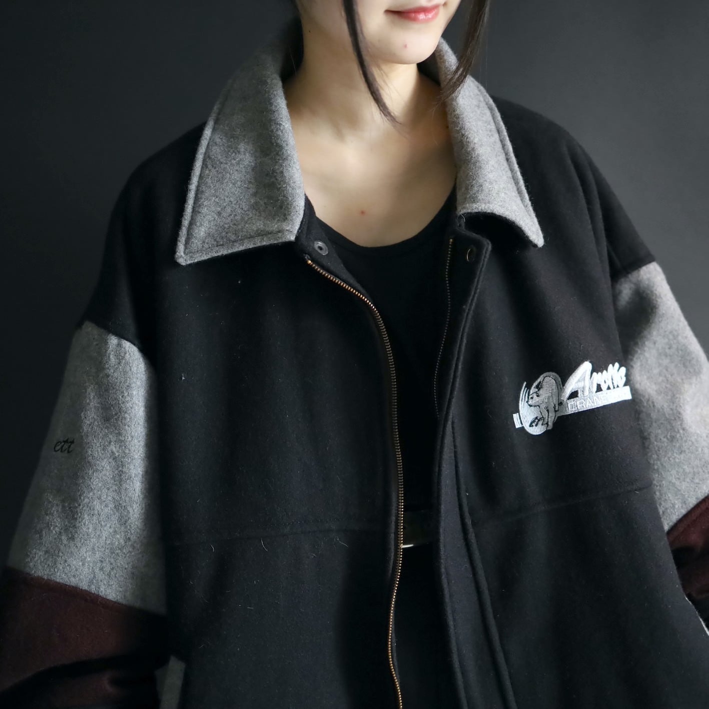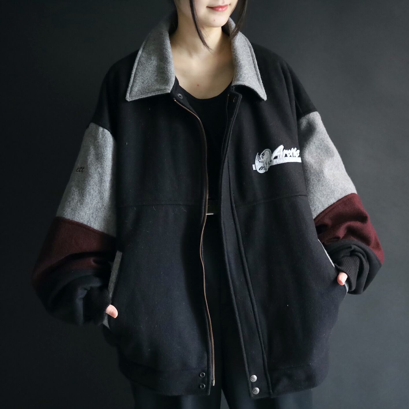 ブラックをベースに,グレー,ボルドー切替のトライカラー.