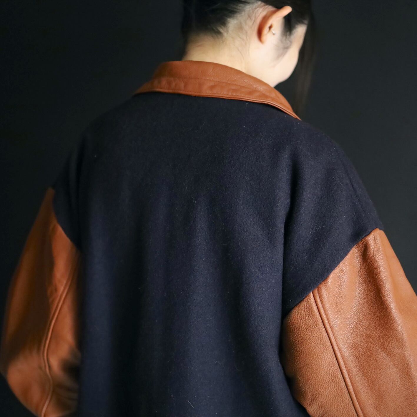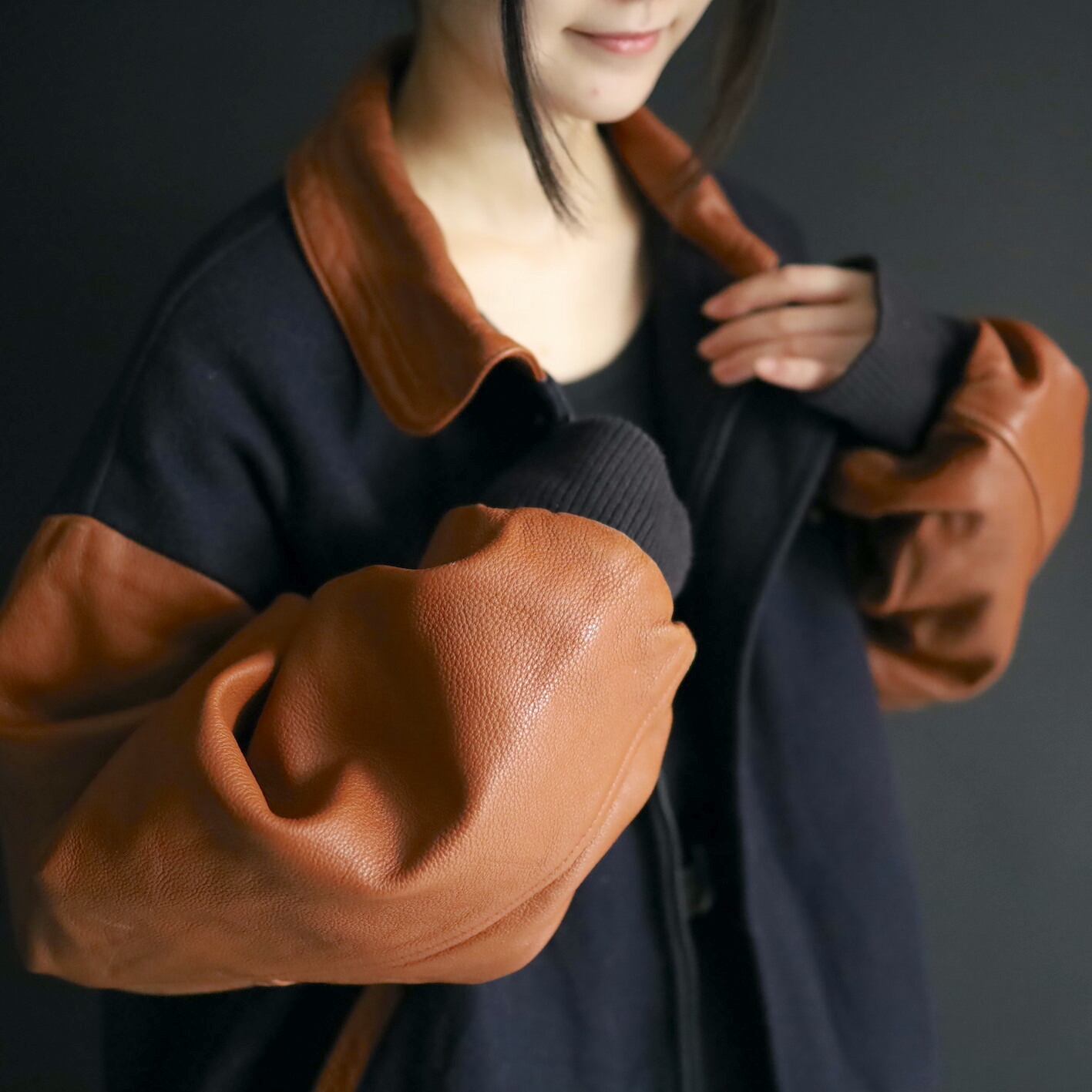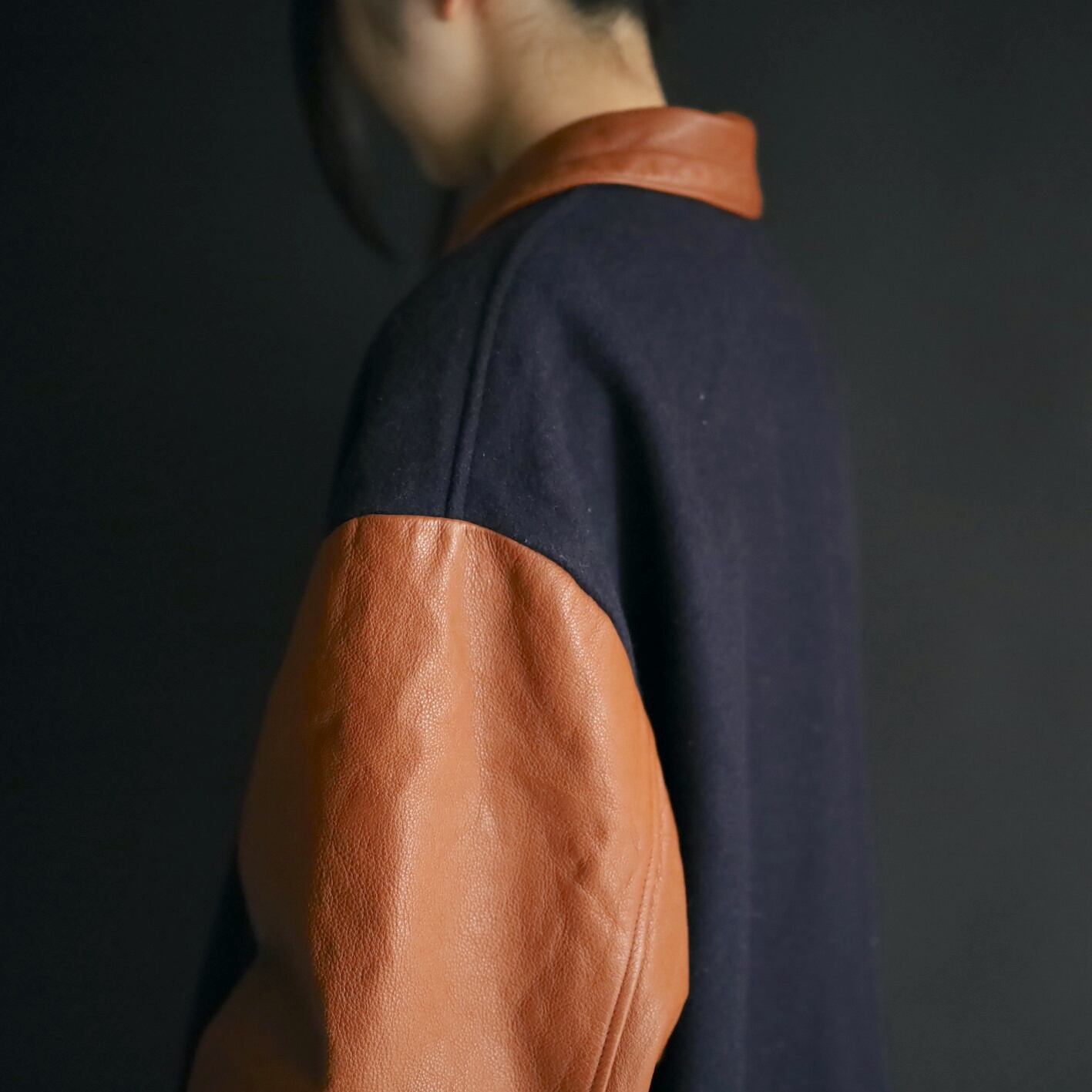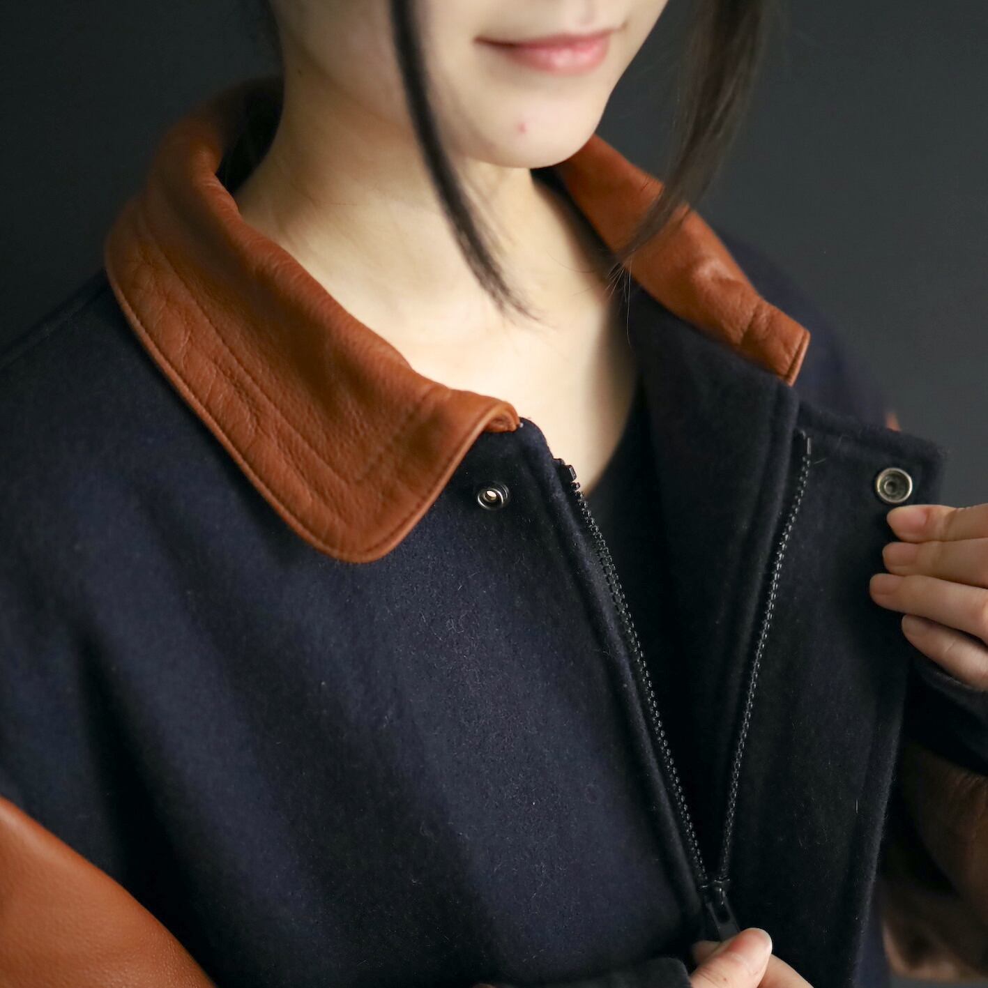 上品ななツヤのあるレザーとマットなウールのボディのコントラストがとても綺麗な一枚.