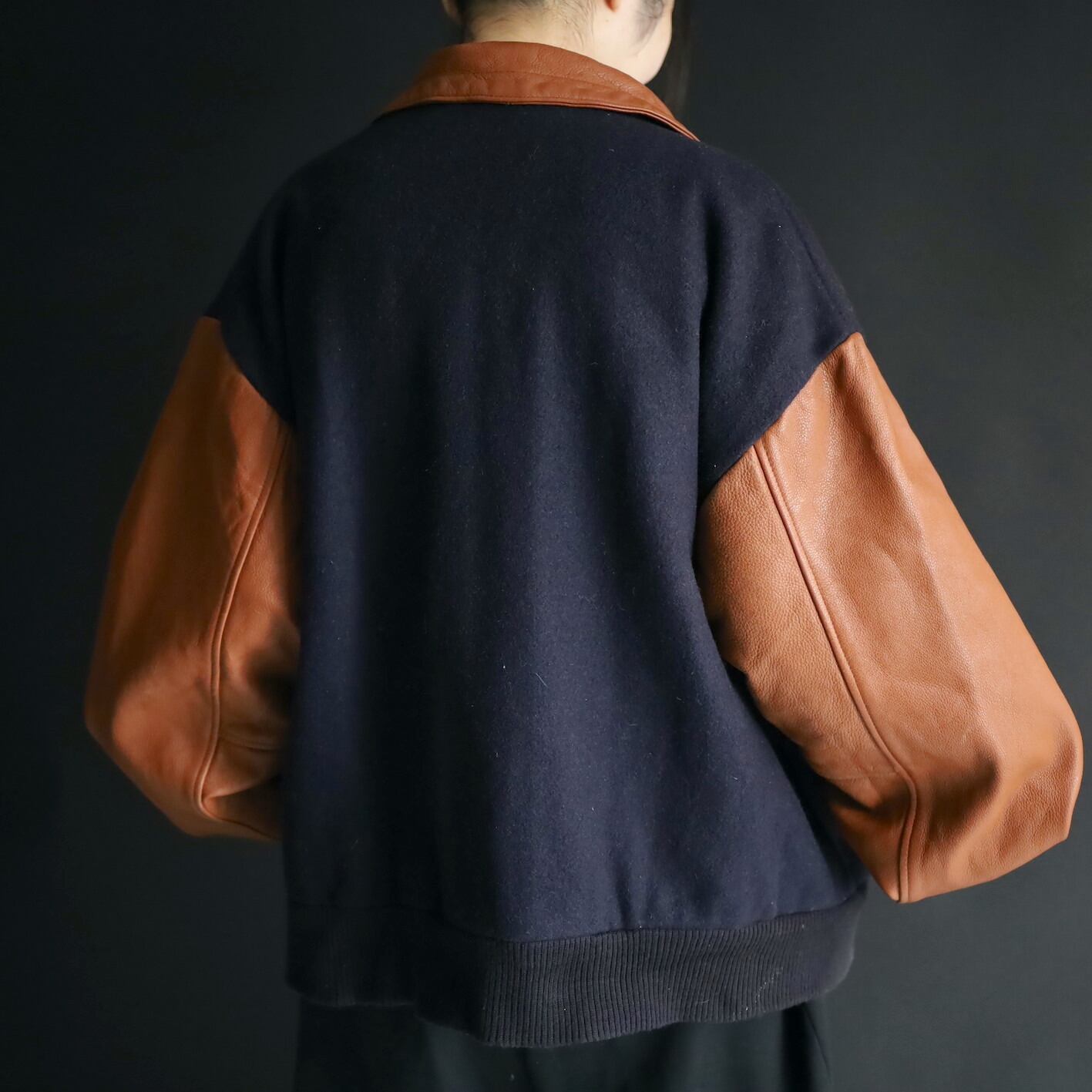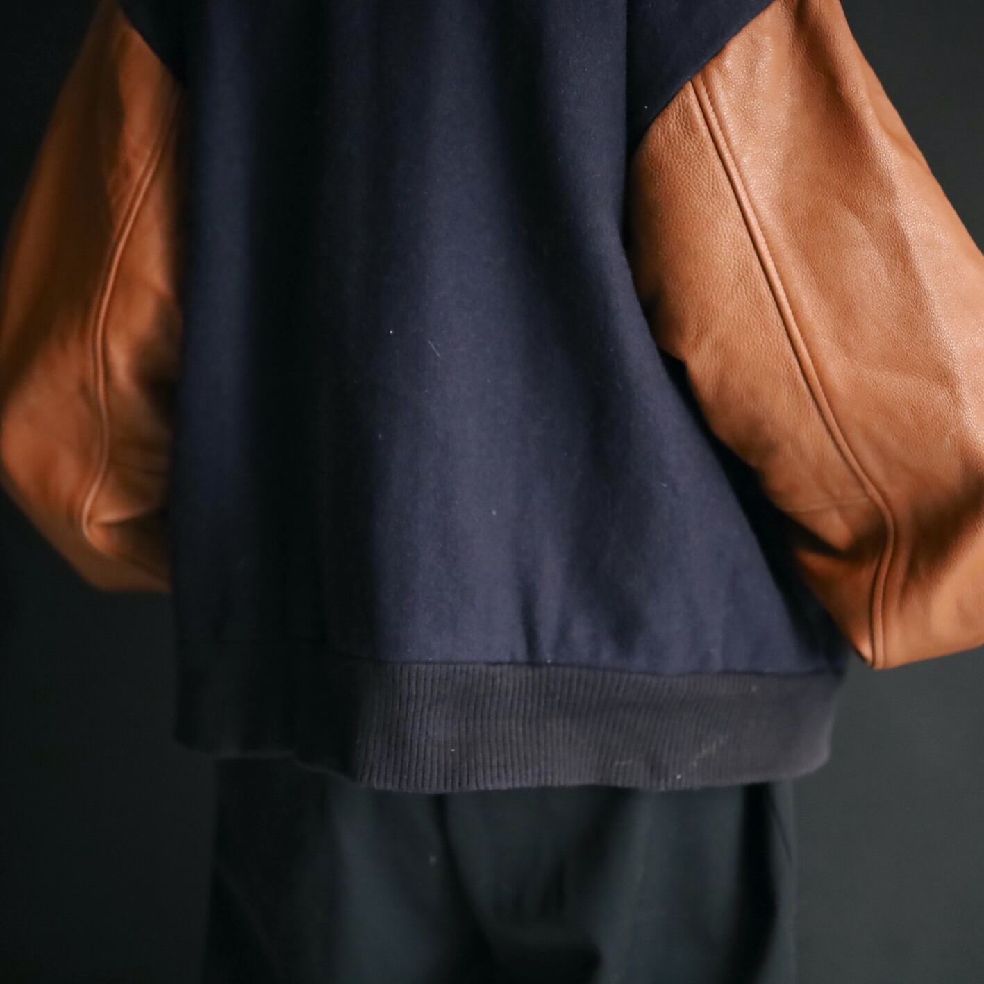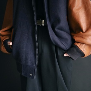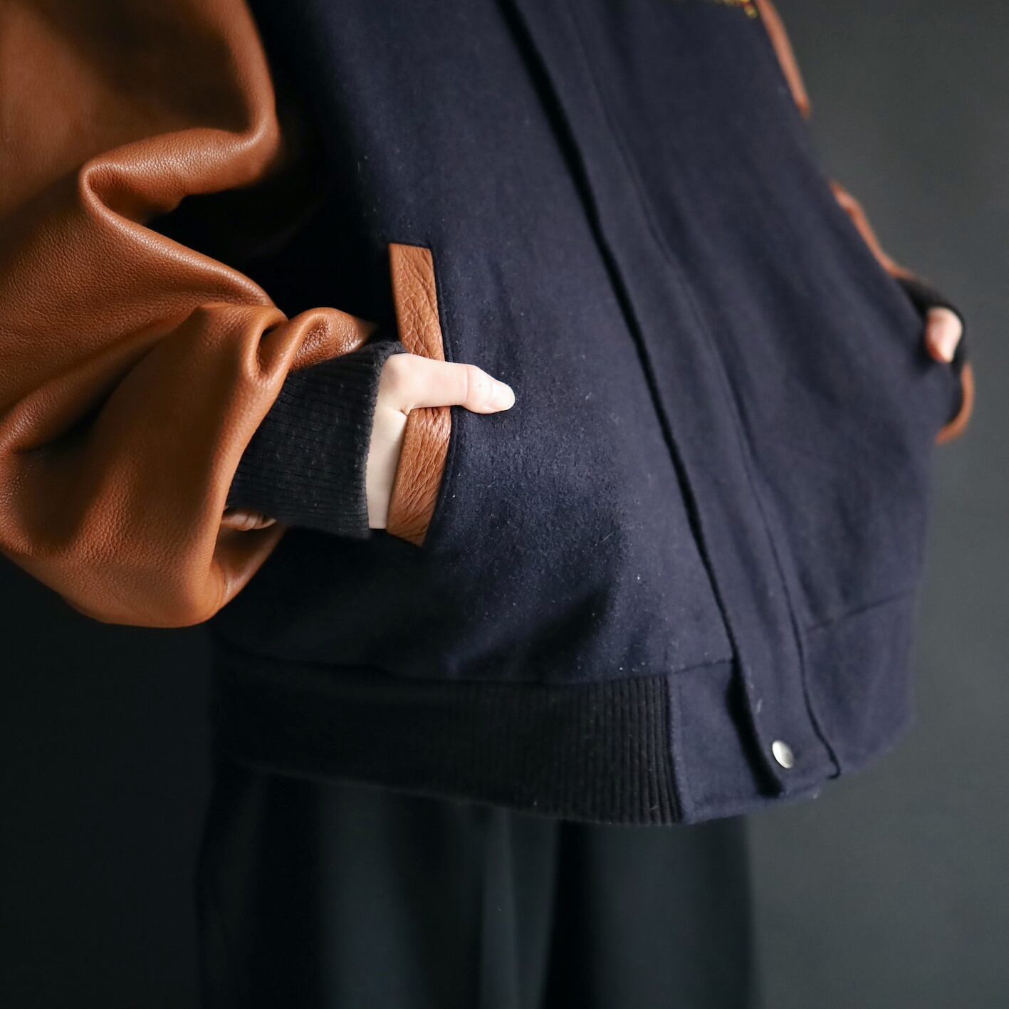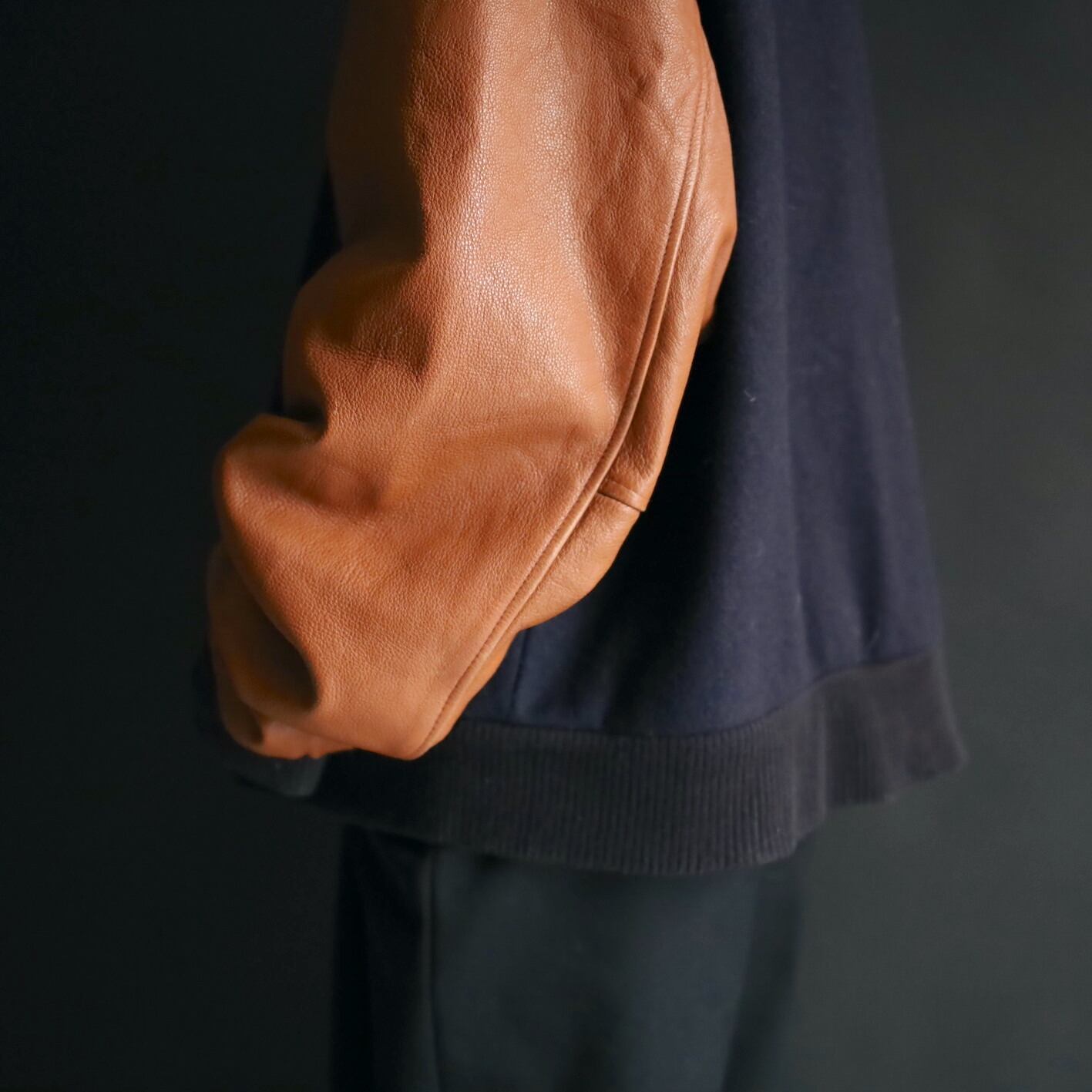 上品ななツヤのあるレザーとマットなウールのボディのコントラストがとても綺麗な一枚.