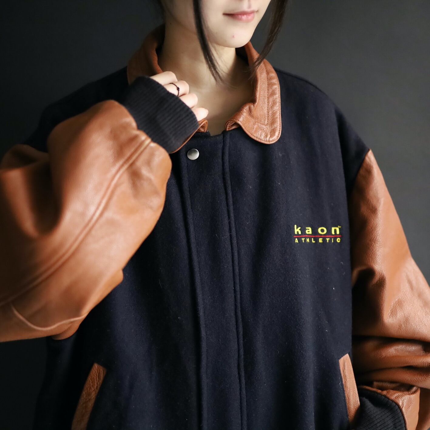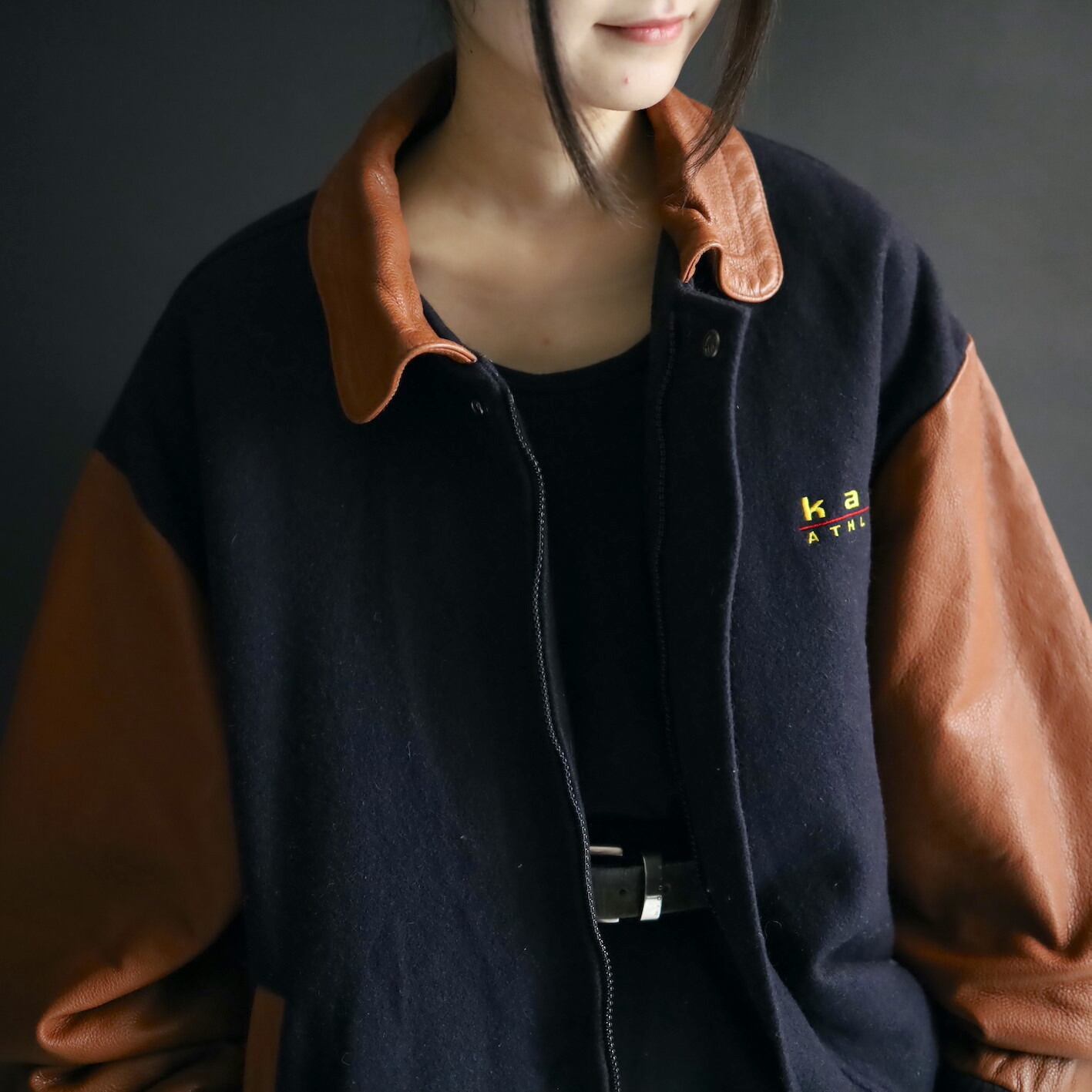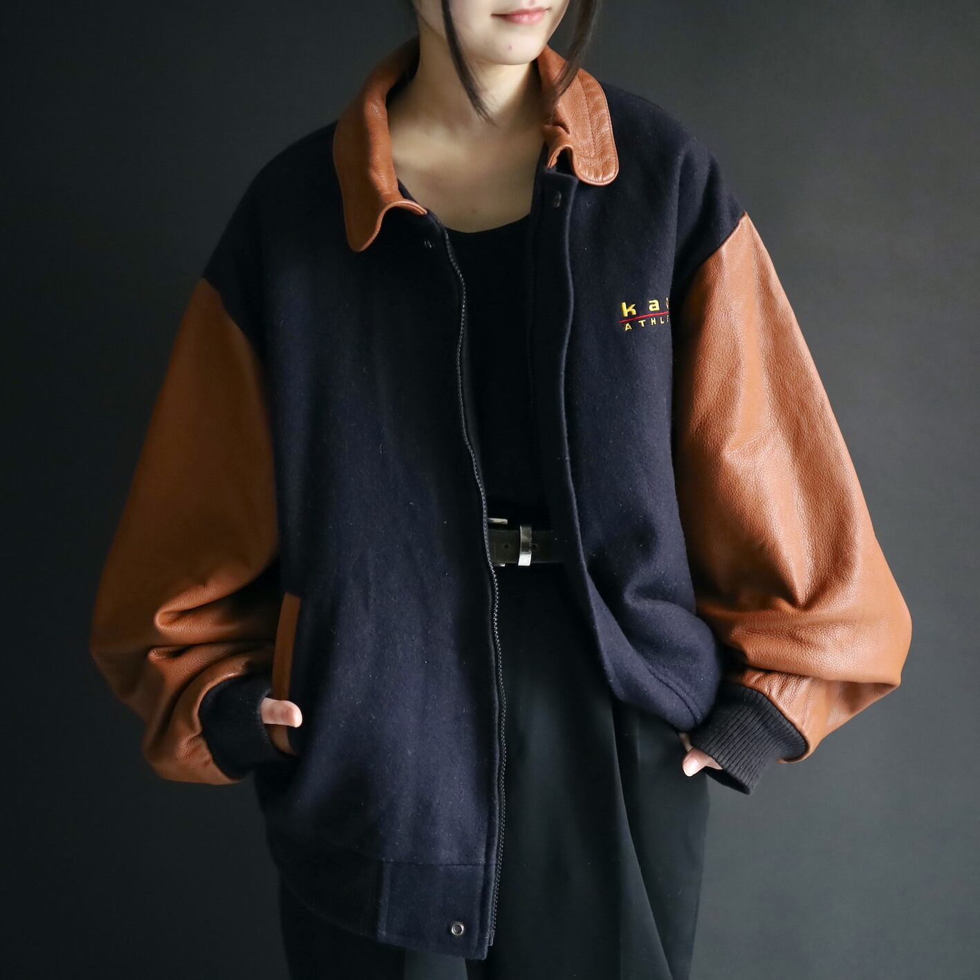 襟,アーム,ポケット入れ口がキャメルレザー切替.