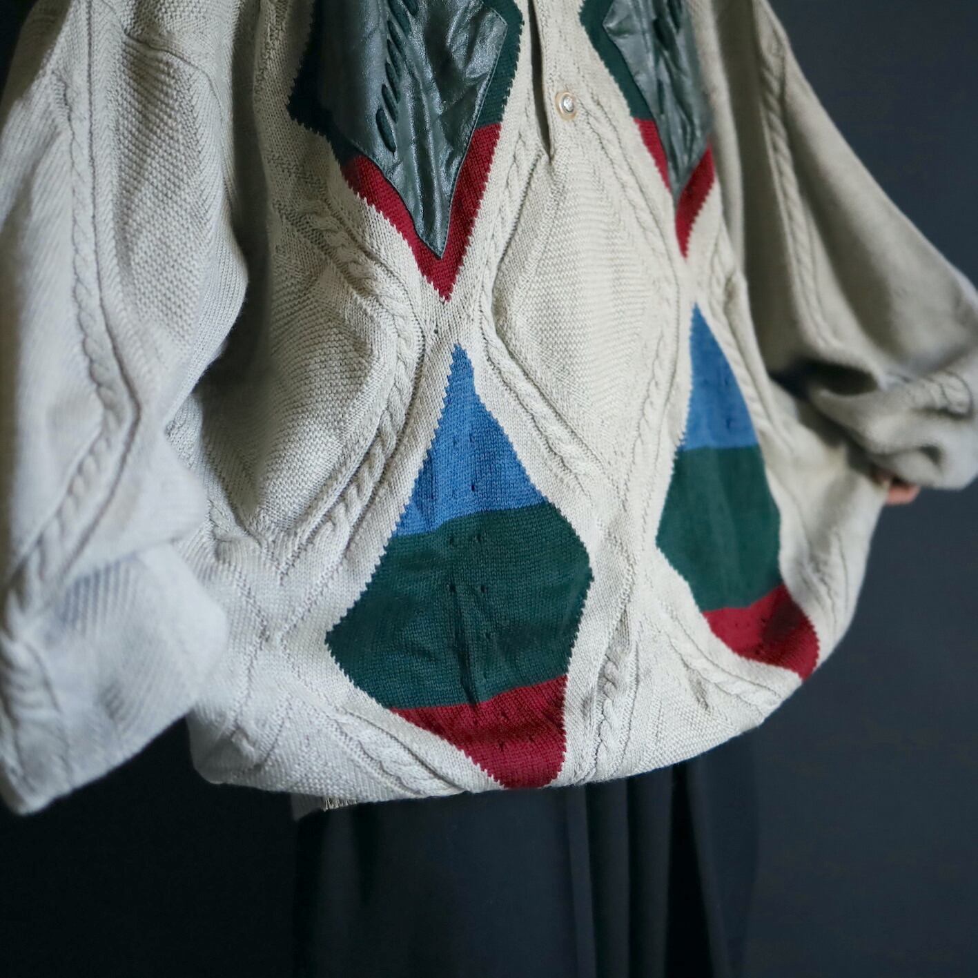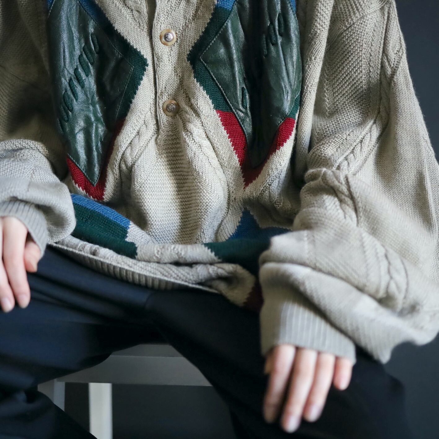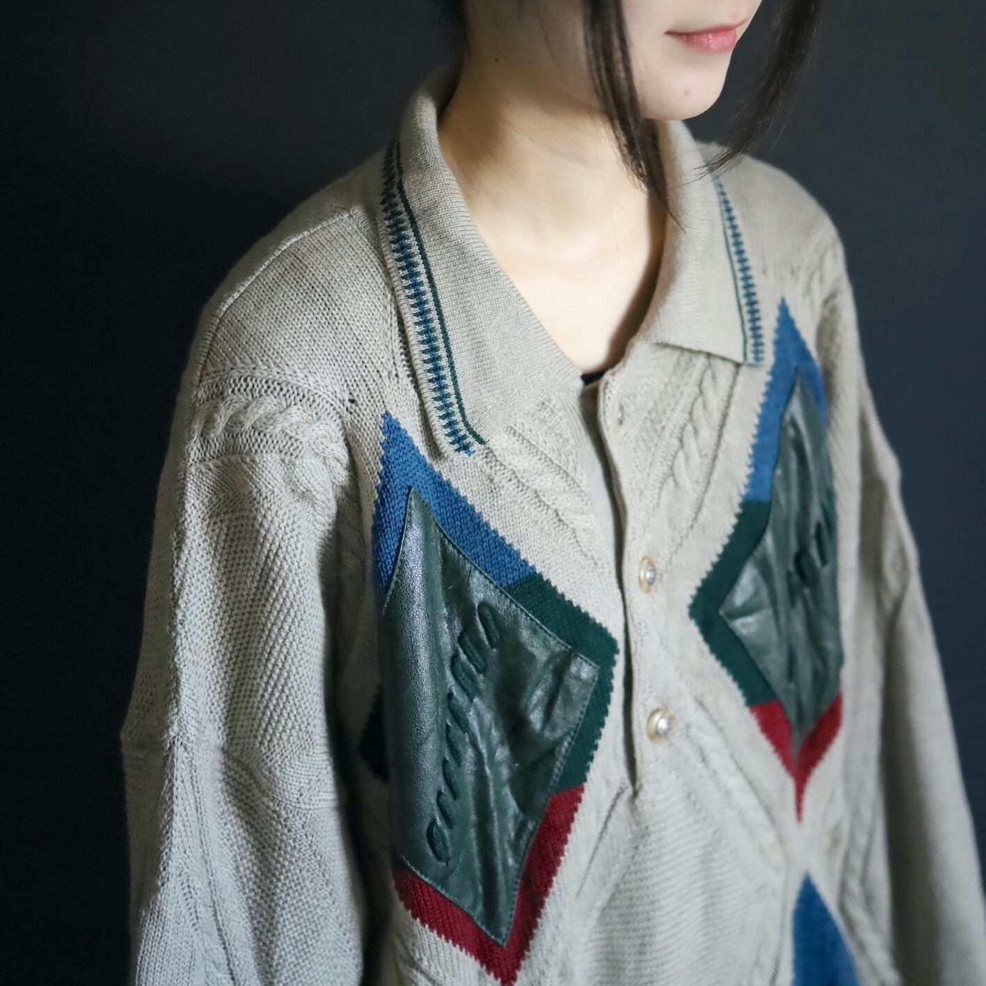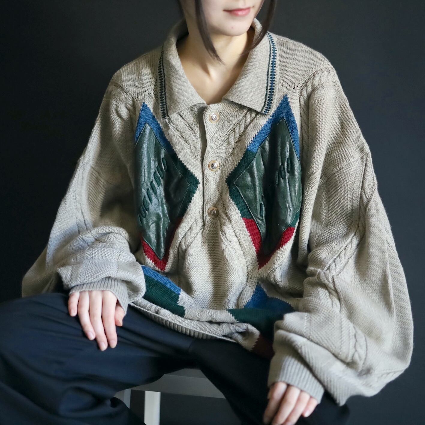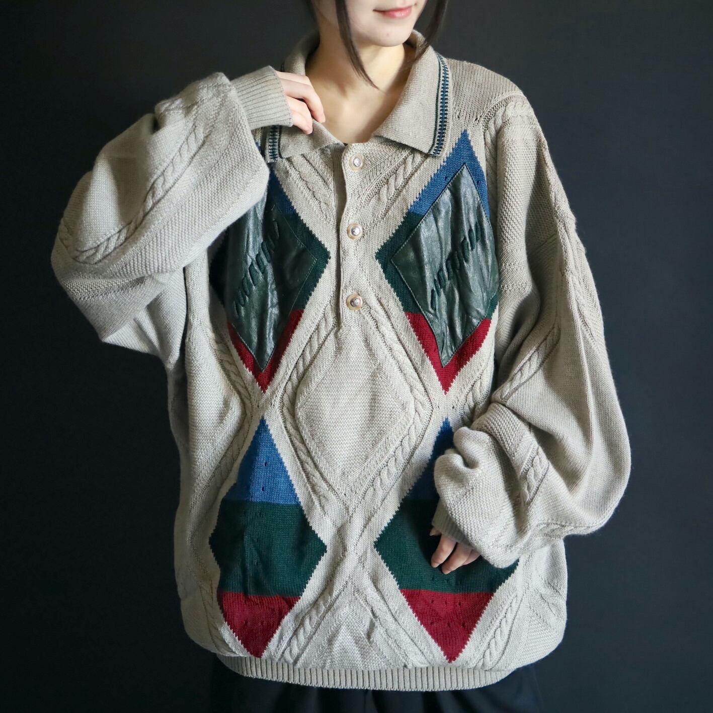 フロント4つのダイヤ柄で上ふたつはレザーパッチ.
