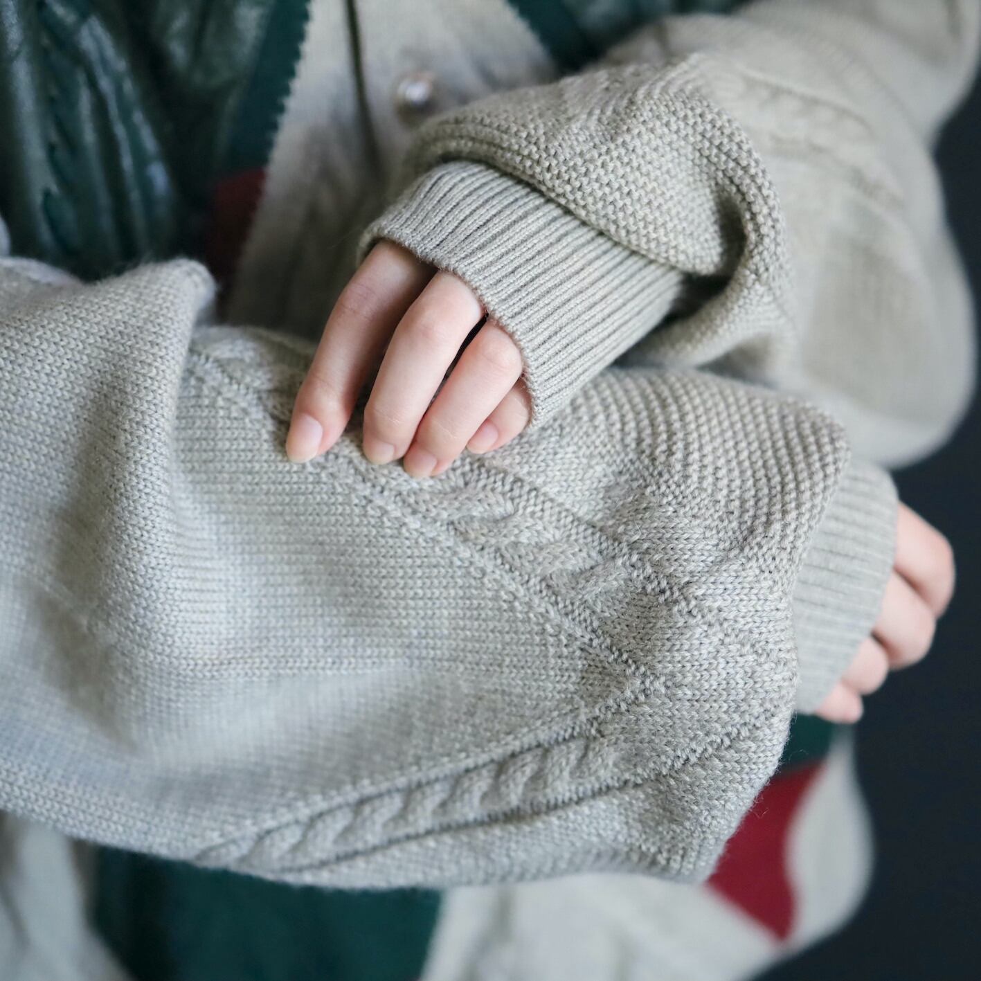 ニットそのものの編み込みも,ところどころで編み方が切り替わる飽きのこない表情.