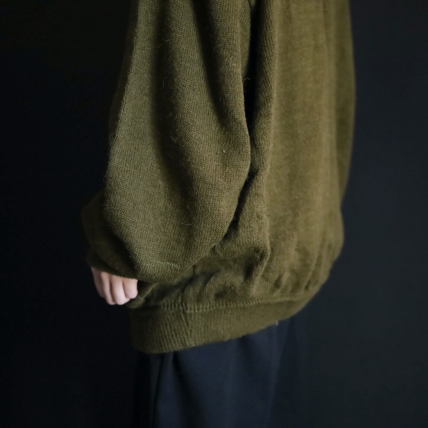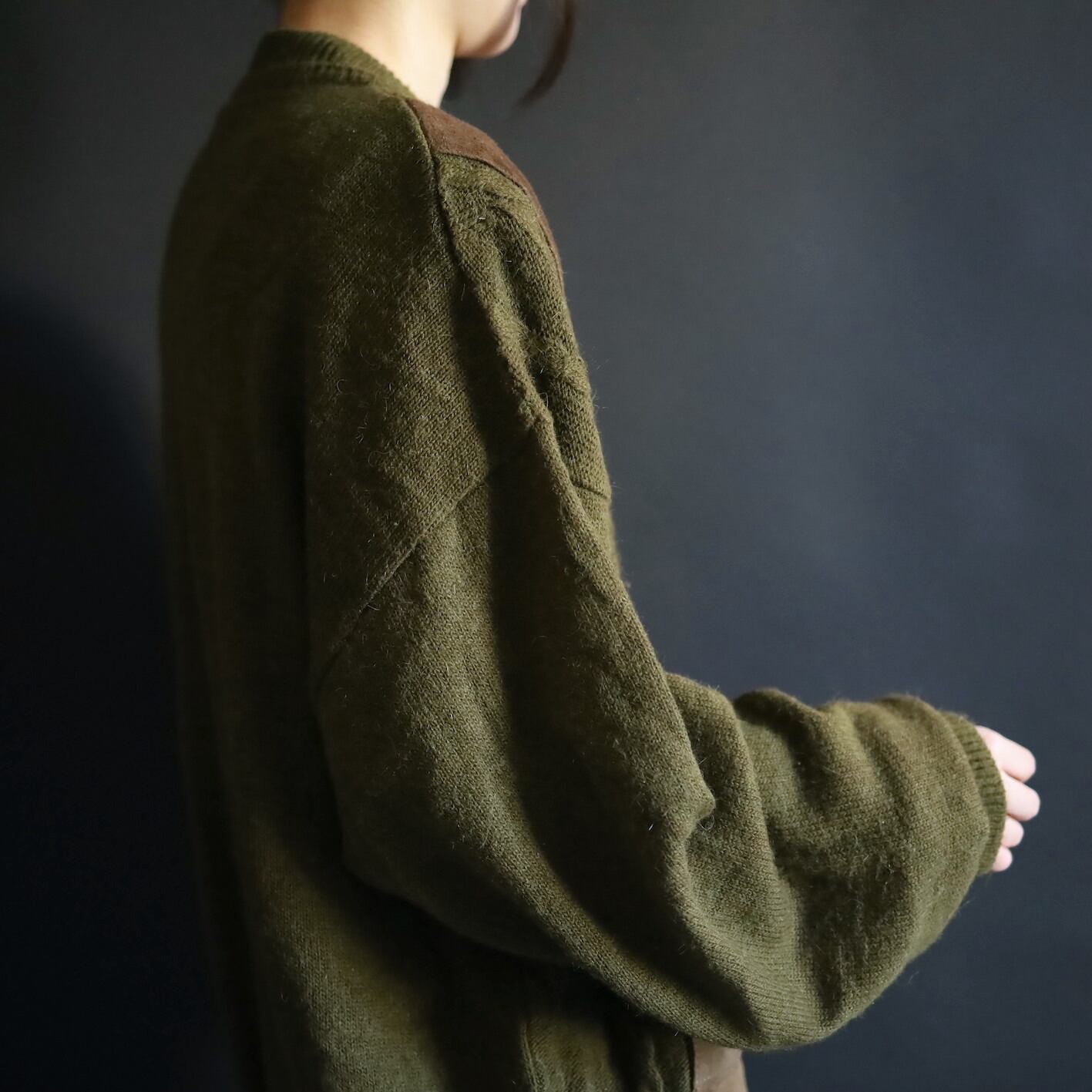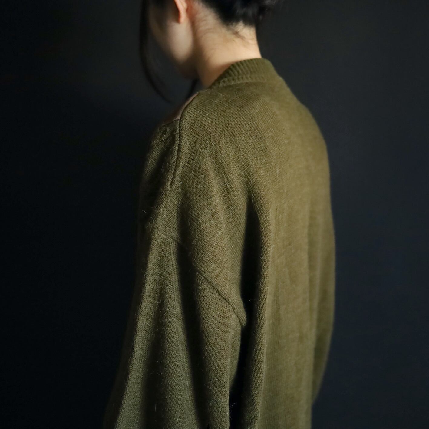 抹茶のニット部分はウール,アルパカ毛混紡のふんわりとした仕上がり.