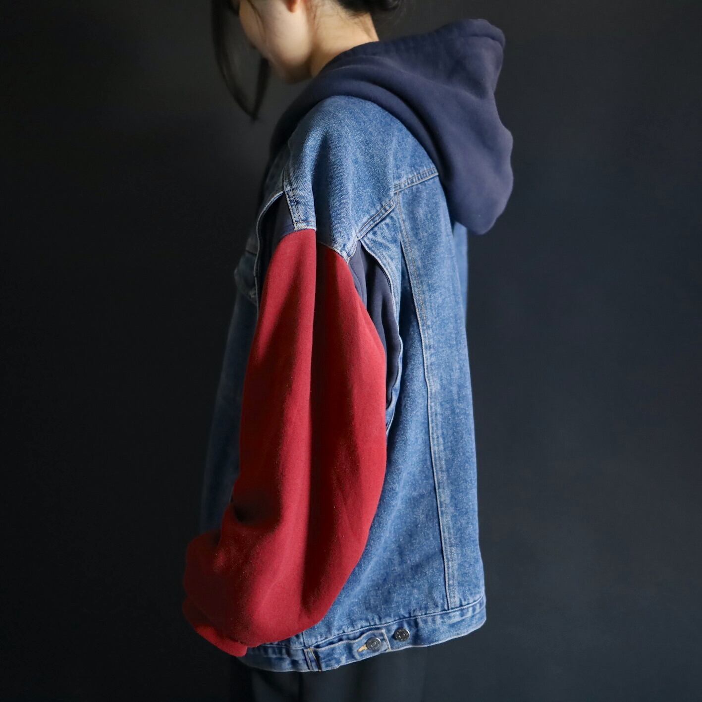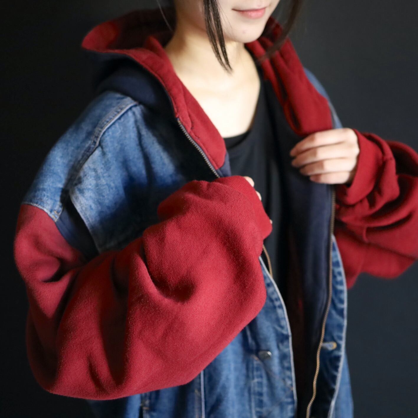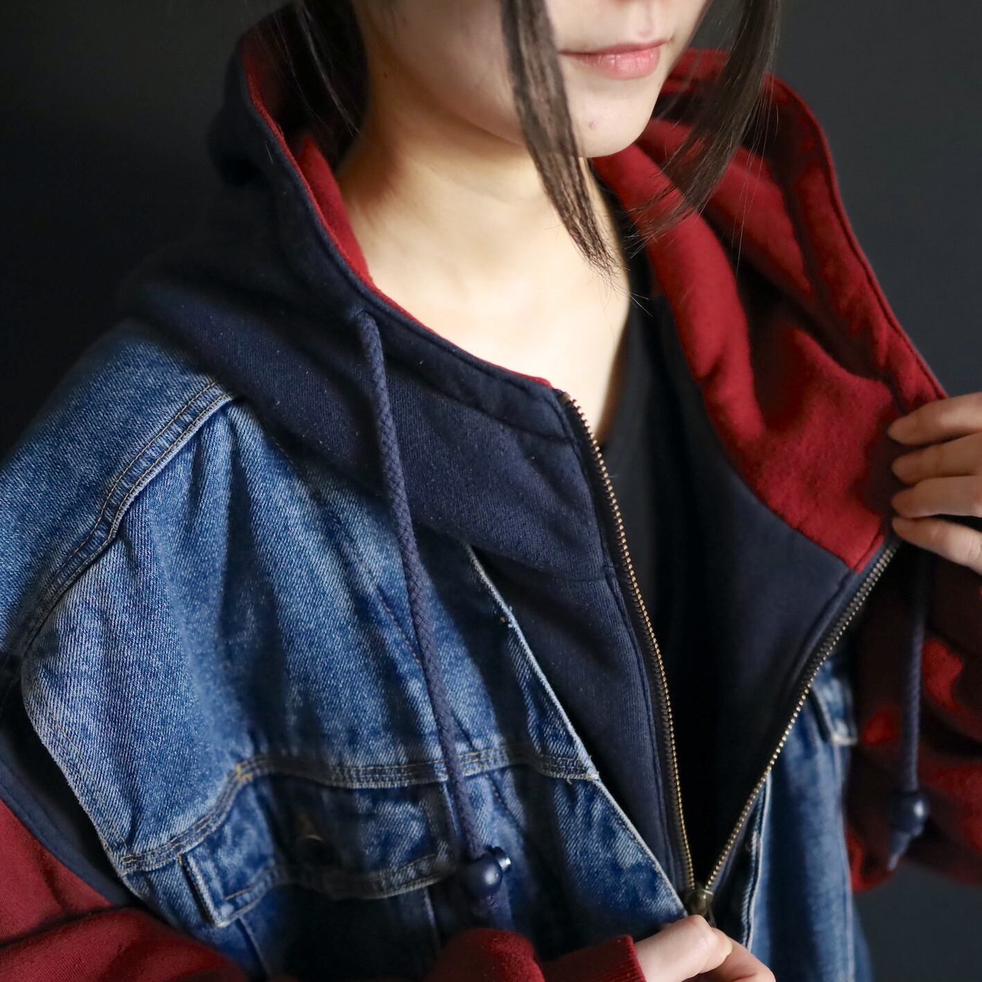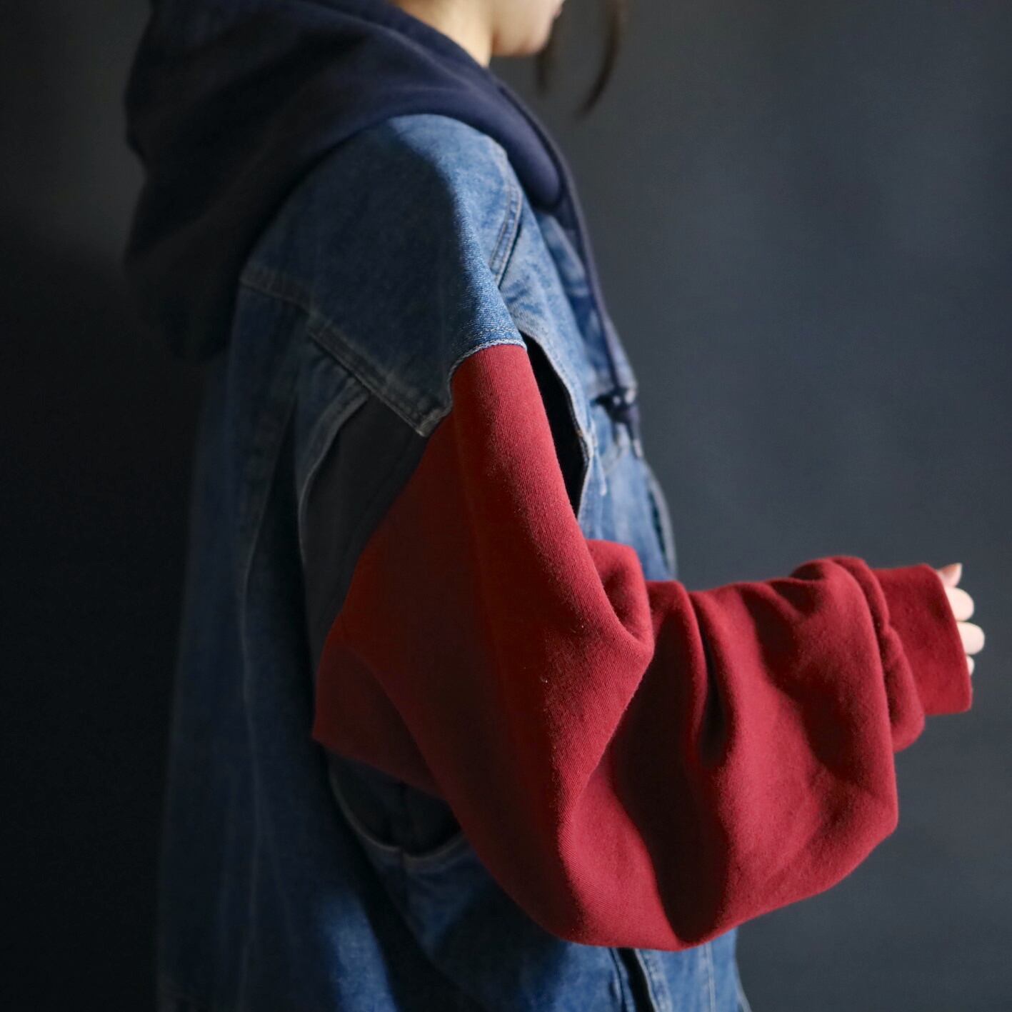リメイクっぽさあるけど,リメイクじゃない.スウェットパーカー×デニムベスト.