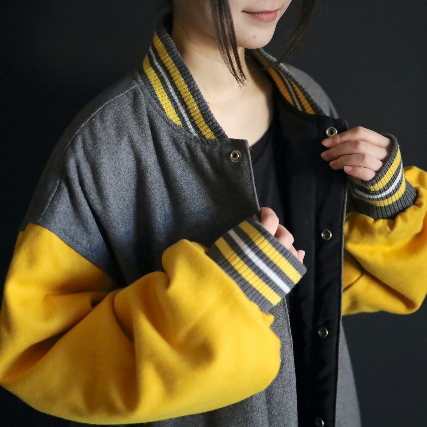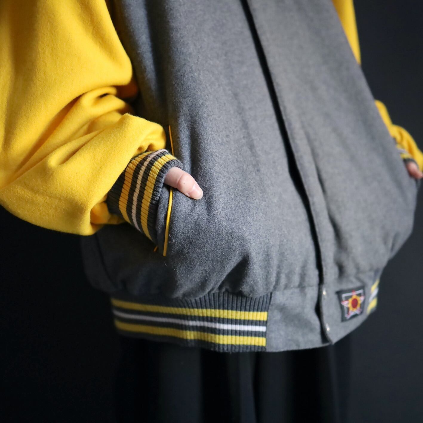 片面はグレー×イエローのバイカラーウール.