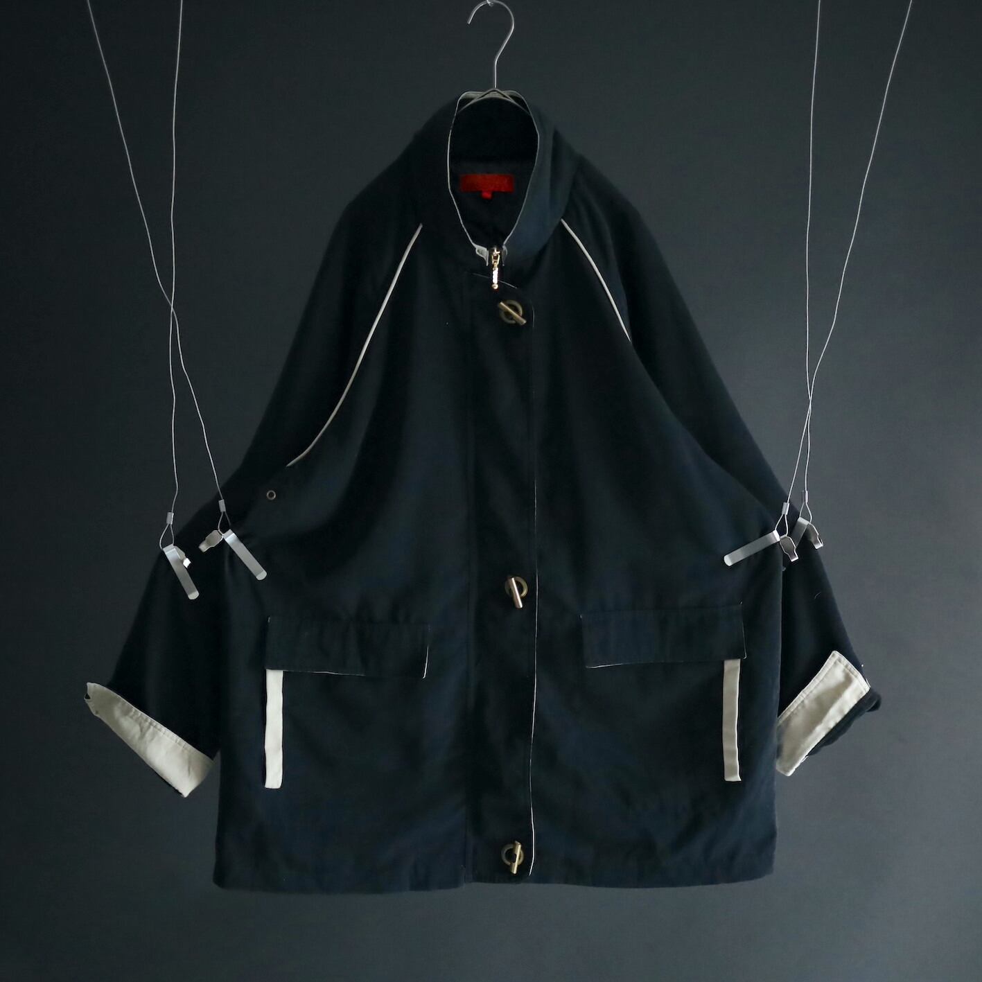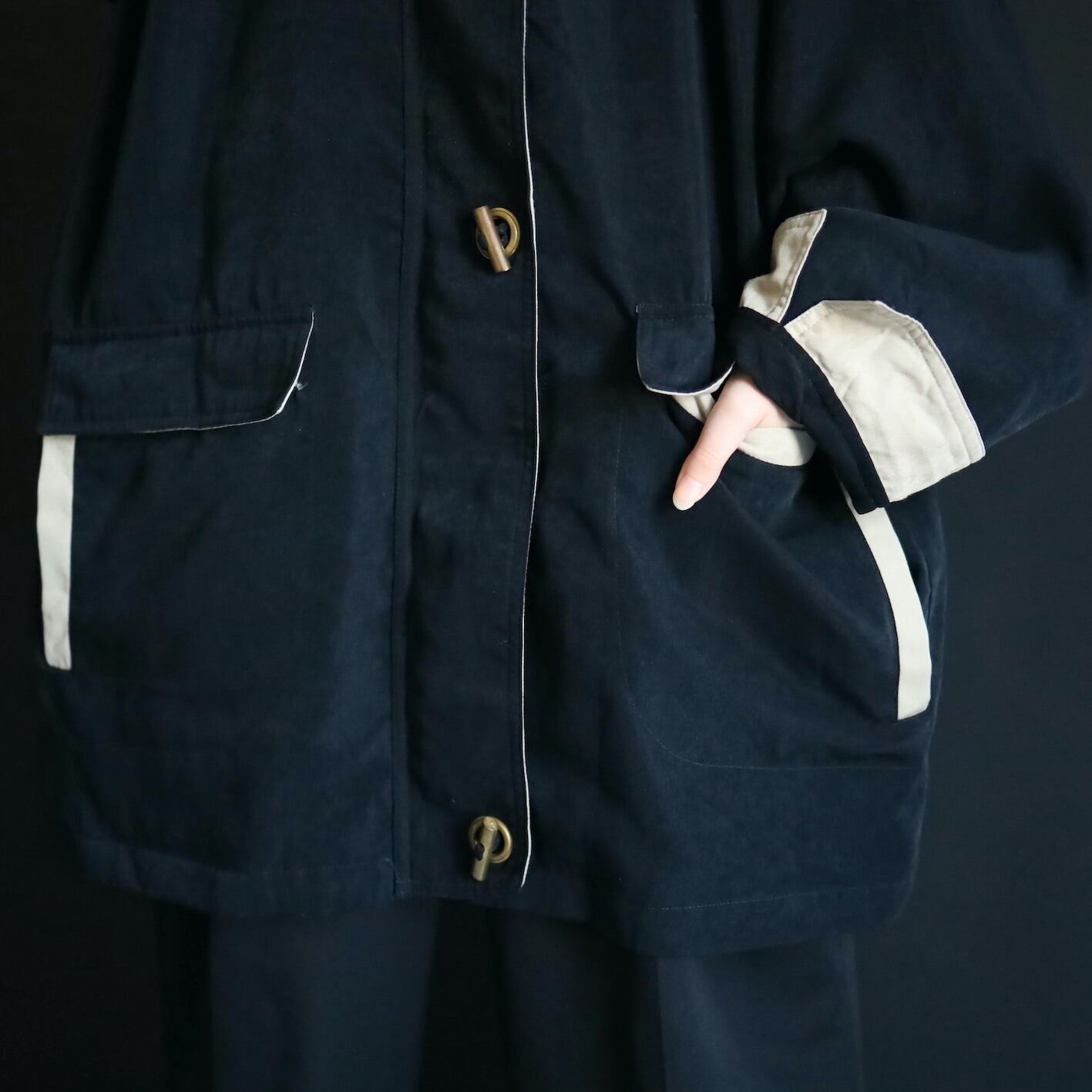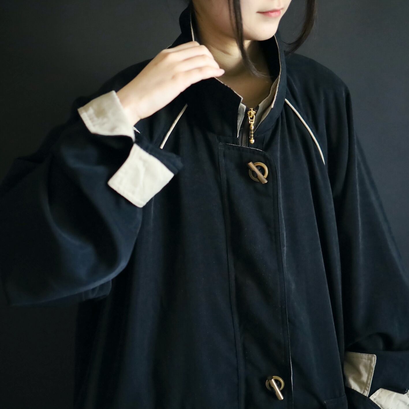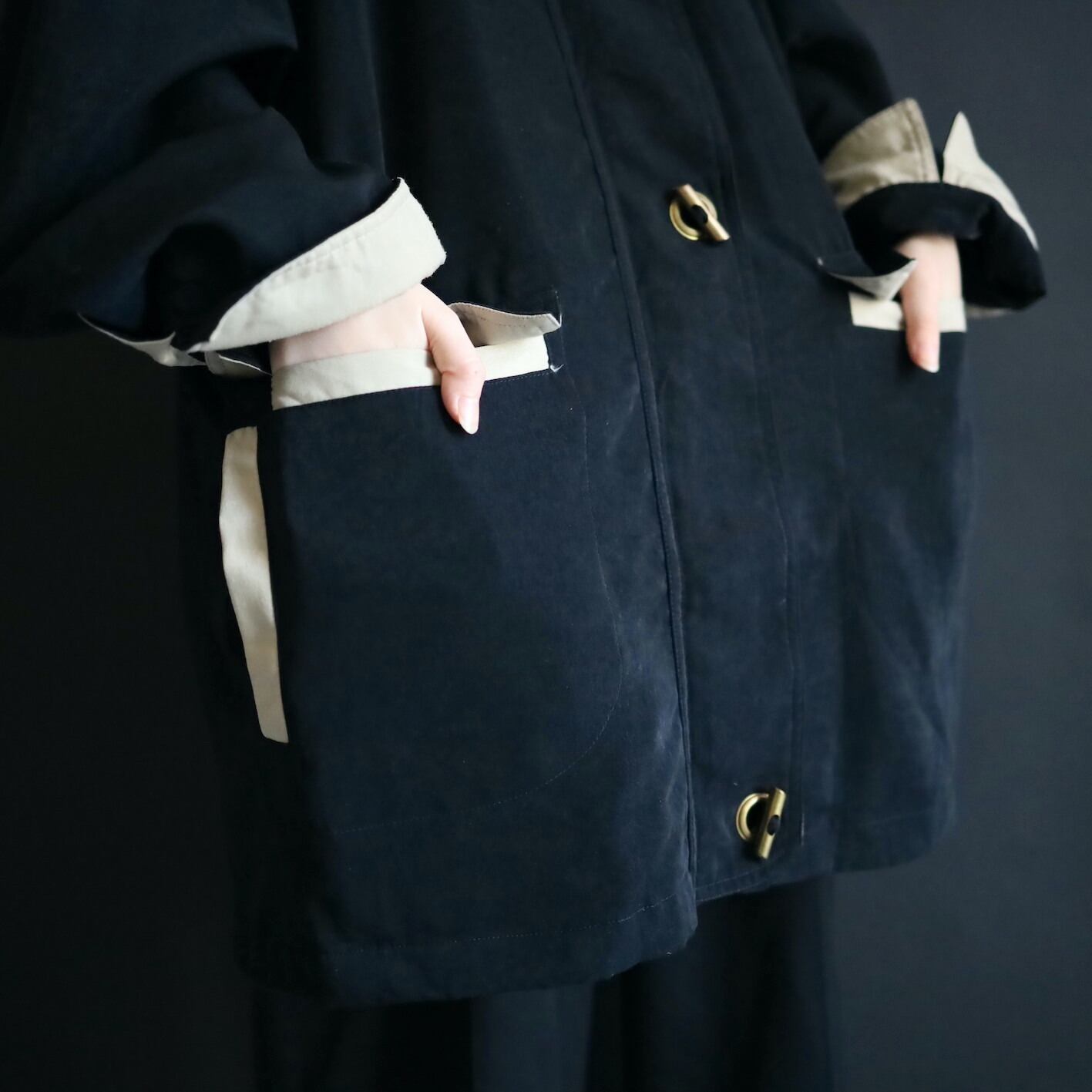 前立てのボタンは真鍮色のトグルボタンで,より上品な雰囲気にまとまった仕上がりです.