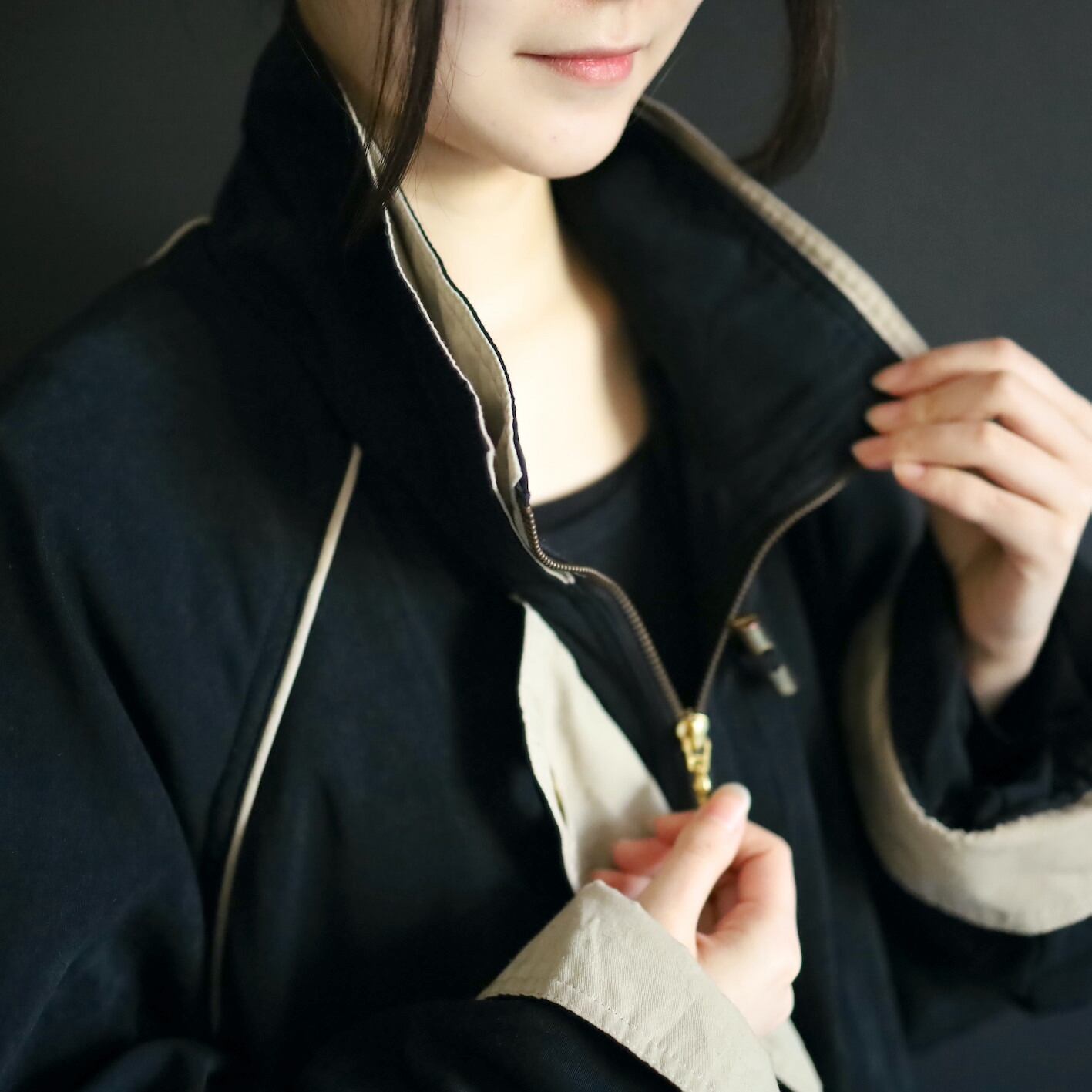 落ち着いた大人の印象のハイネック,ジップアップ仕様.