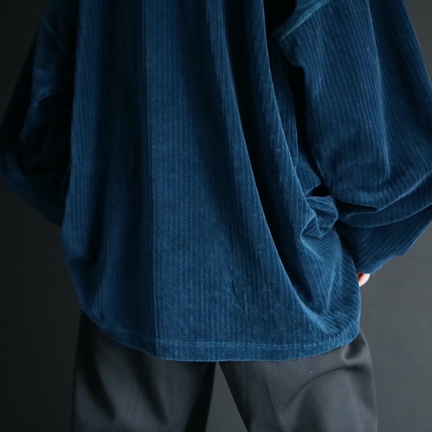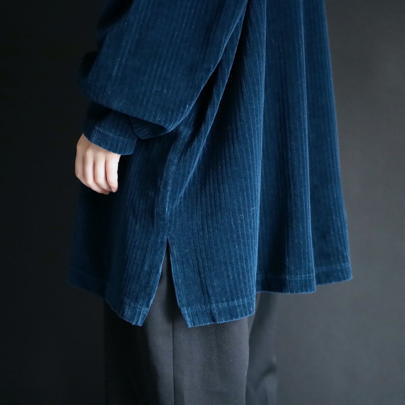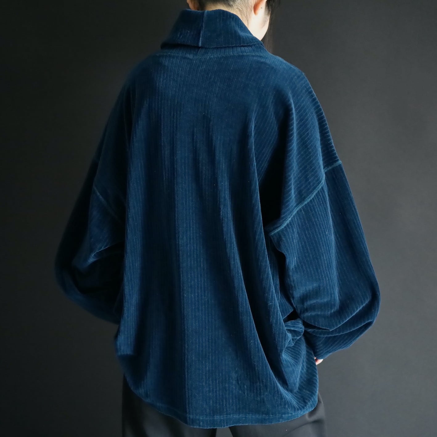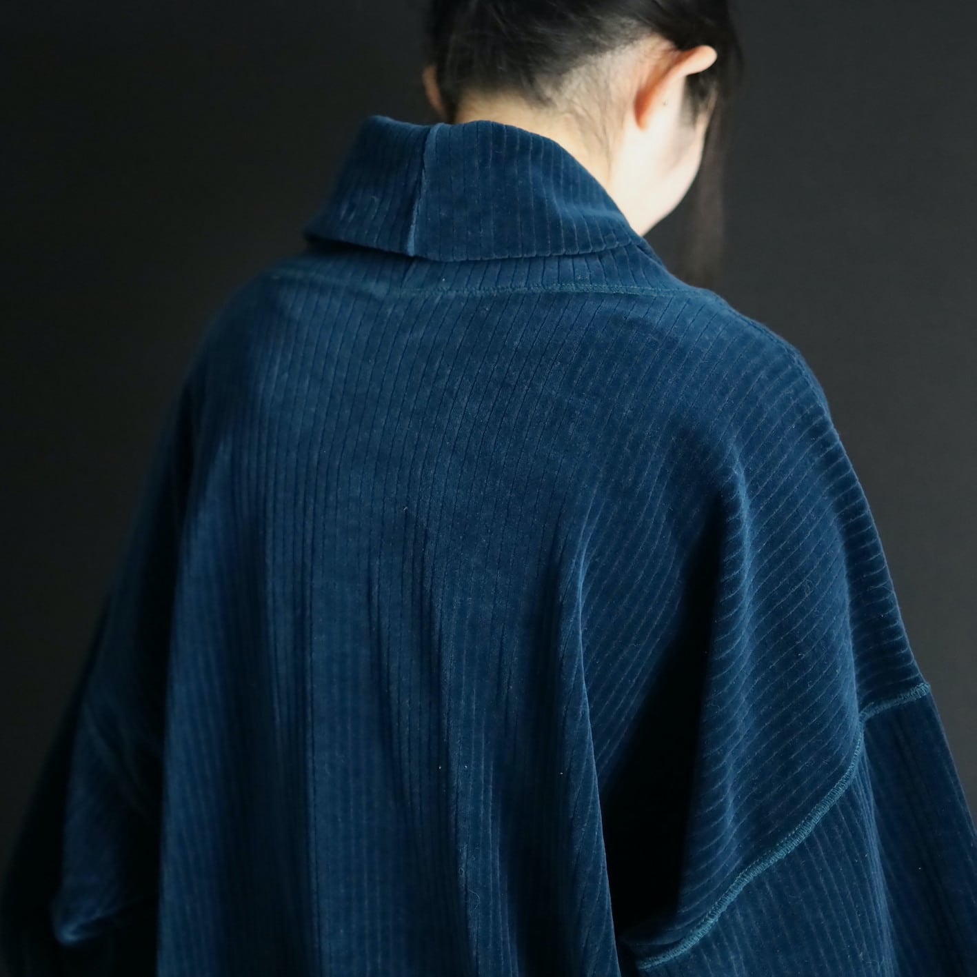 ベロア特有の鈍い光沢感もあってか,他ネイビー系のアイテムとはひと味違った表現ですよね.
