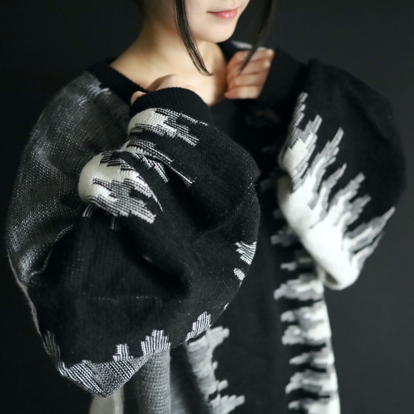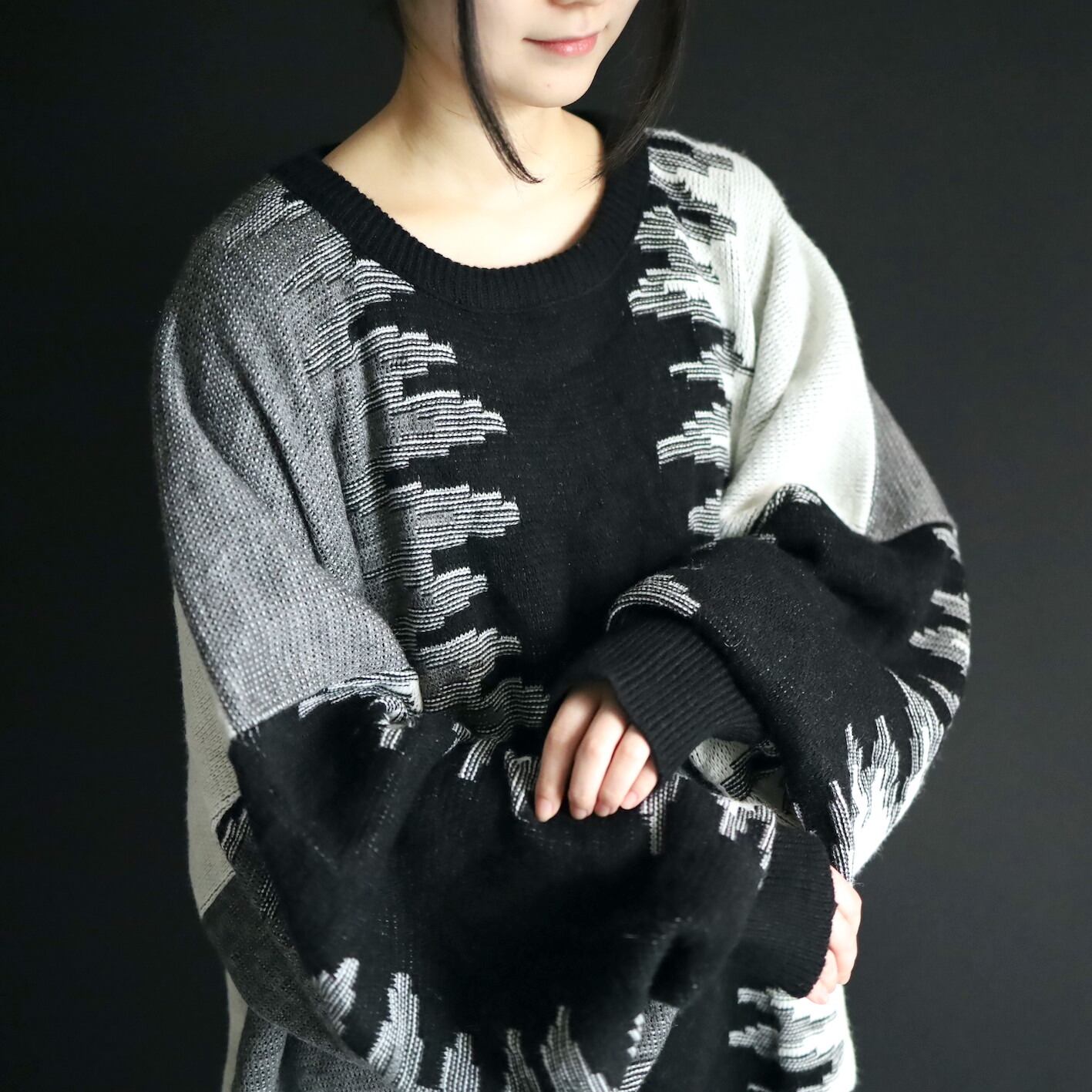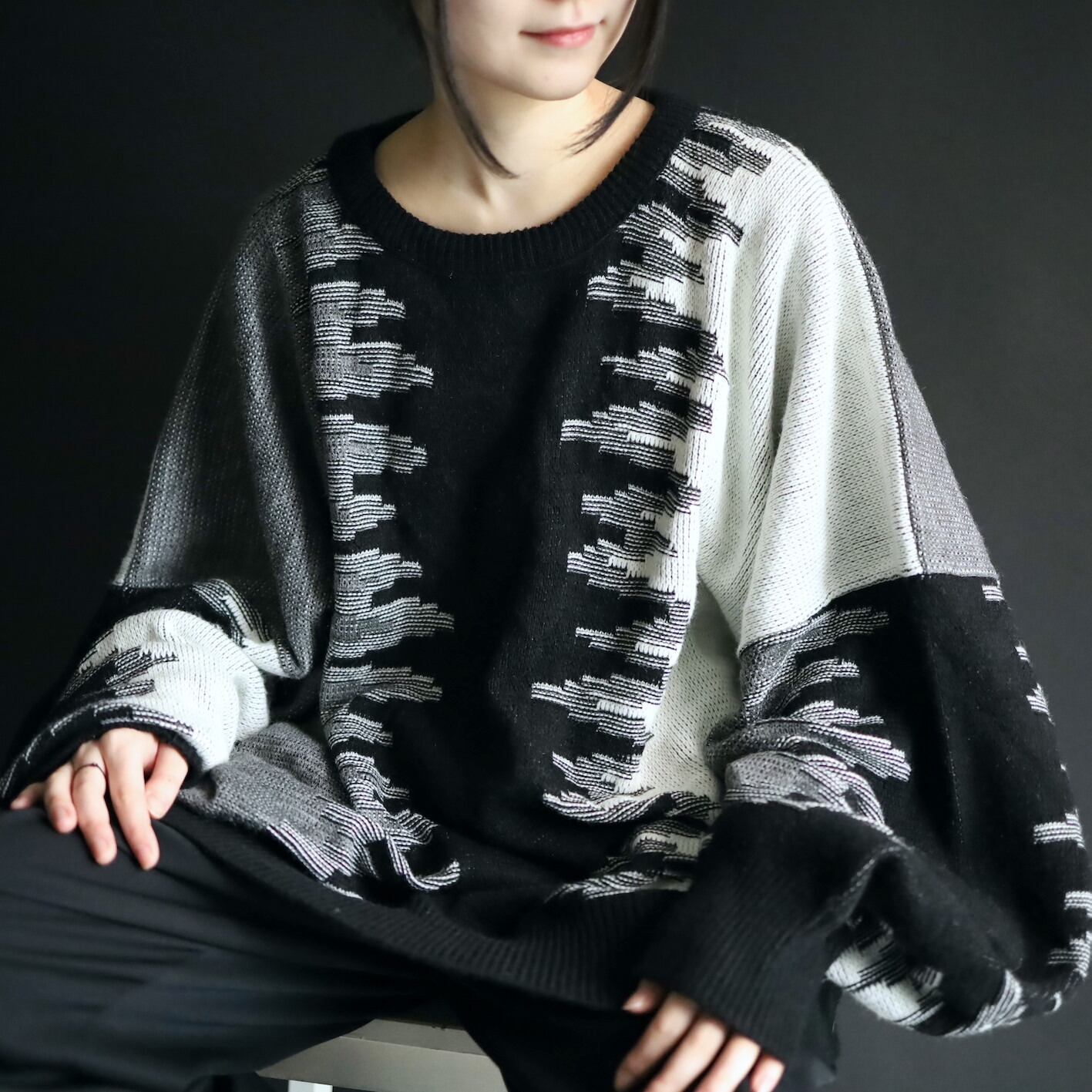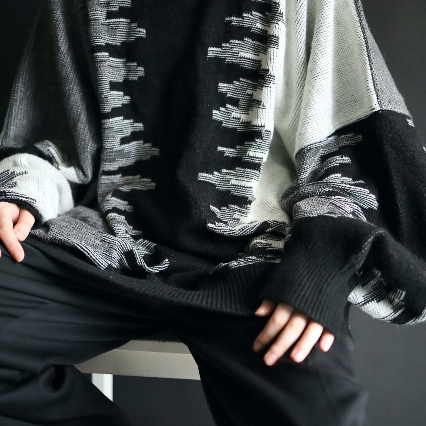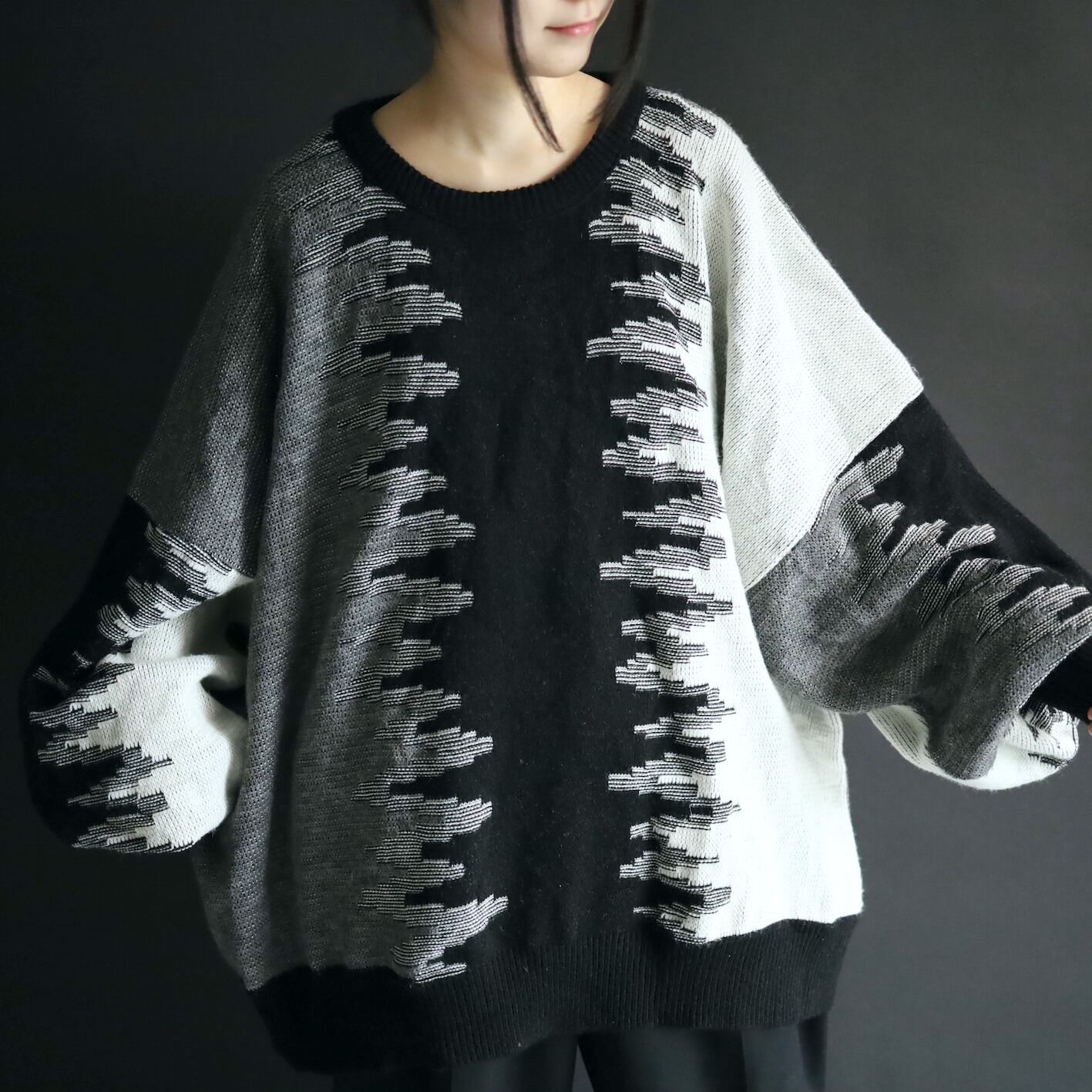モード感抜群のワイドシルエットニットセーター.