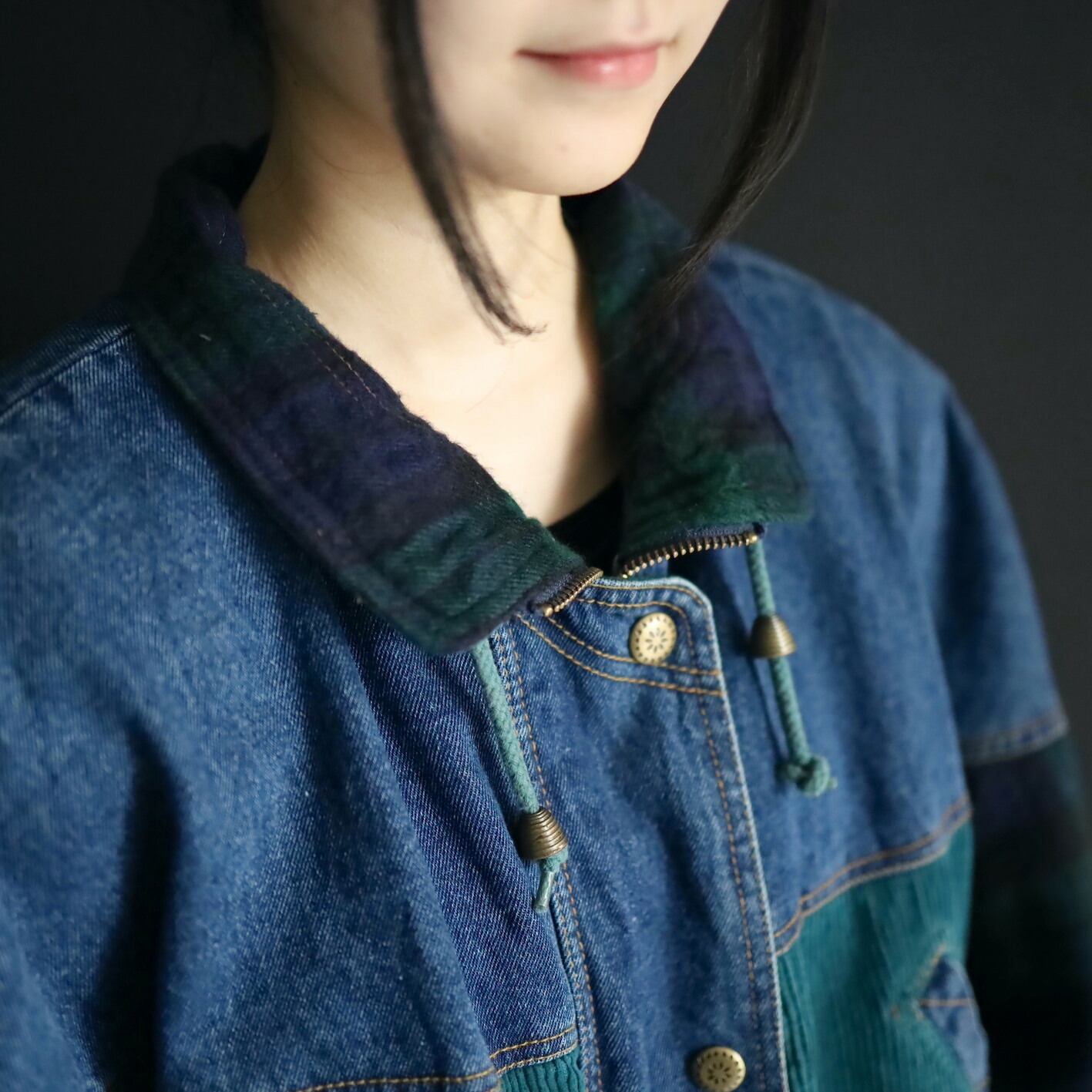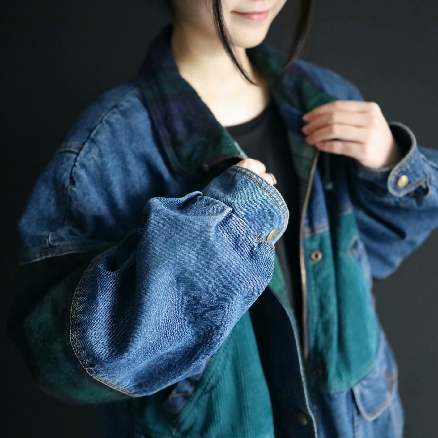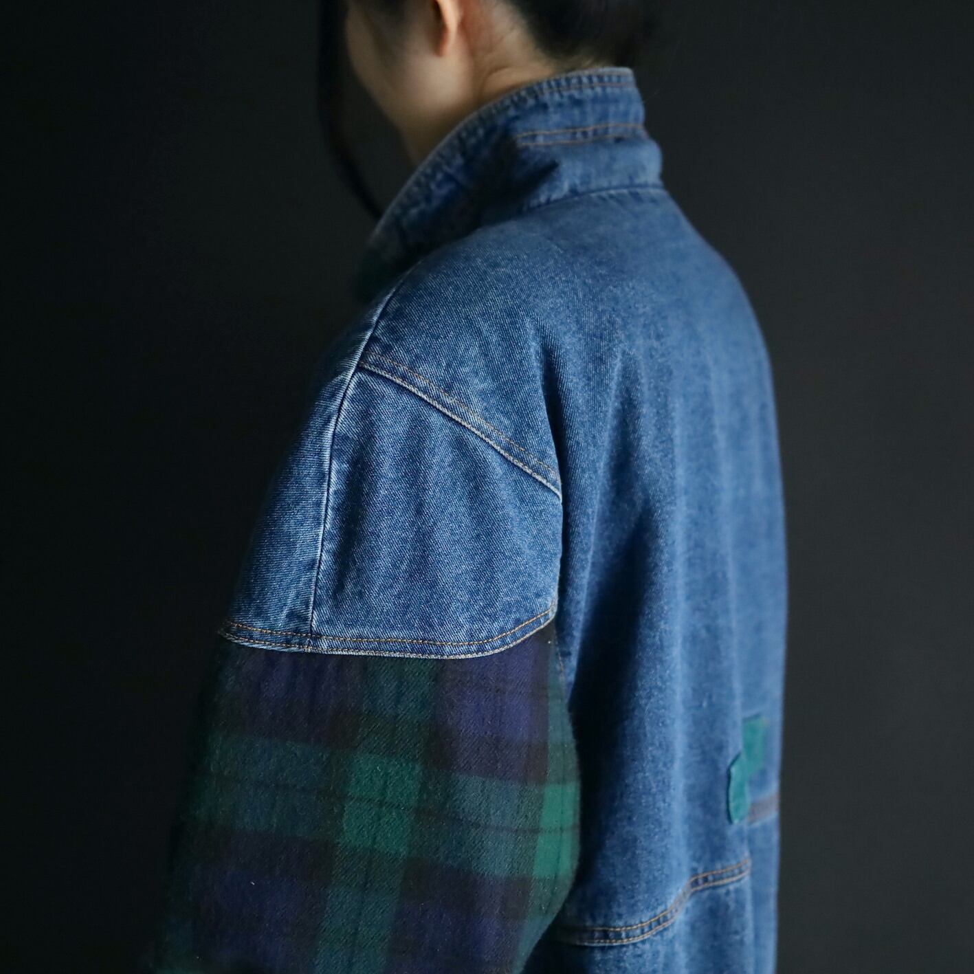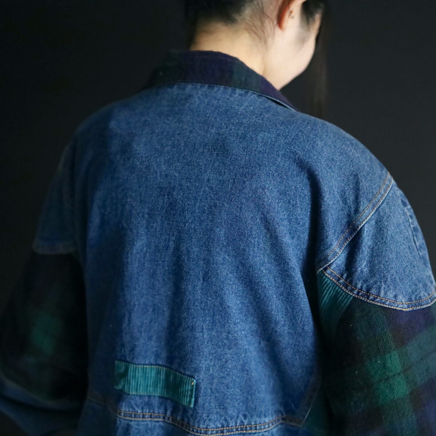 ブルーデニムのボディをベースに,身頃と袖の半ばが生地切替.