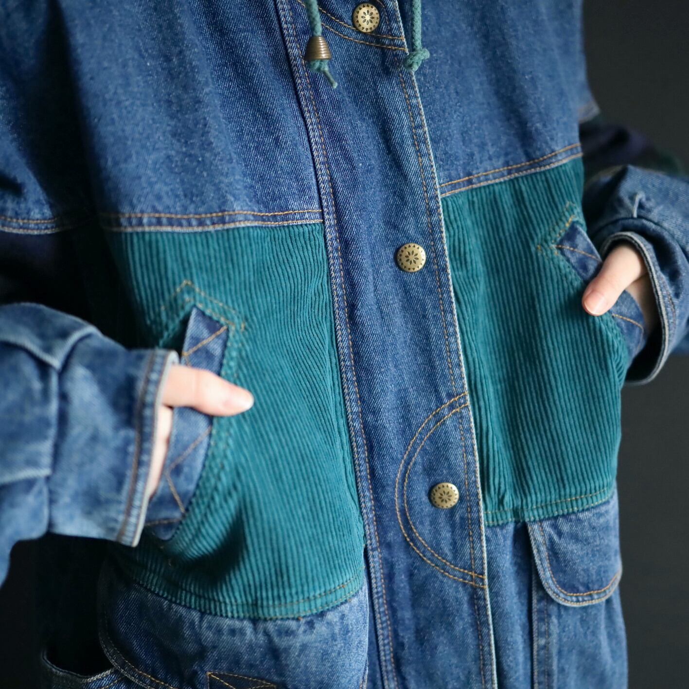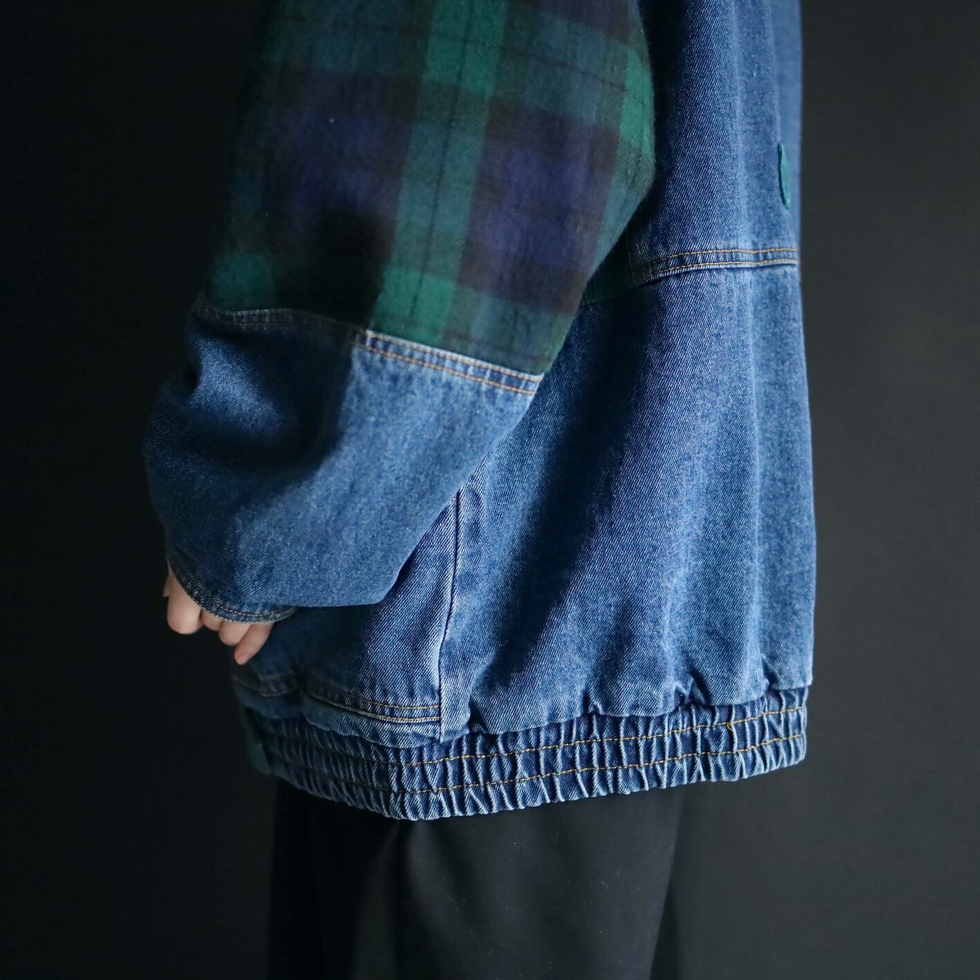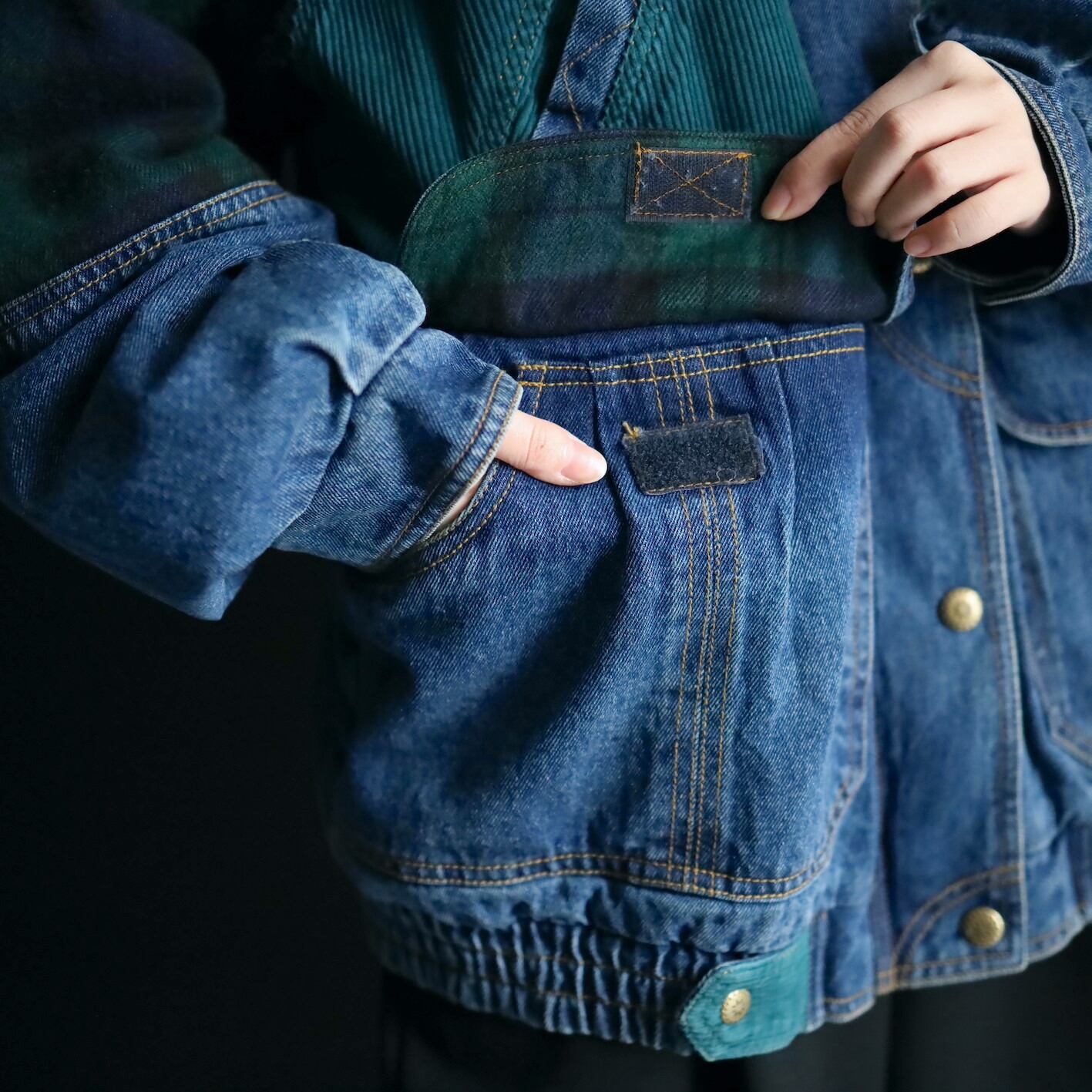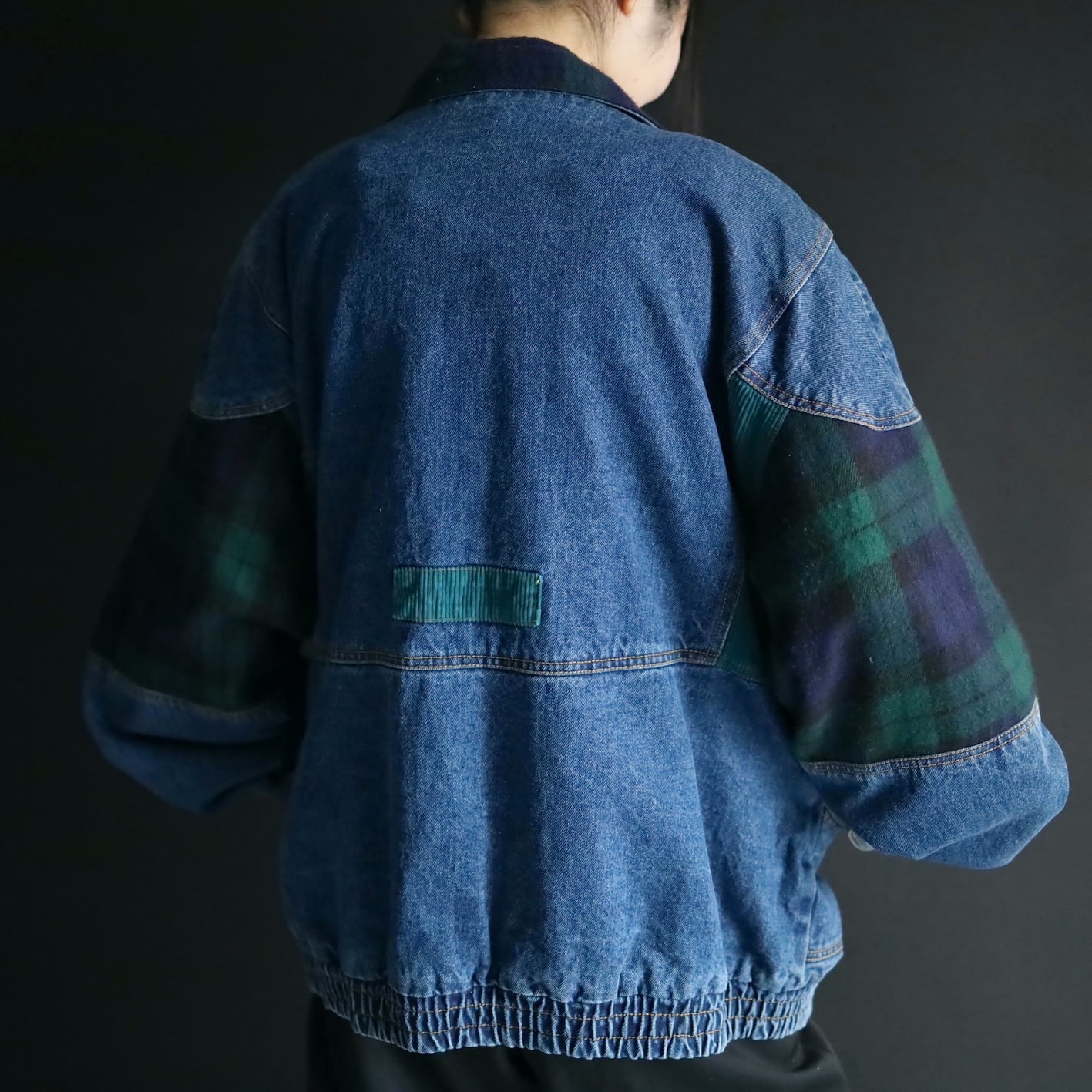 ブルーデニムのボディをベースに,身頃と袖の半ばが生地切替.