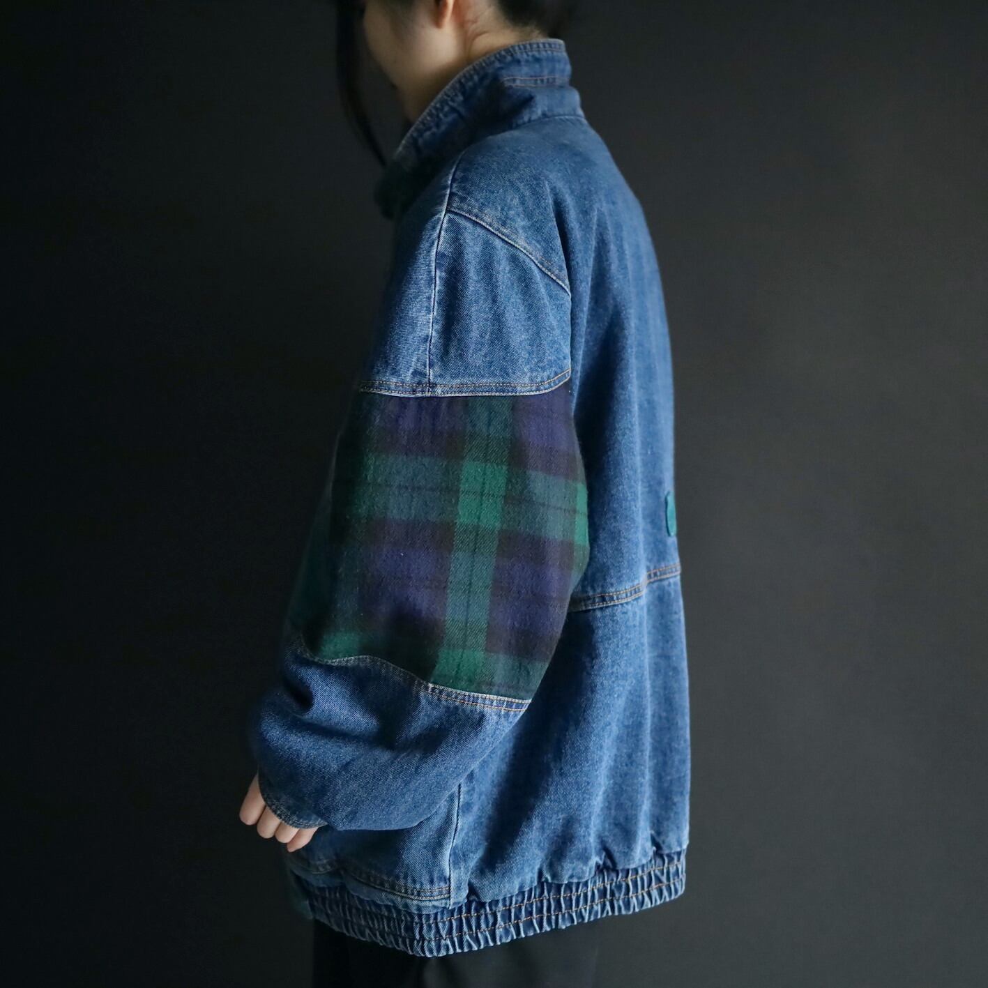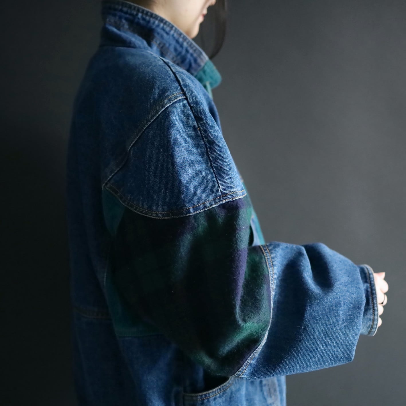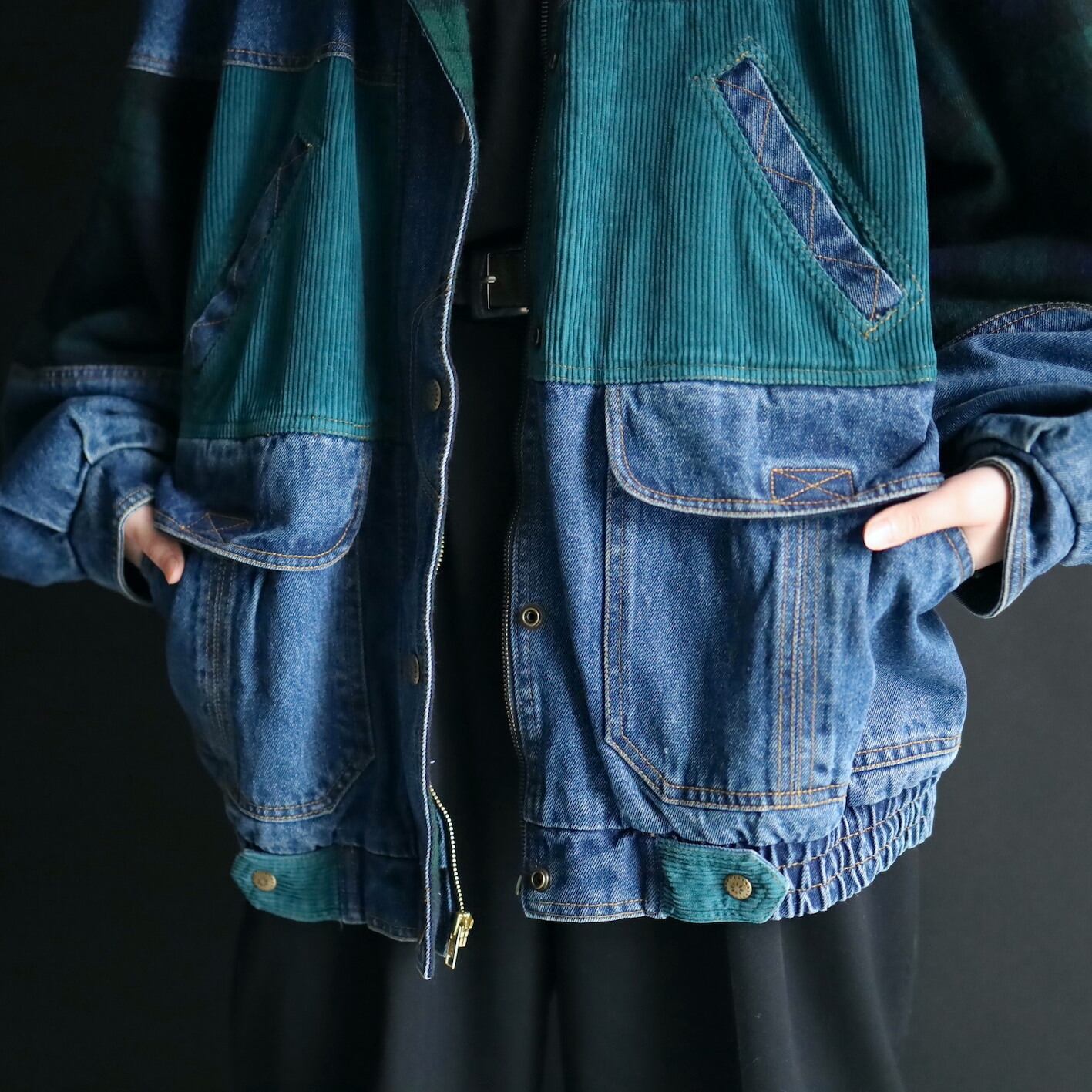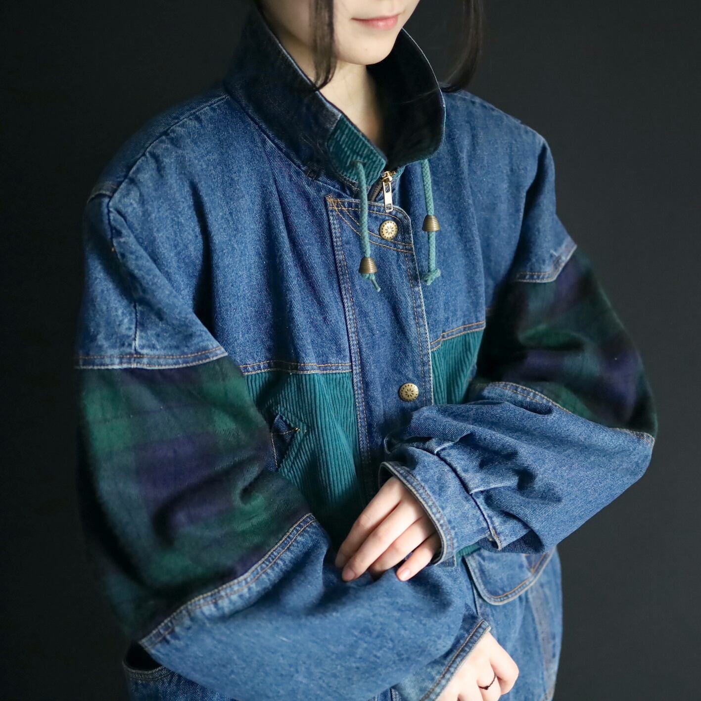 ブルーデニムのボディをベースに,身頃と袖の半ばが生地切替.