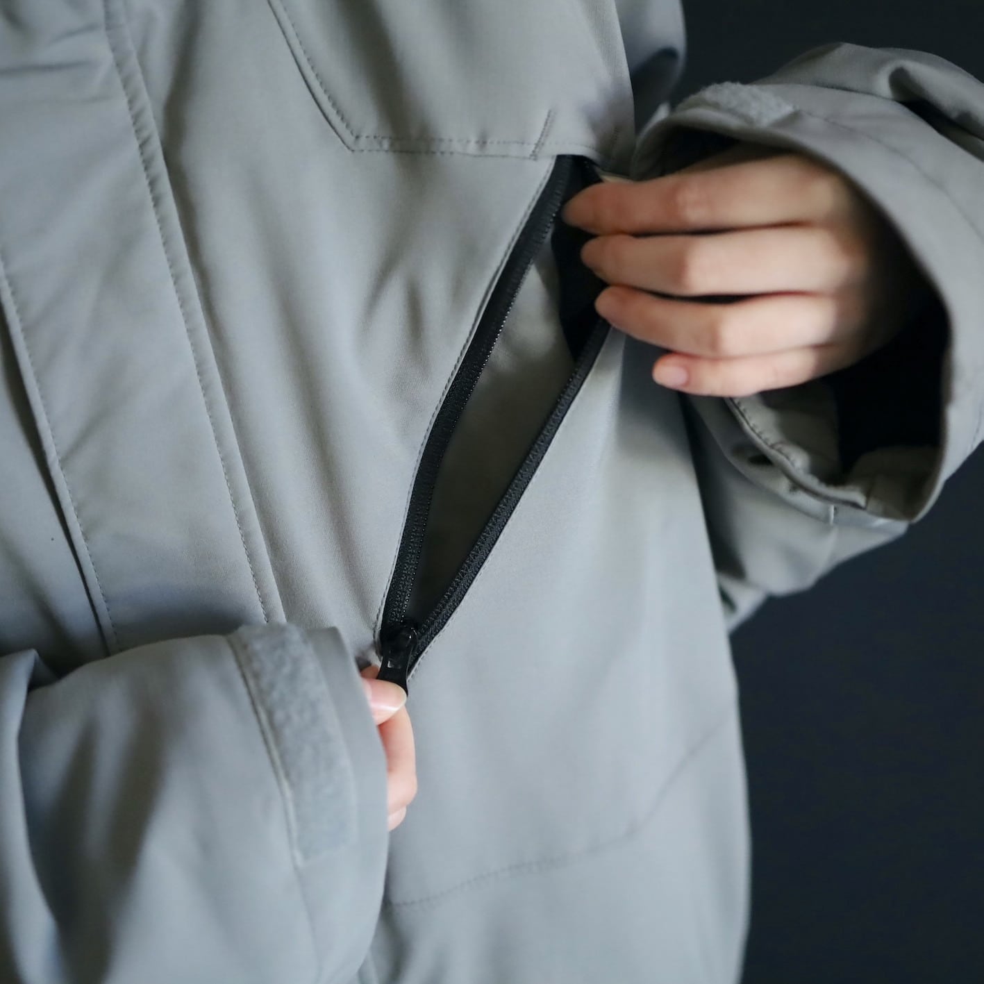 グレーボディをベースに,ブラックのジップと,アウトドアブランドとしては比較的シンプルなデザイン.