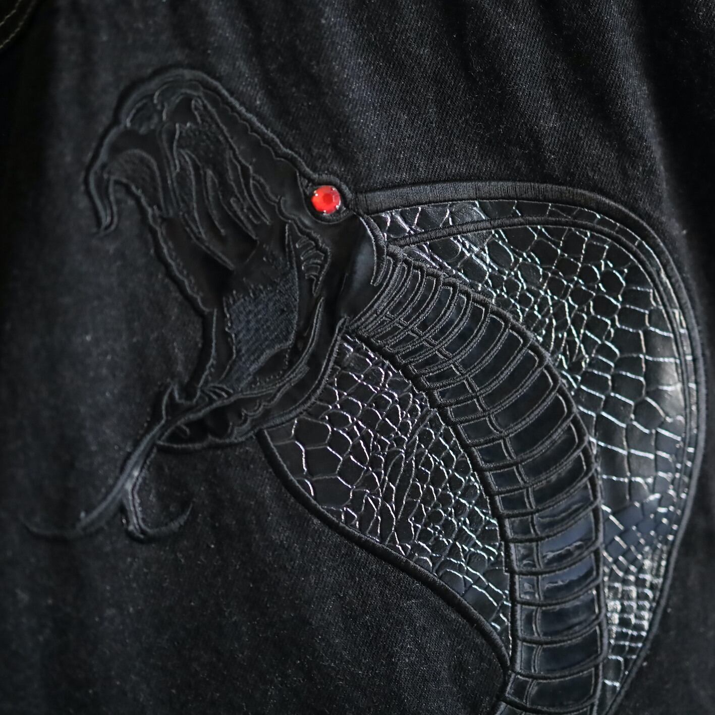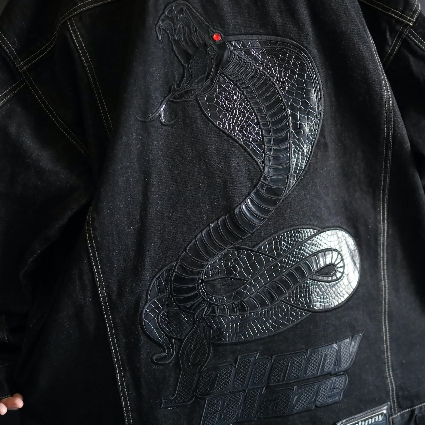 そして背面にはコブラのビニールパッチワークデザイン.
