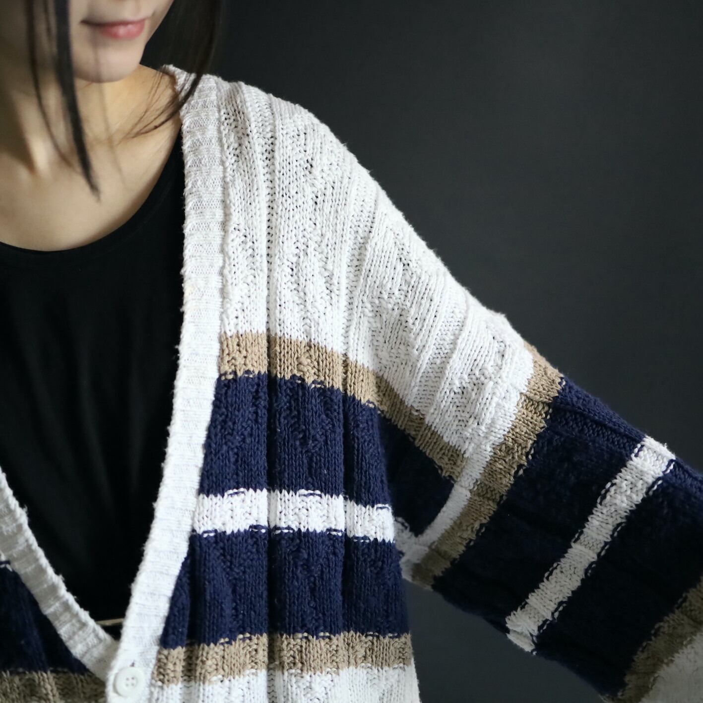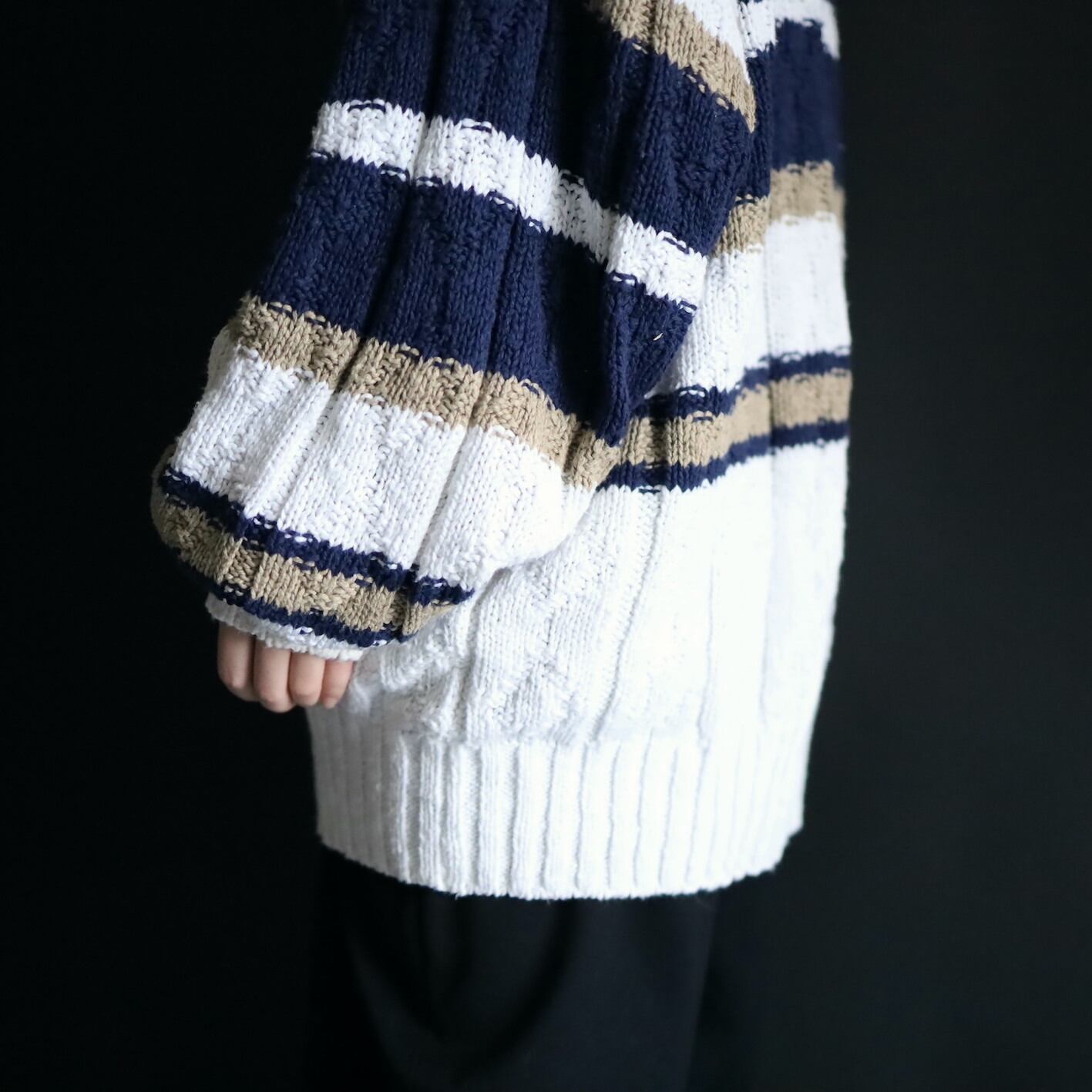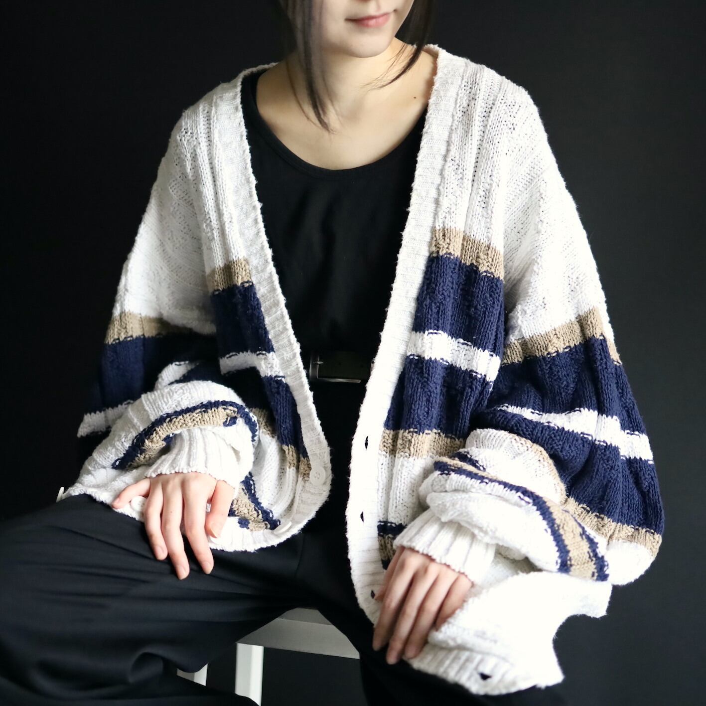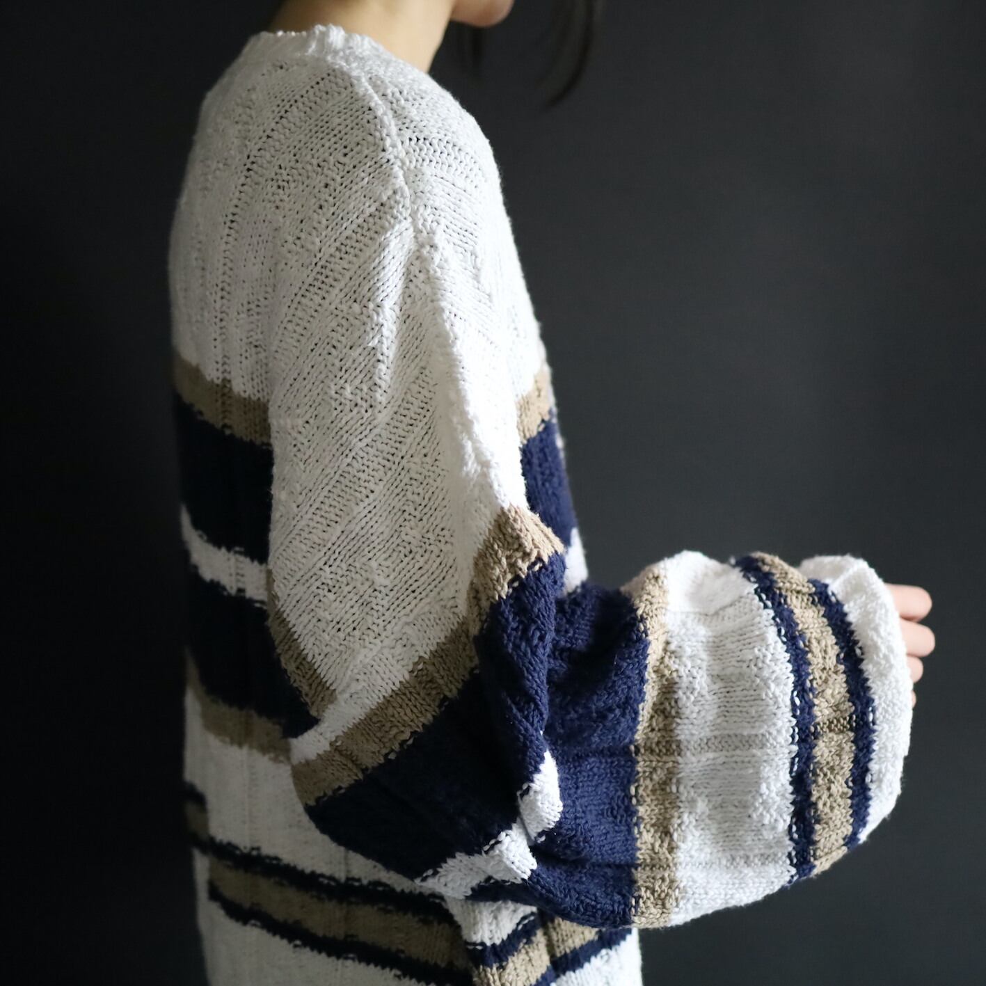 ホワイトをベースとしたローゲージニット.
