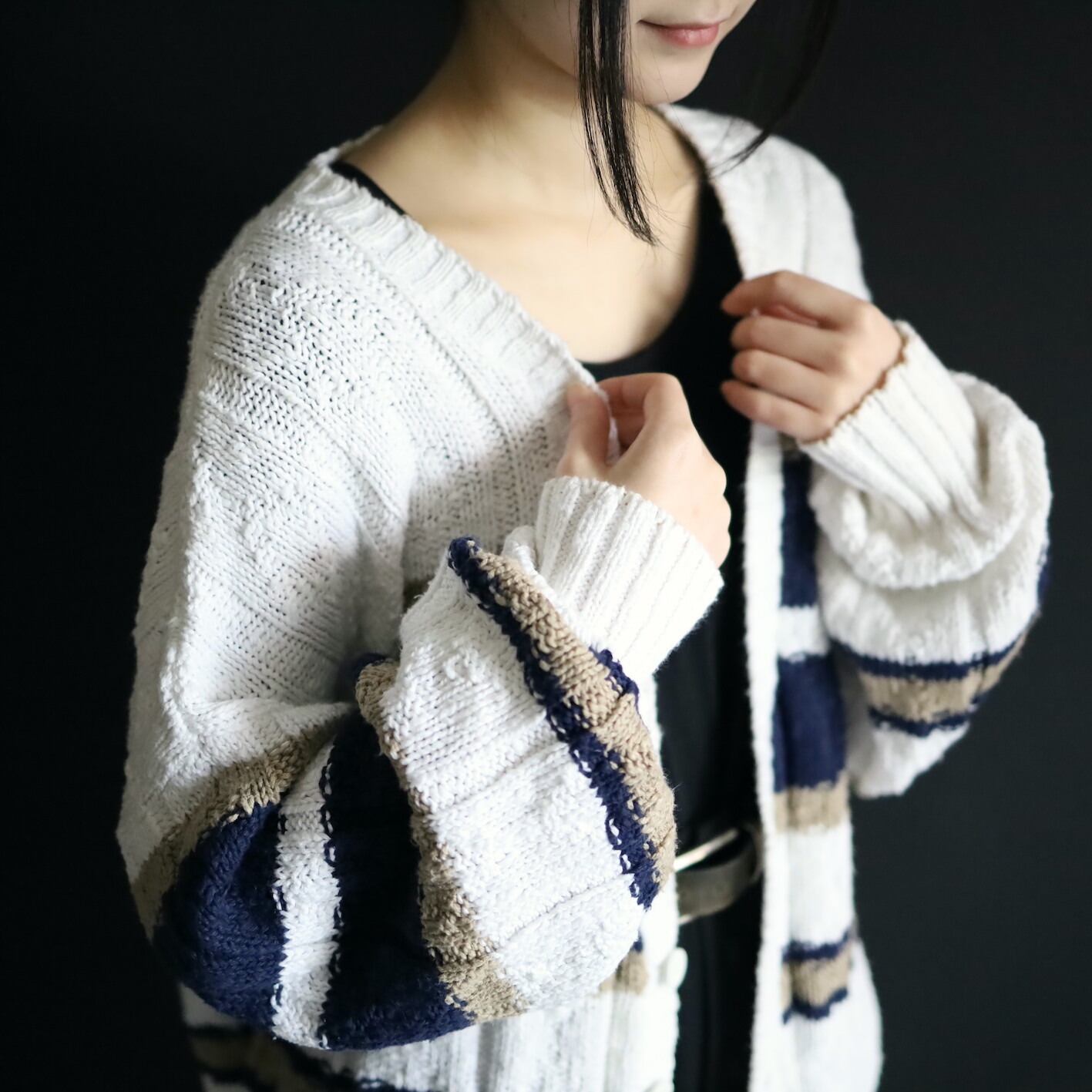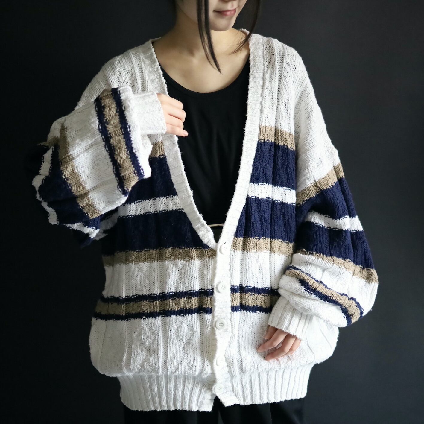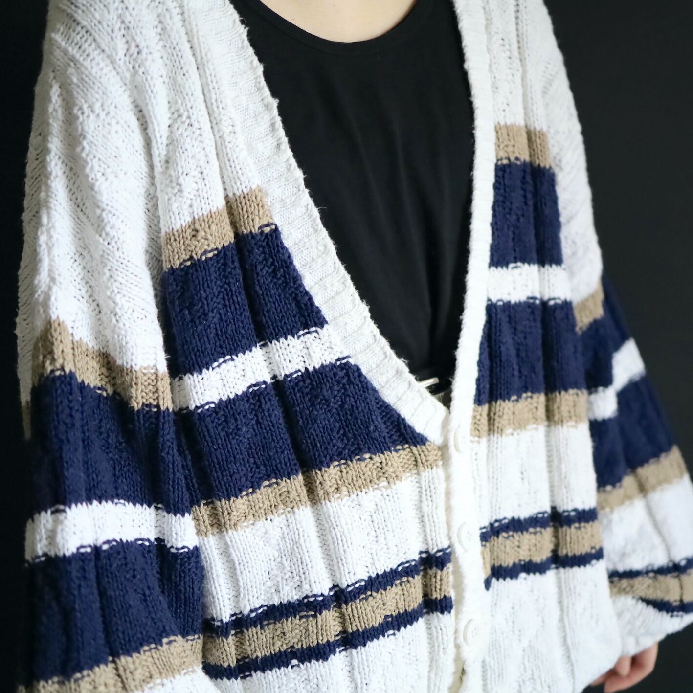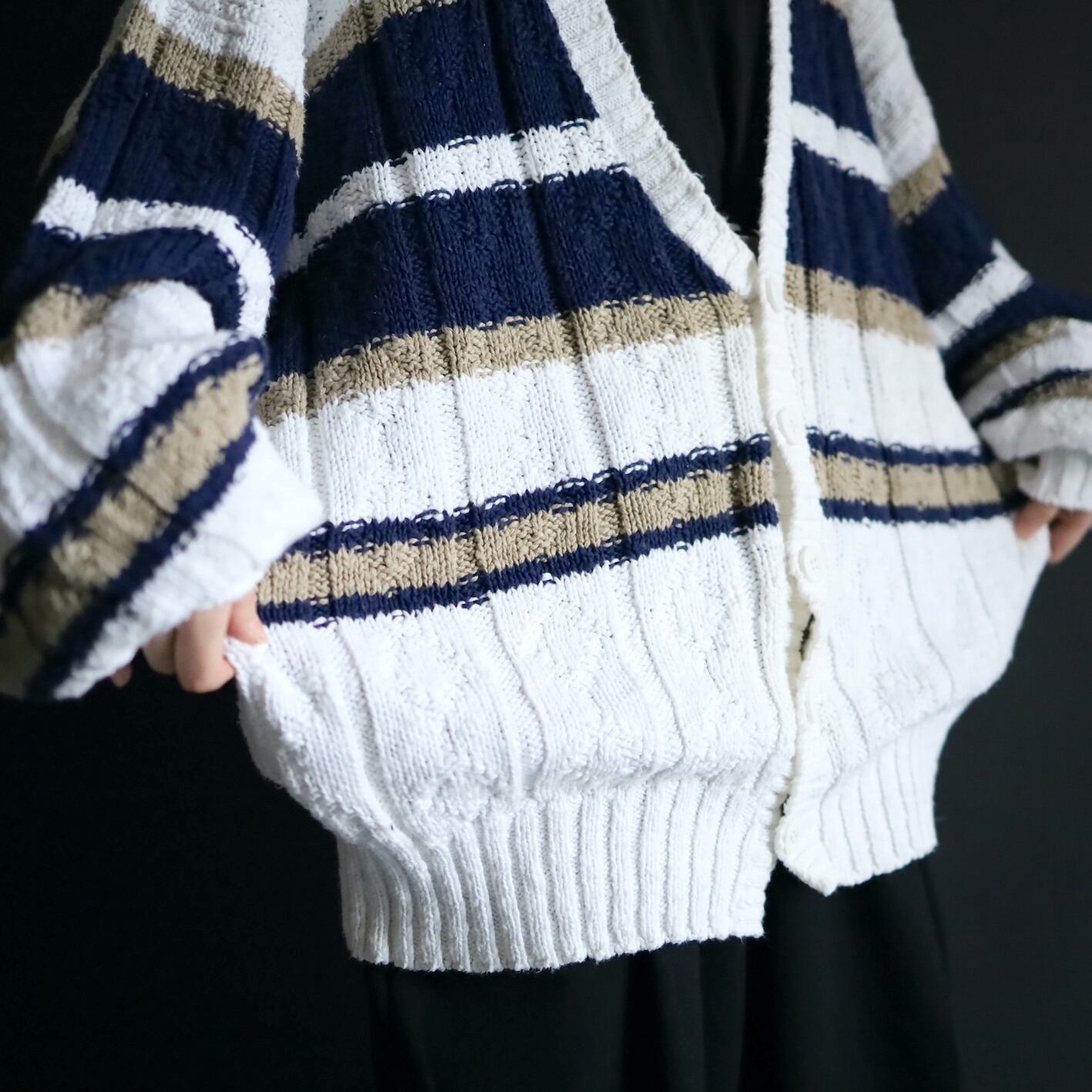 ホワイトをベースとしたローゲージニット.
