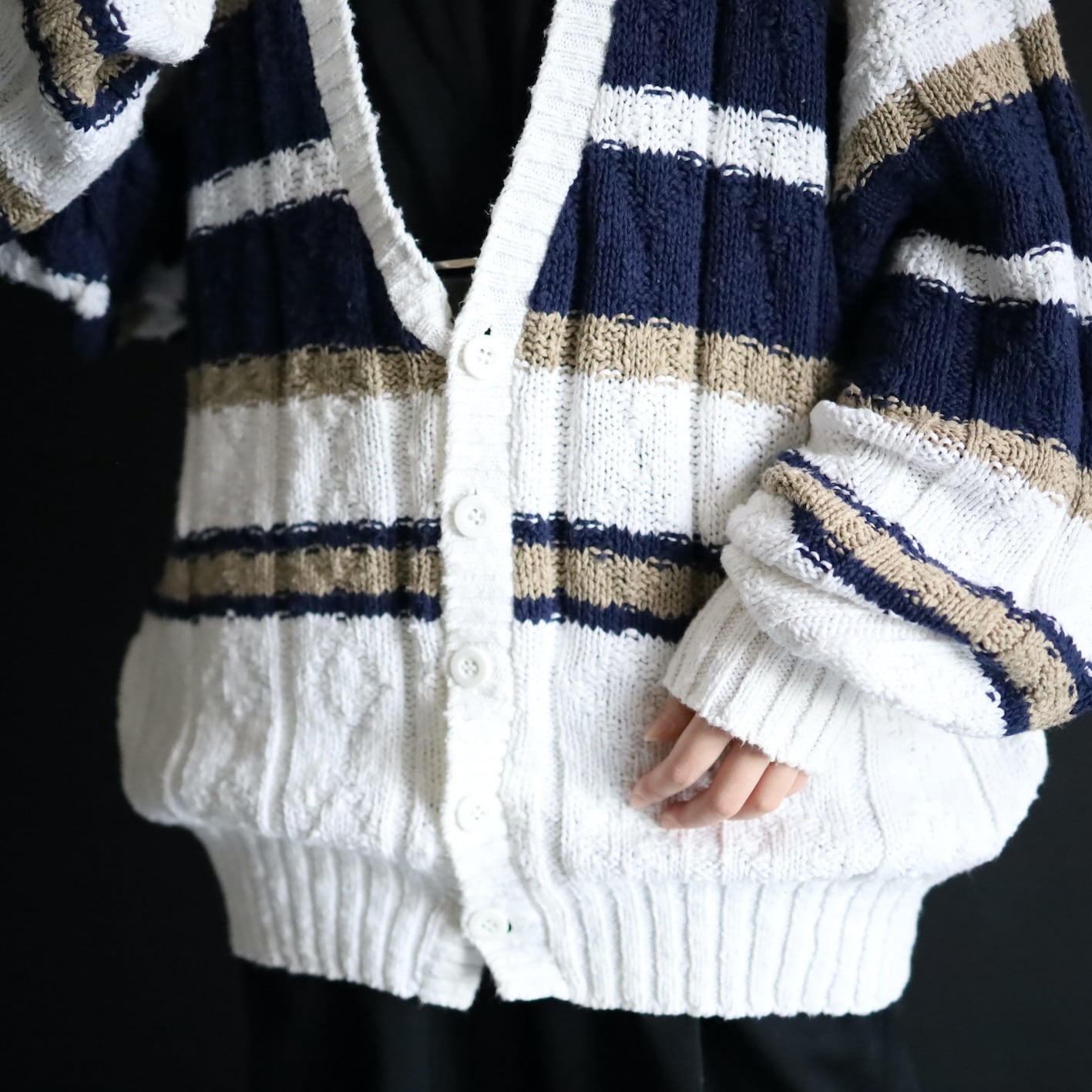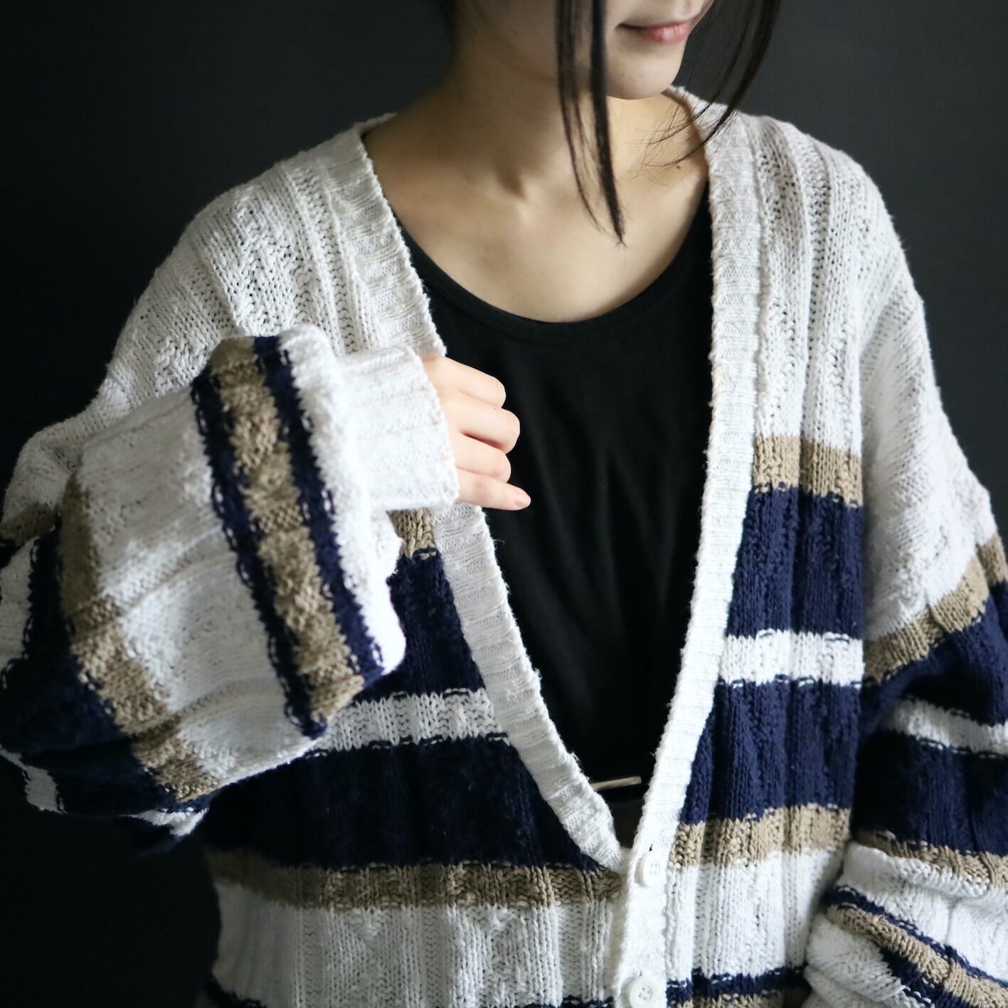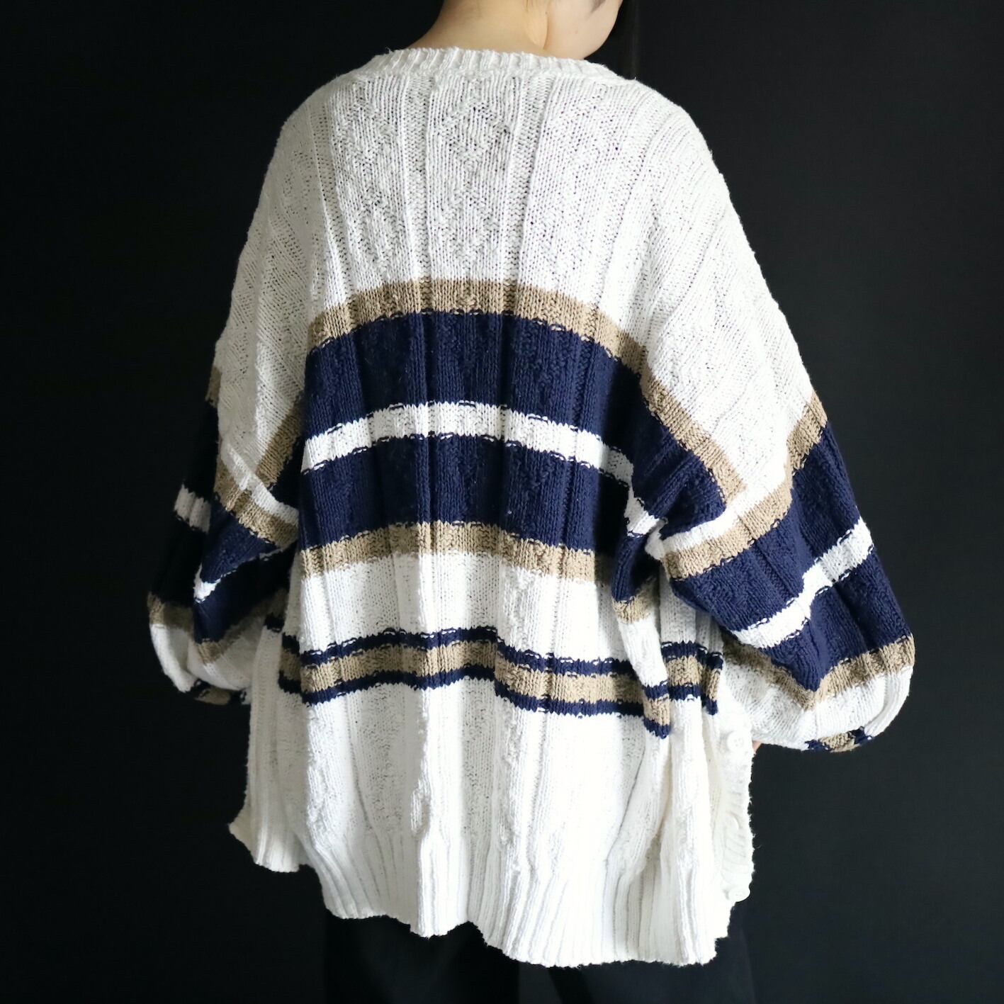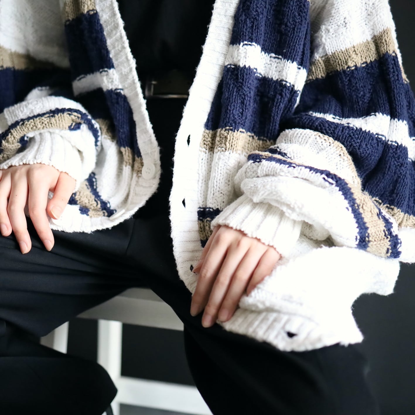 ホワイトをベースとしたローゲージニット.