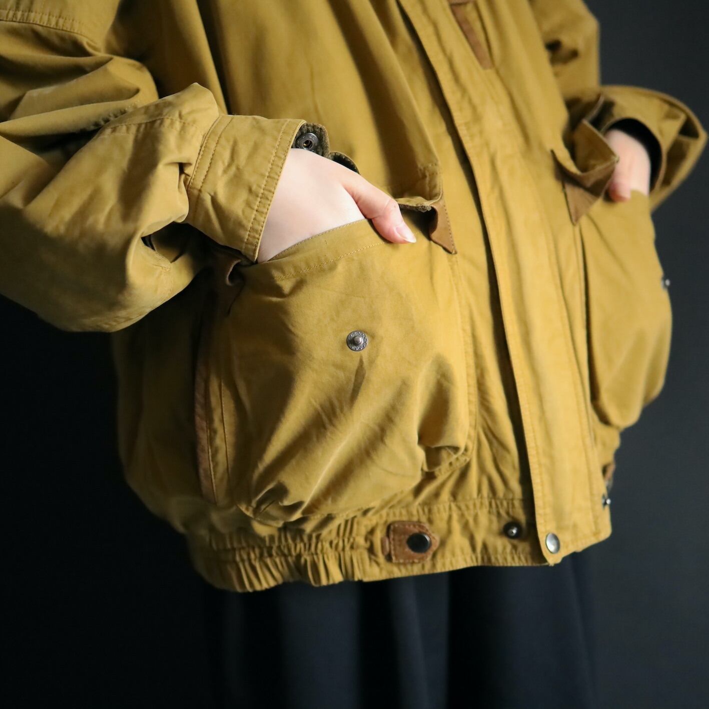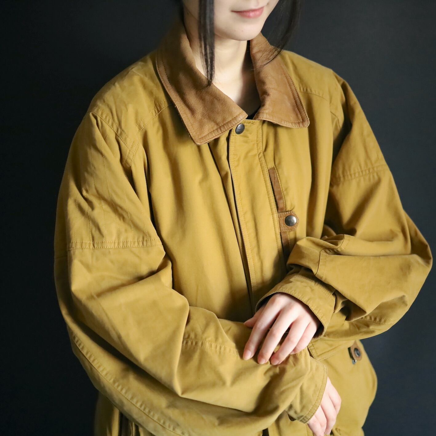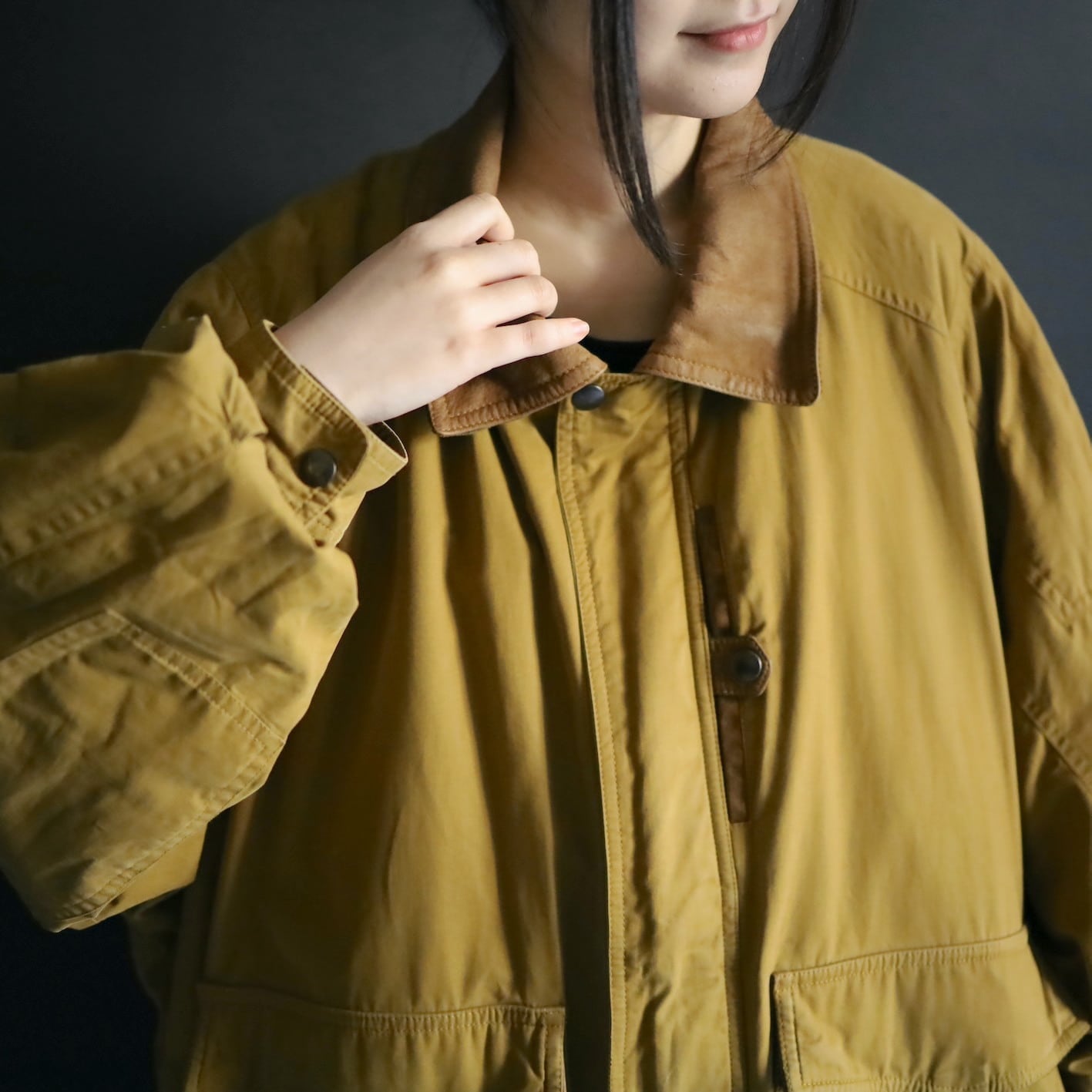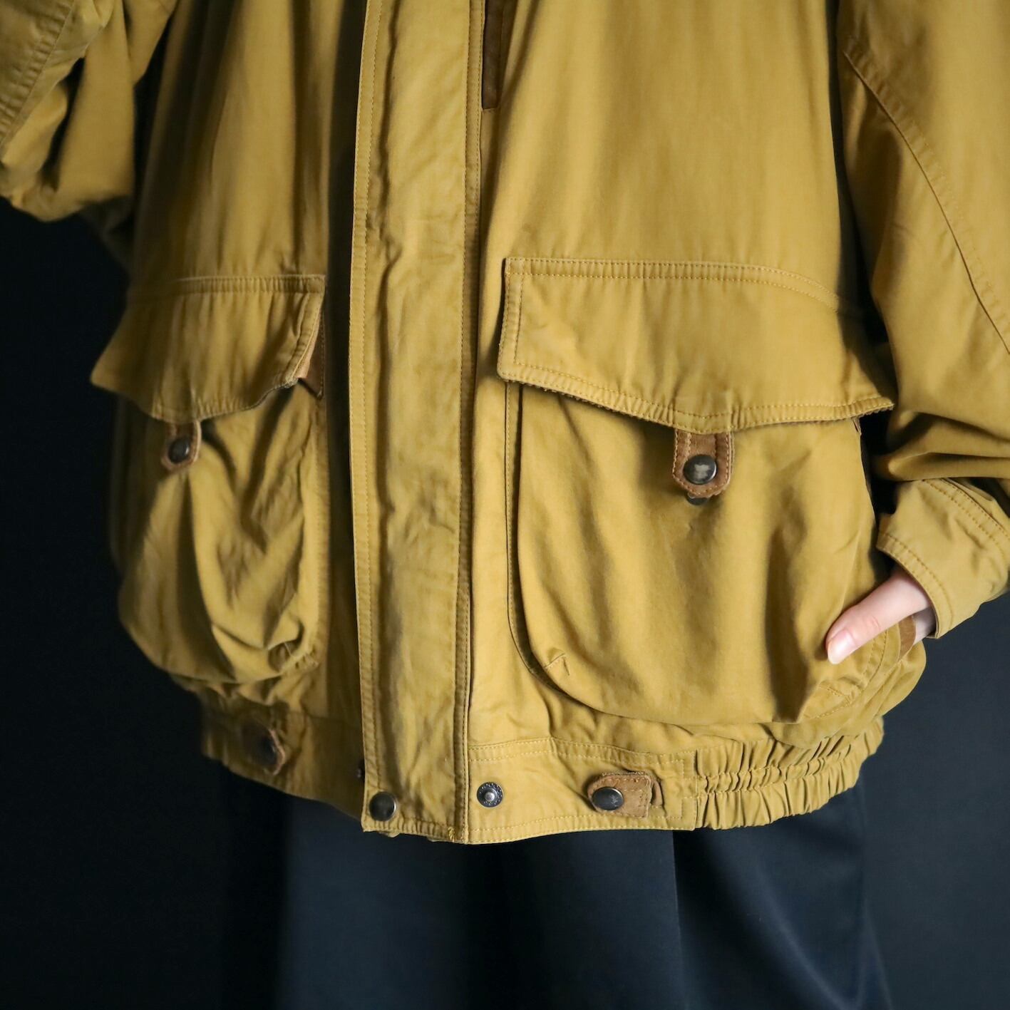 やや霞んだようなマスタードカラーをベースに,襟,ポケット,アジャスターがレザー切替.