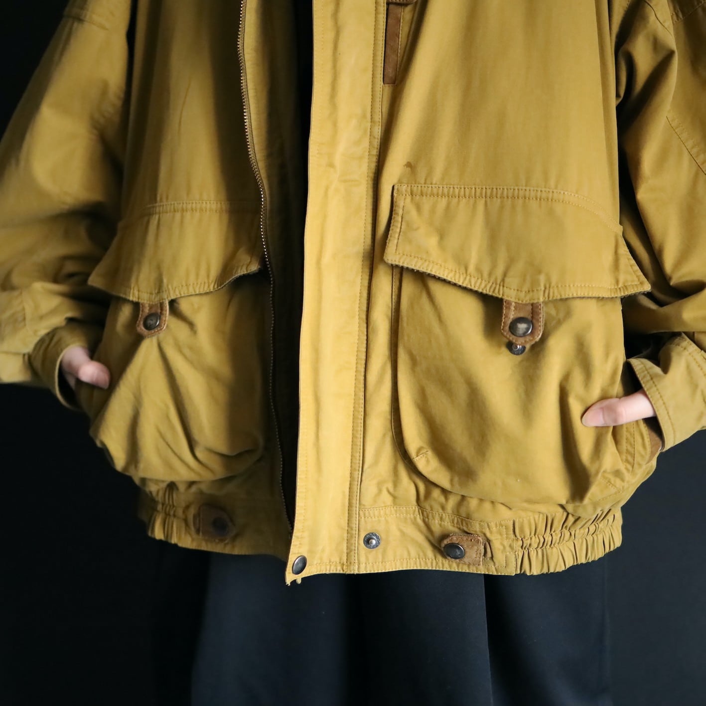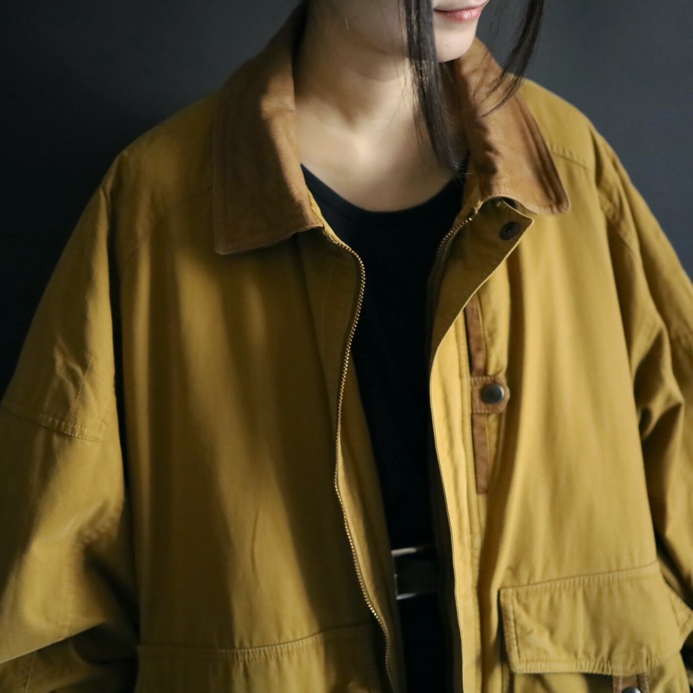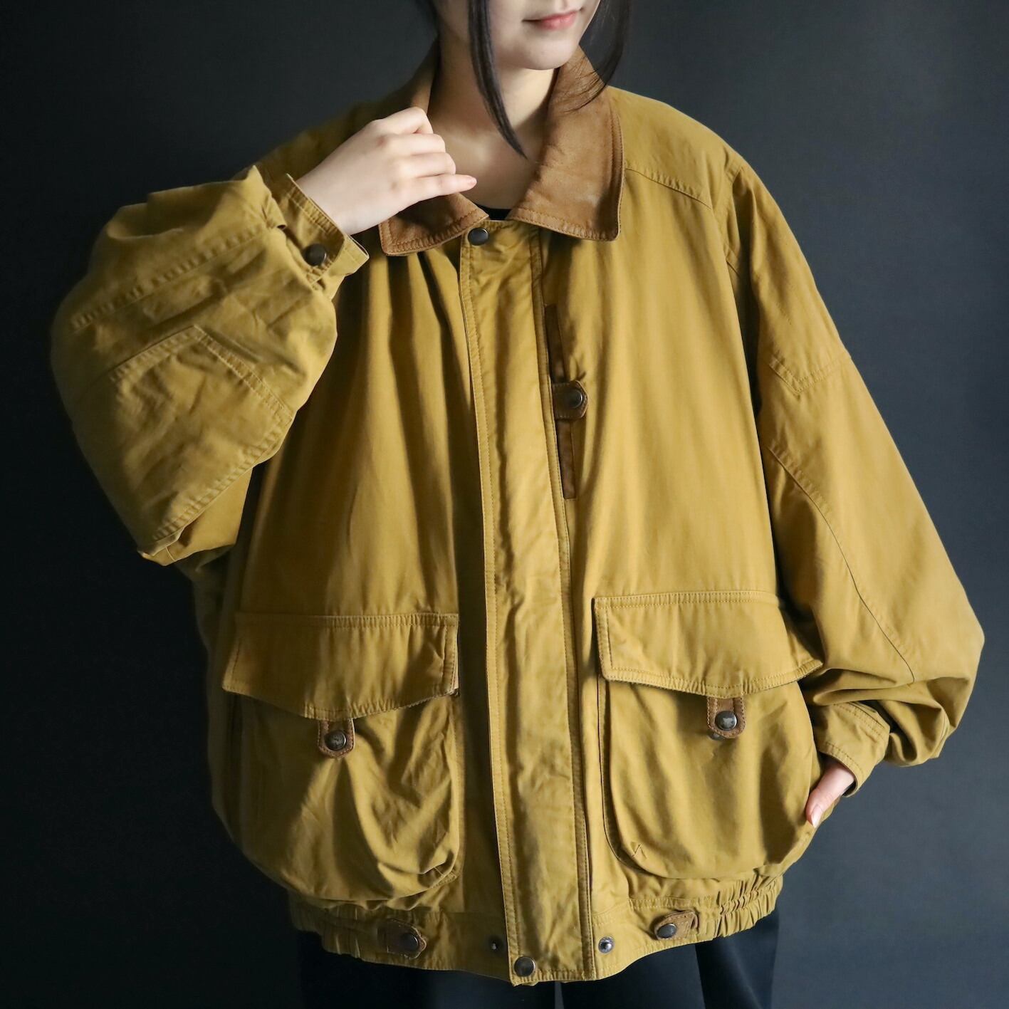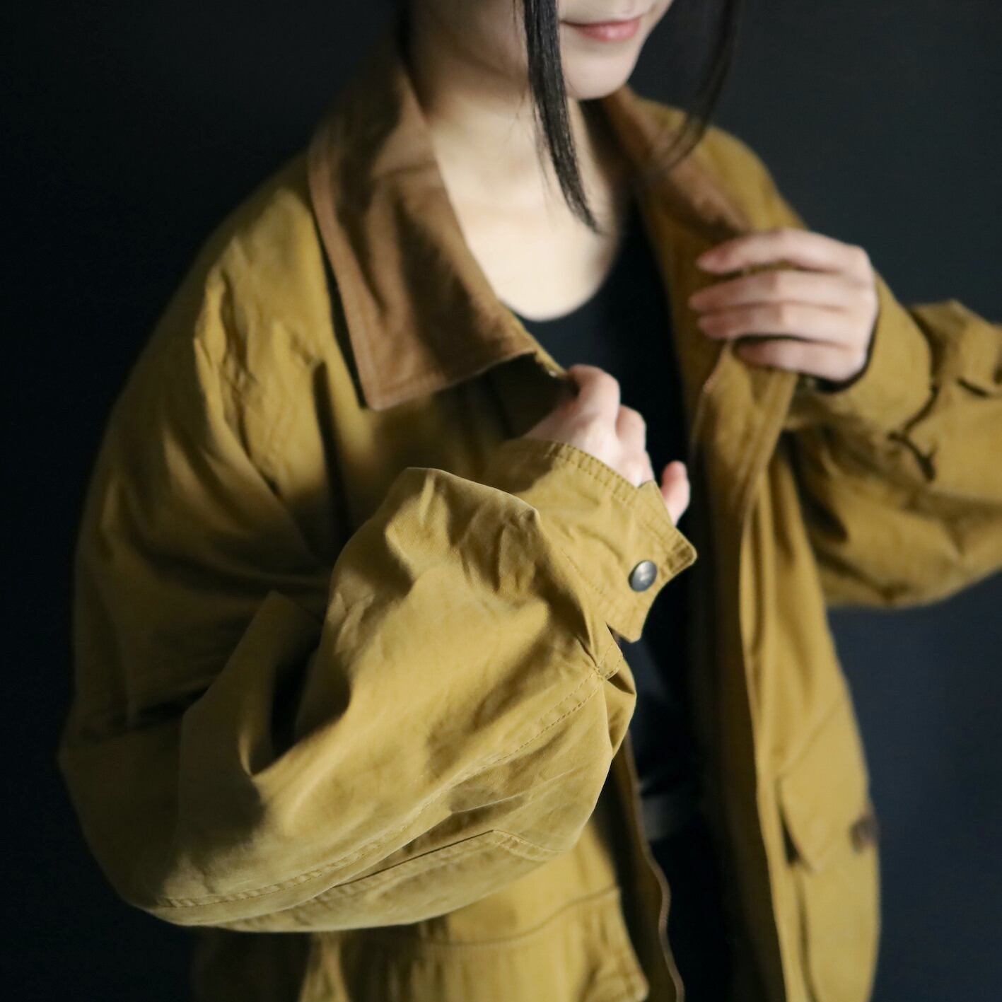 やや霞んだようなマスタードカラーをベースに,襟,ポケット,アジャスターがレザー切替.