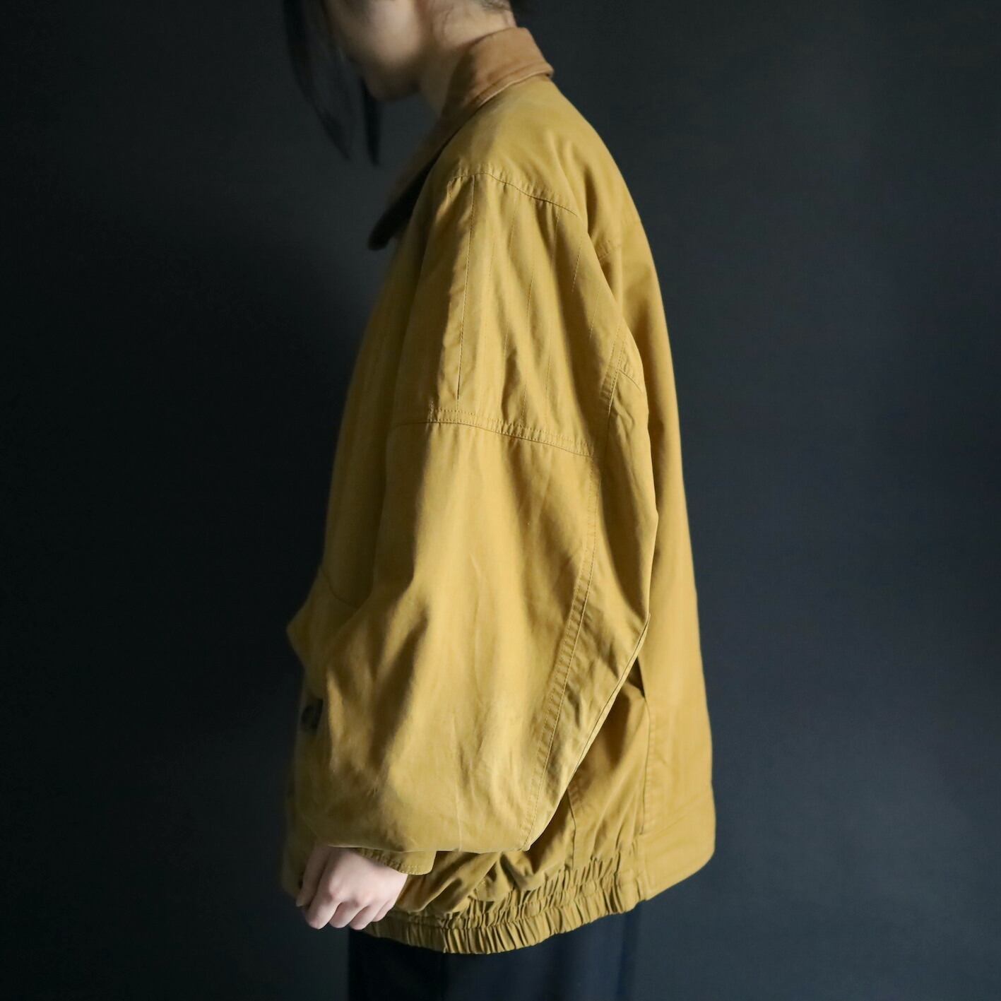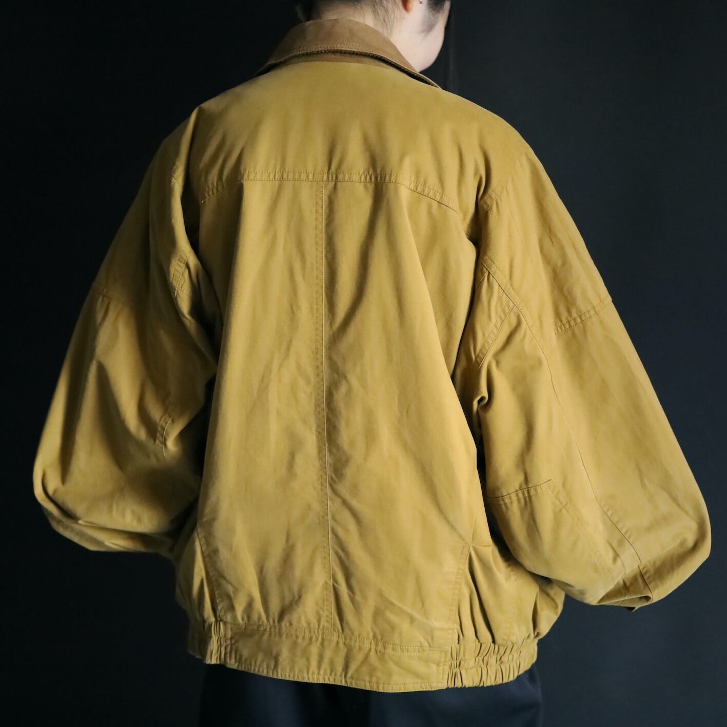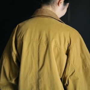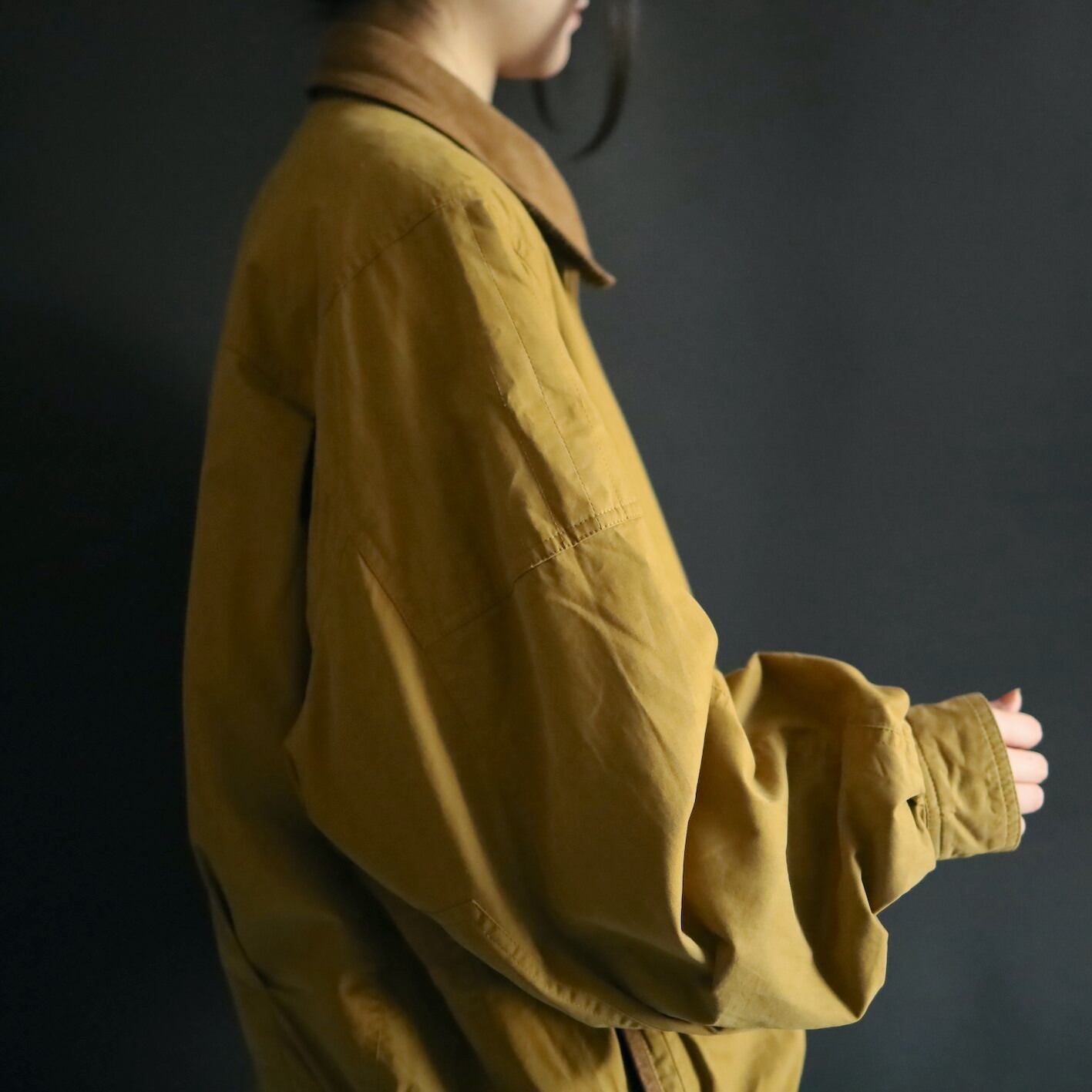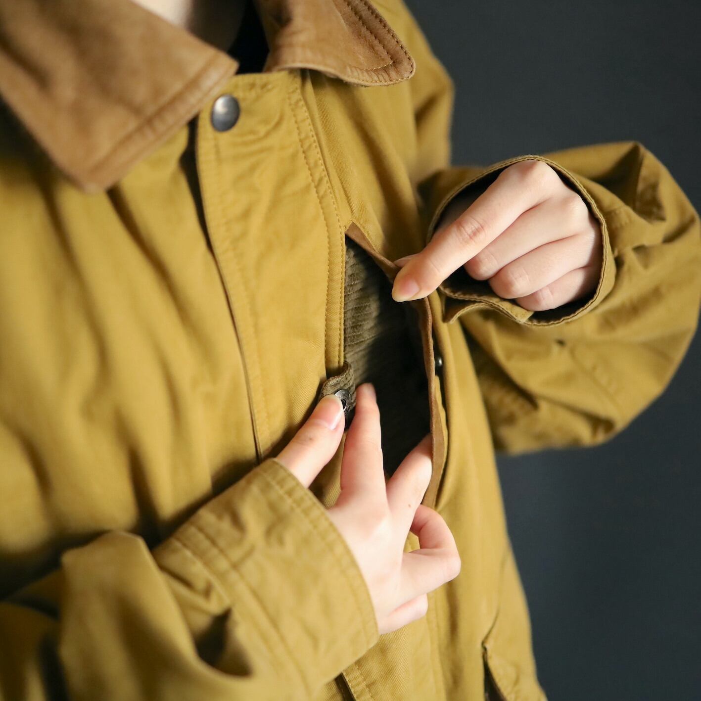やや霞んだようなマスタードカラーをベースに,襟,ポケット,アジャスターがレザー切替.