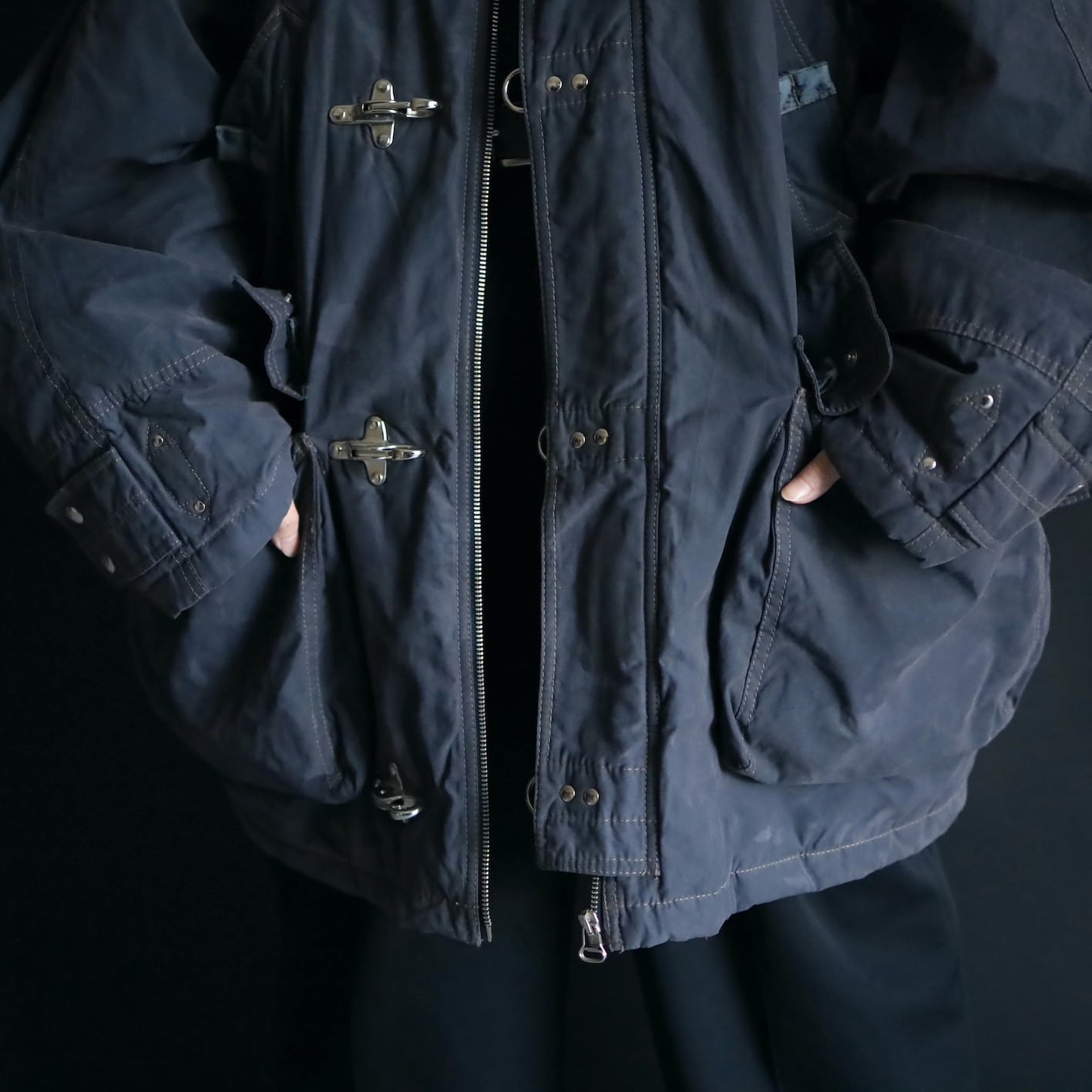 バックルボタンを活かして閉じて着ても,開けてラフに羽織っても決まります.