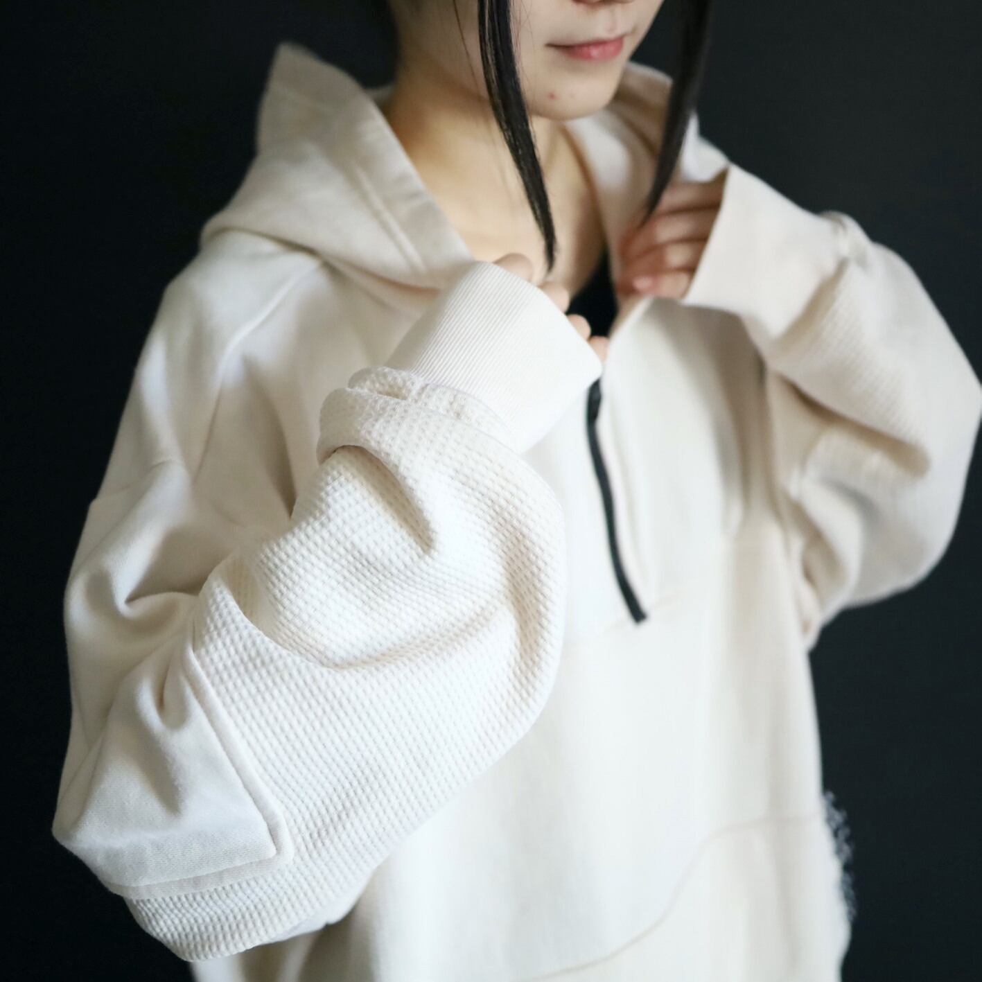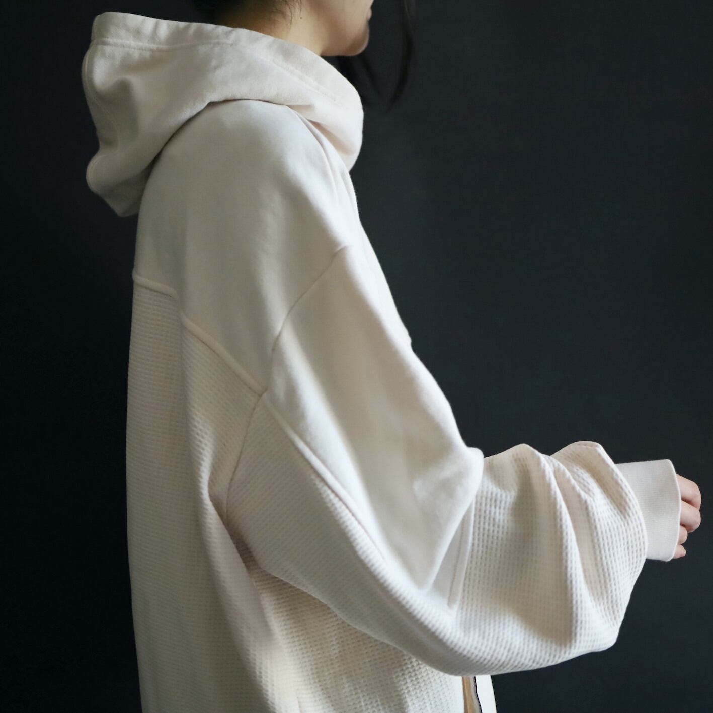 ライトオンスのスウェット生地とワッフル生地切替.