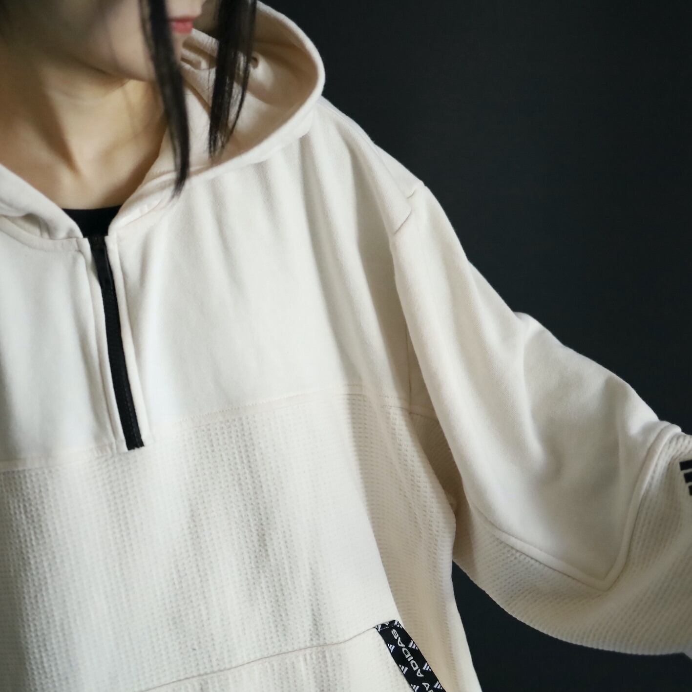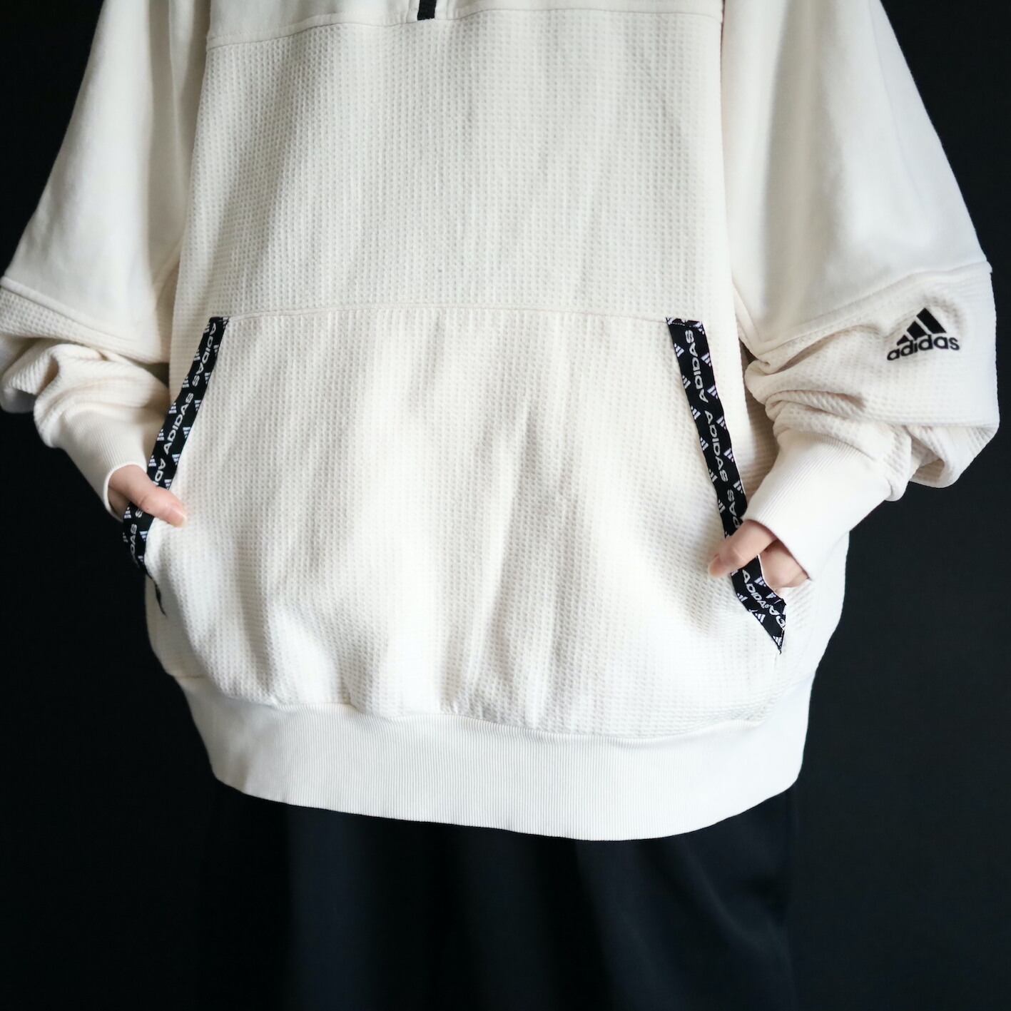 adidasより,生地切替のフーディプルオーバー.