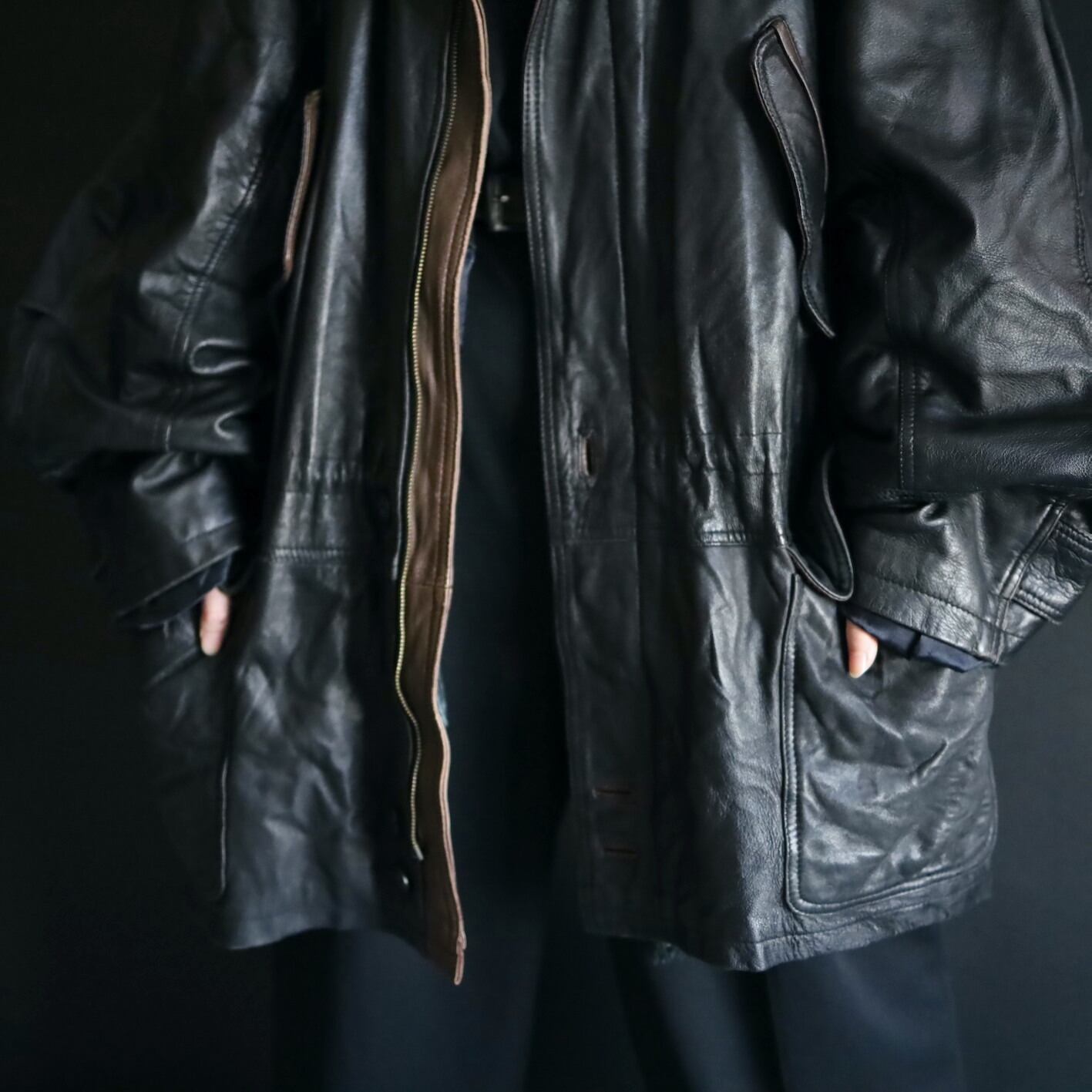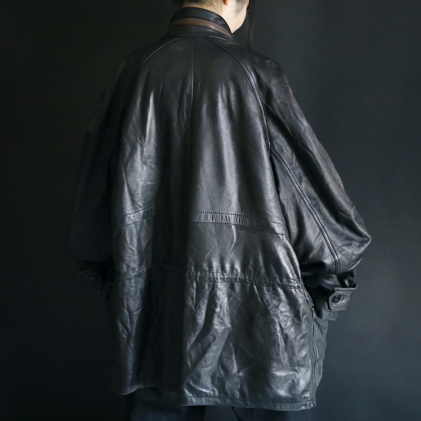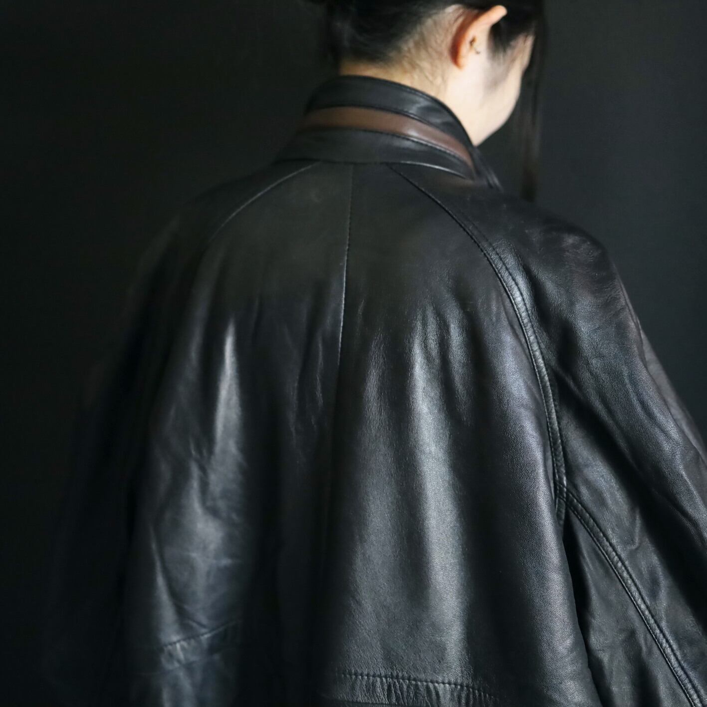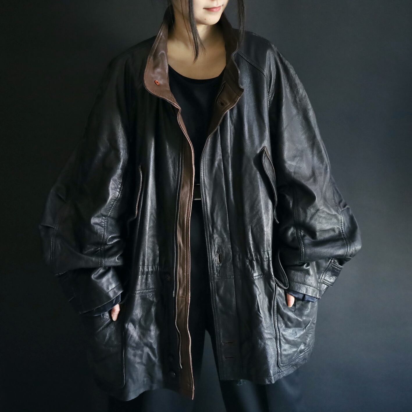 ミドル丈のレザーハイネックブルゾンの入荷です.