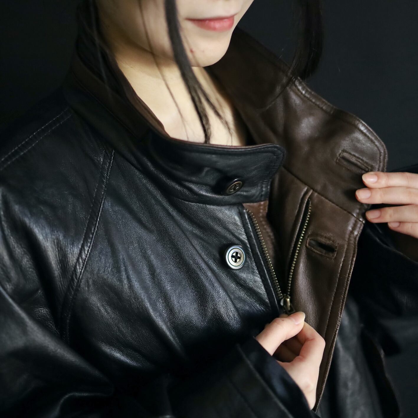 レザーの中でも人気の高いバイカラー切替.