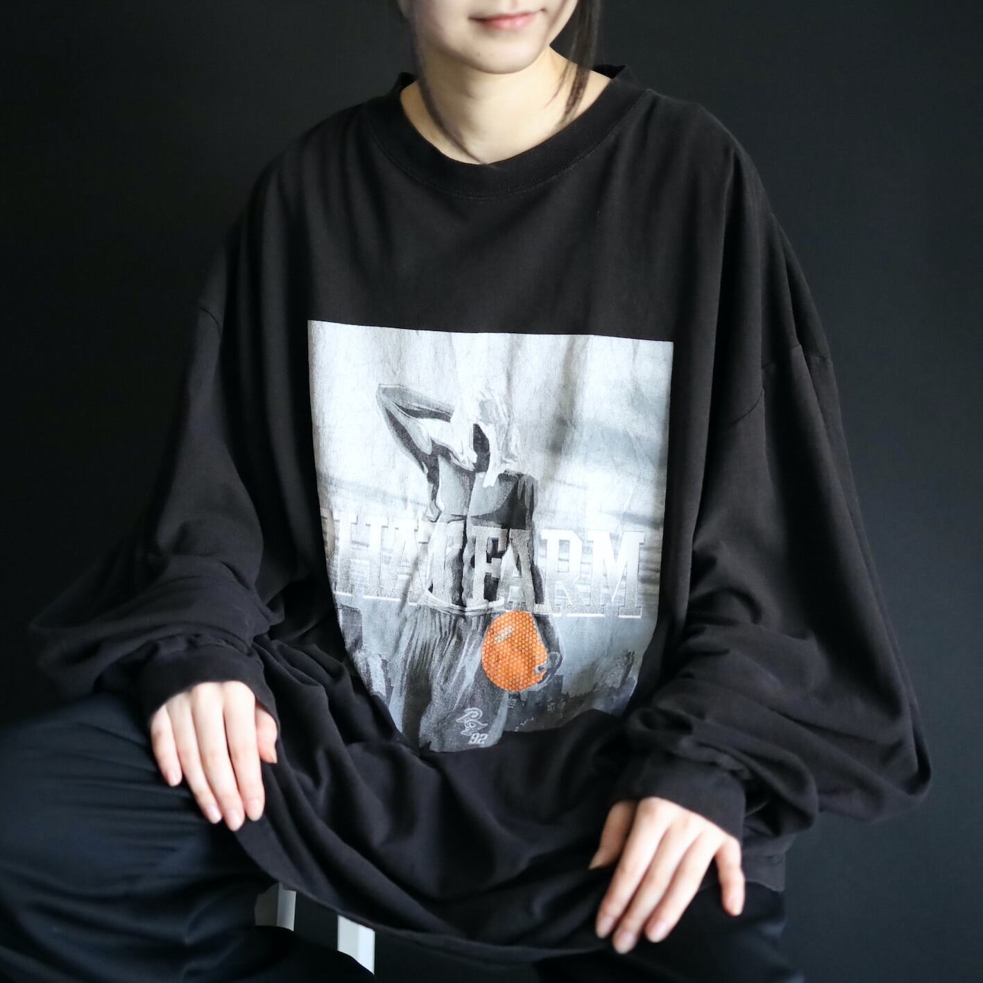 フロントにバスケットボールを持った,上裸でロン毛のイカしたにーちゃんのプリント.