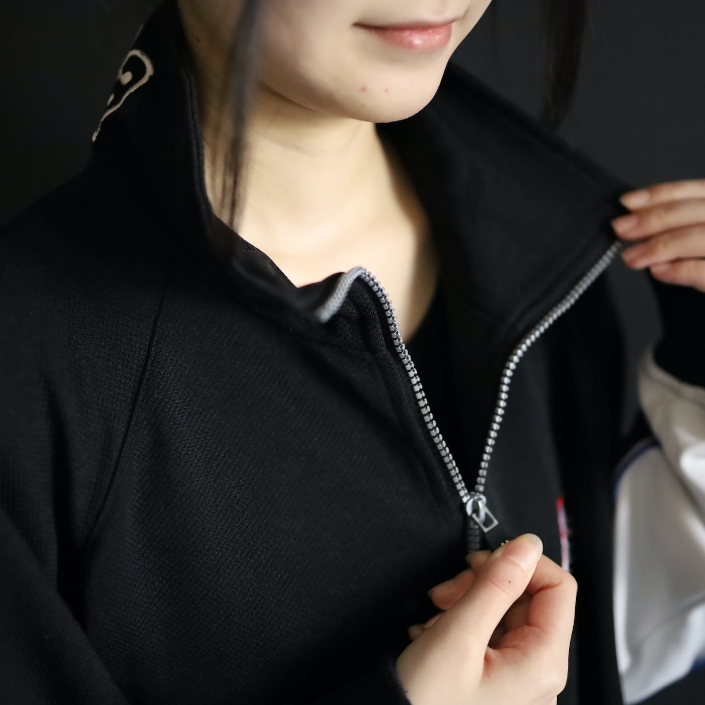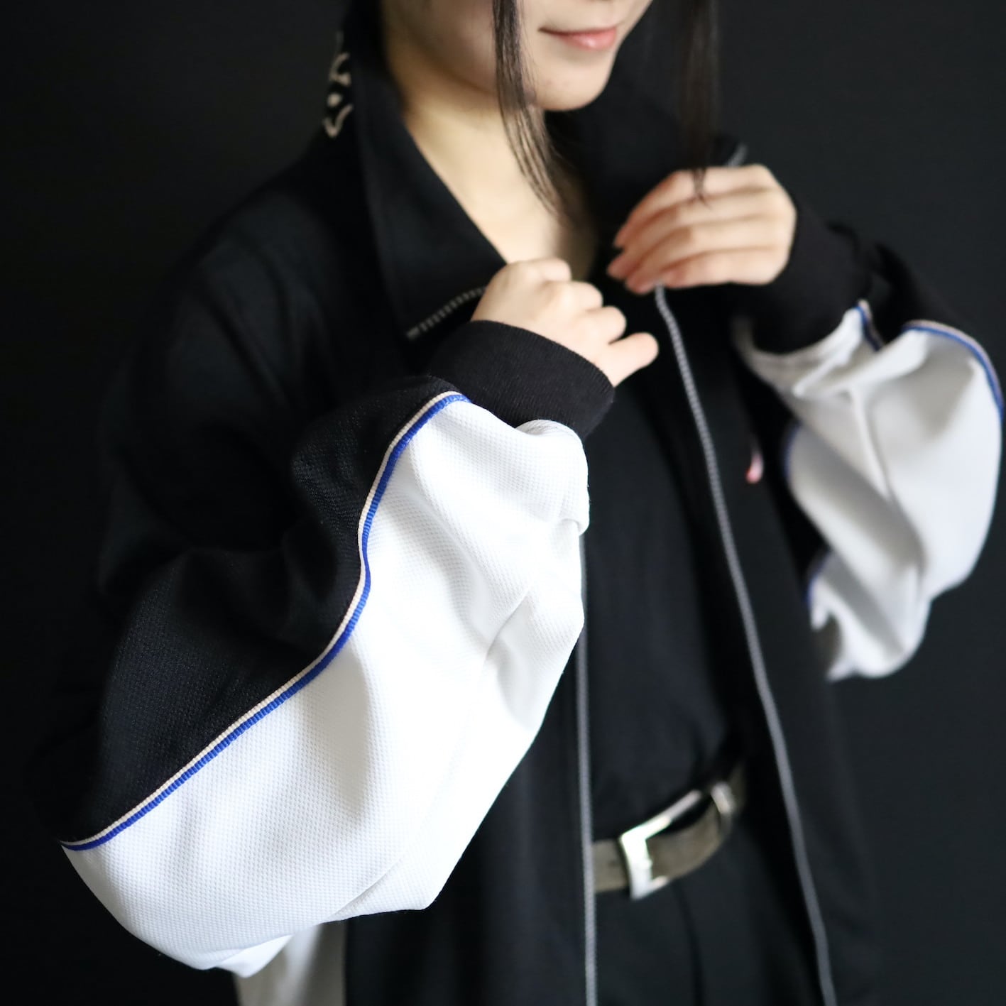 トラックジャケットの中ではゆったりめで,ほどよいボリューム感が袖,ボディに現れます.