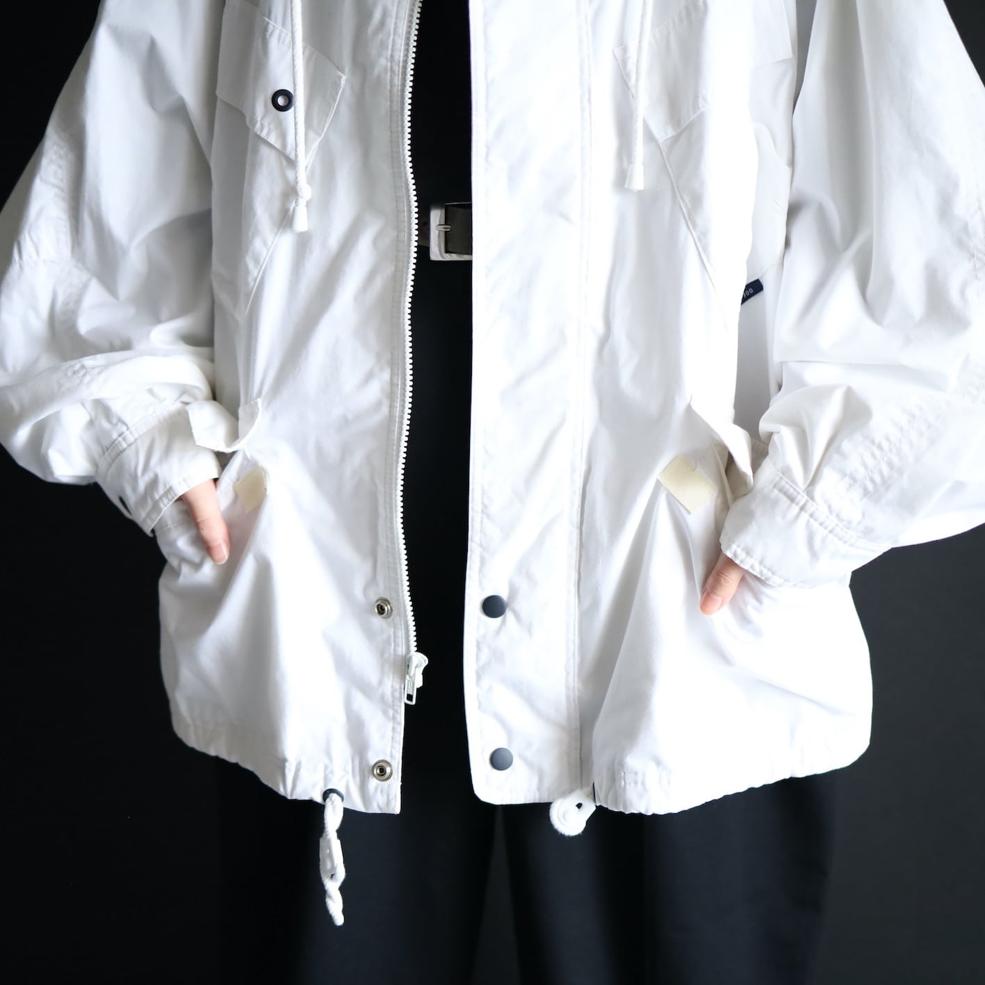ネック内部にフード収納型のマウンテンパーカータイプ.