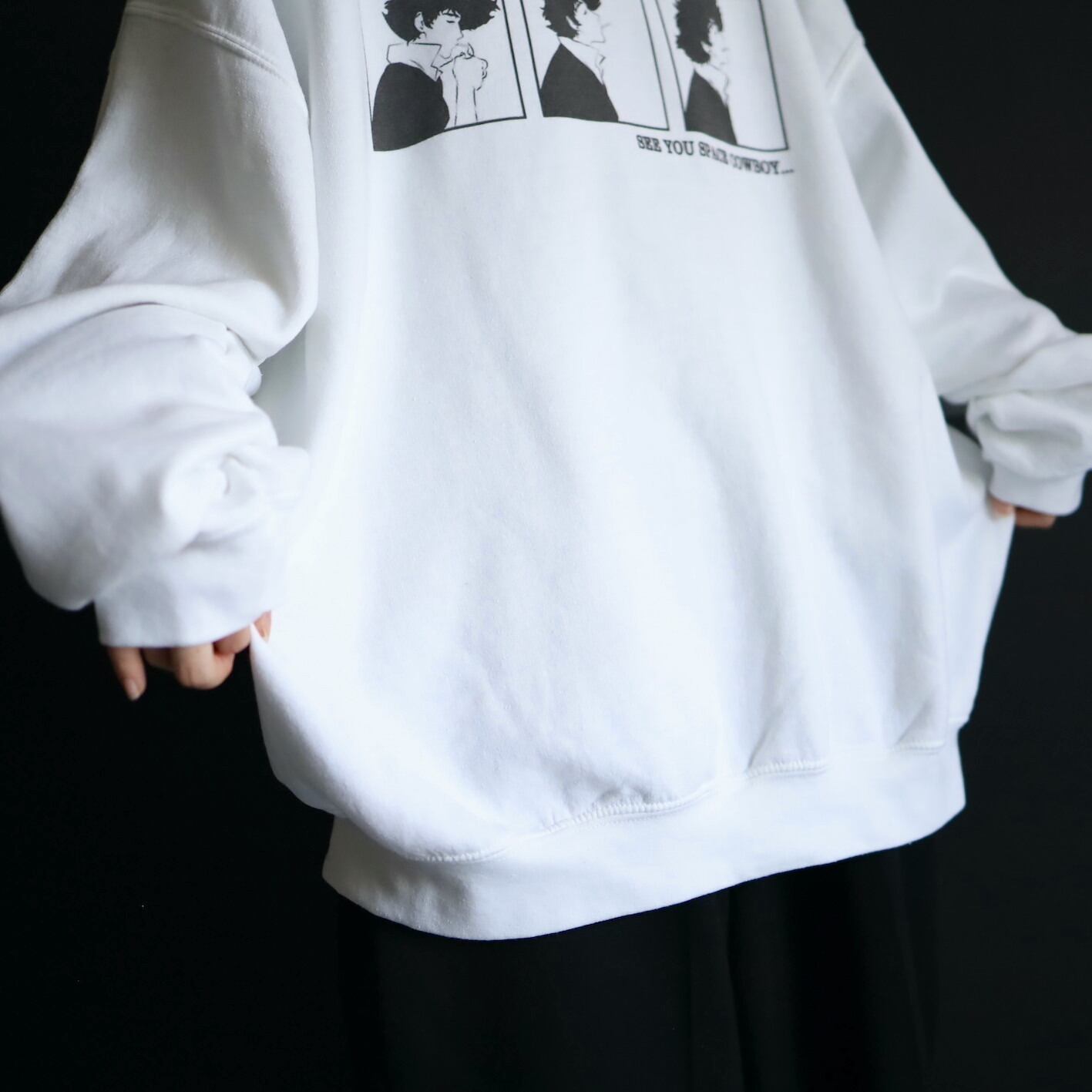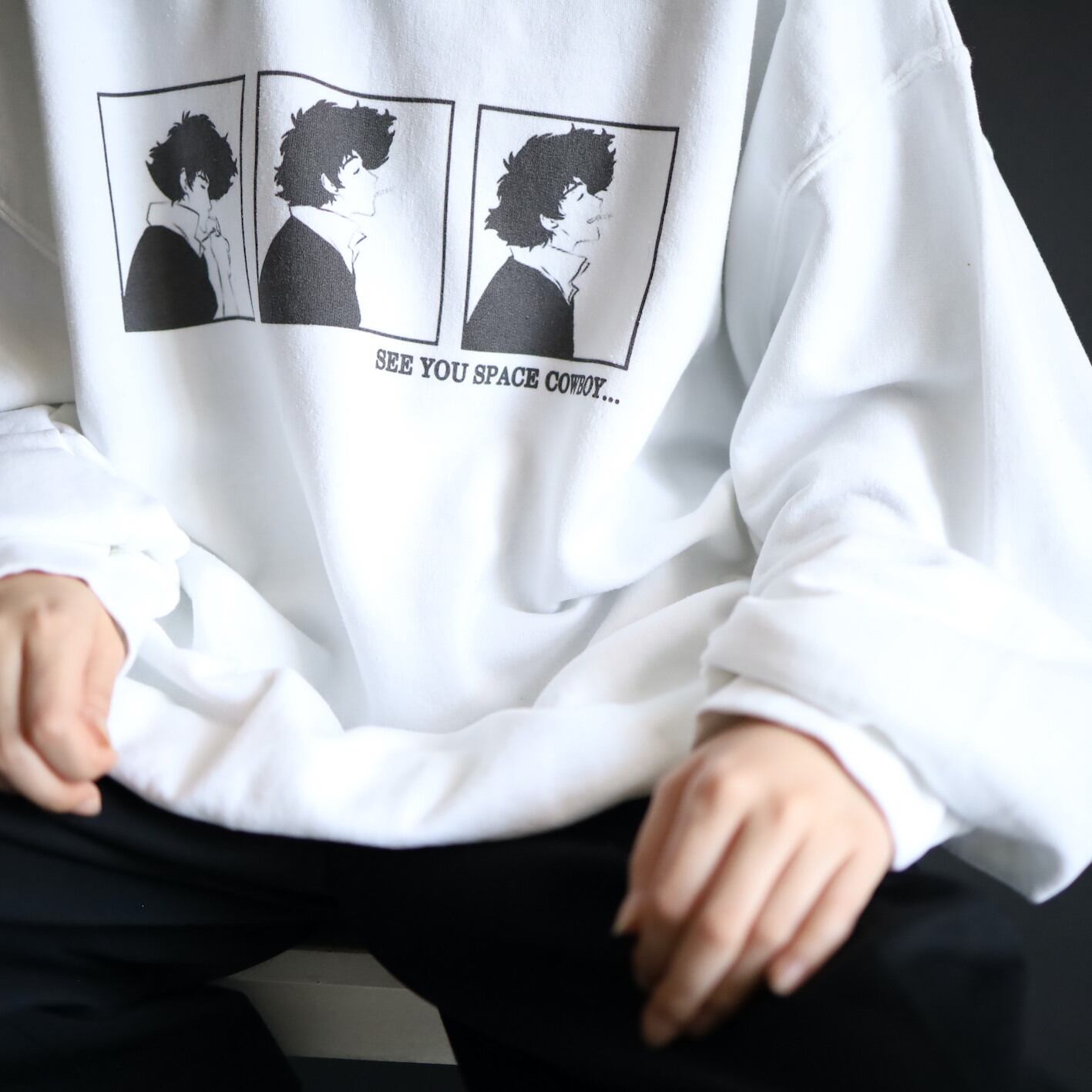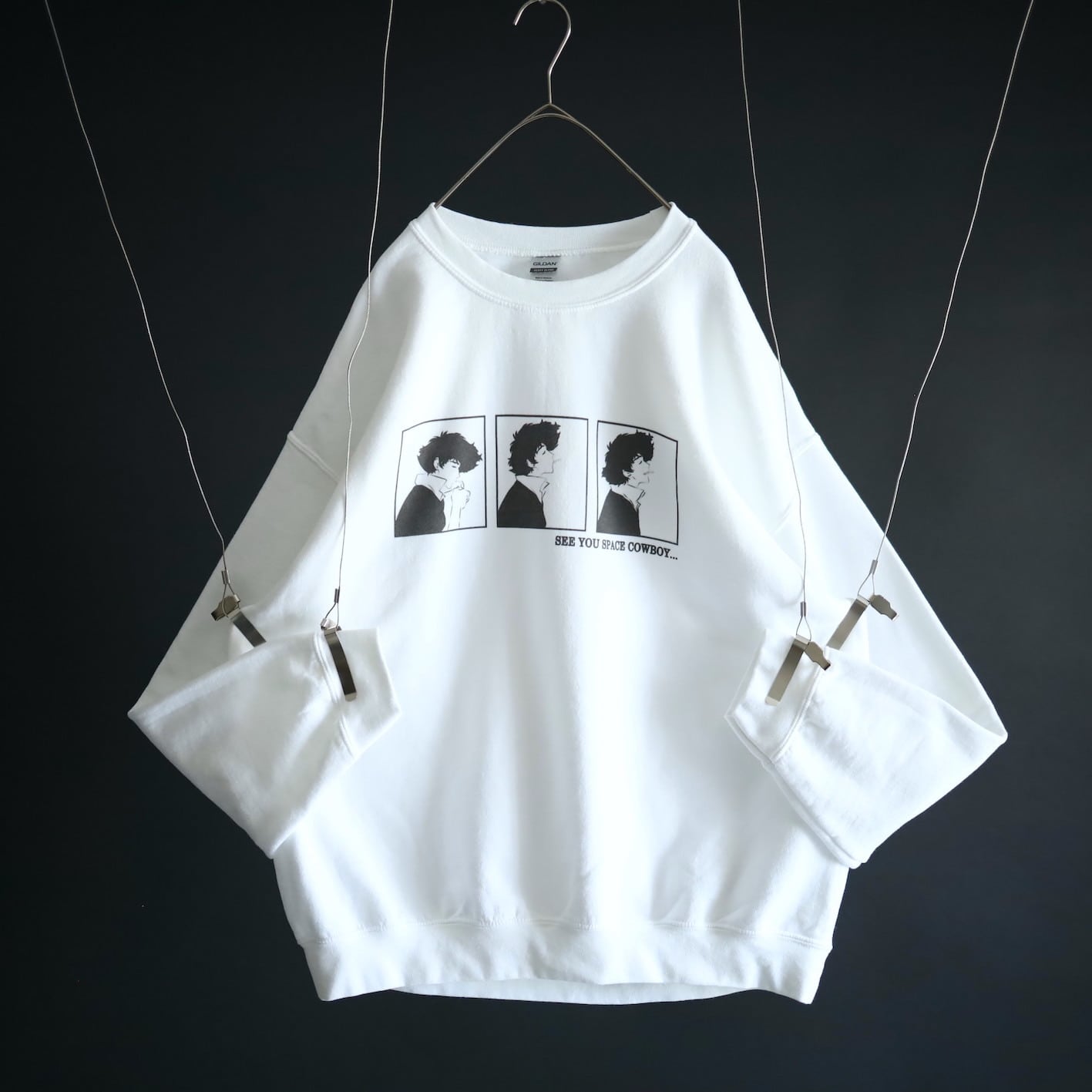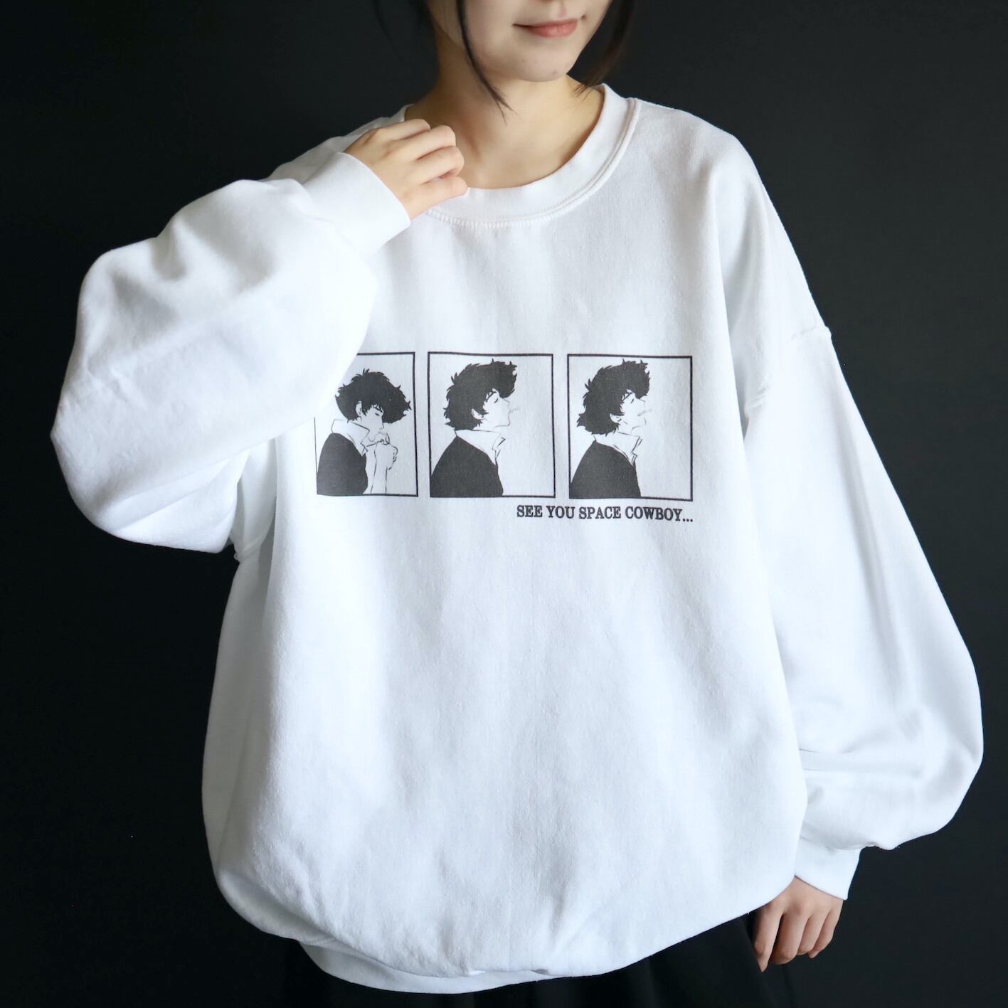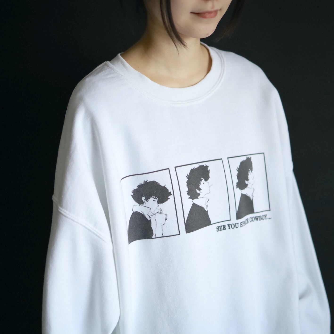 綺麗なホワイトスウェットボディに,主人公のスパイクの3コマプリントデザイン.