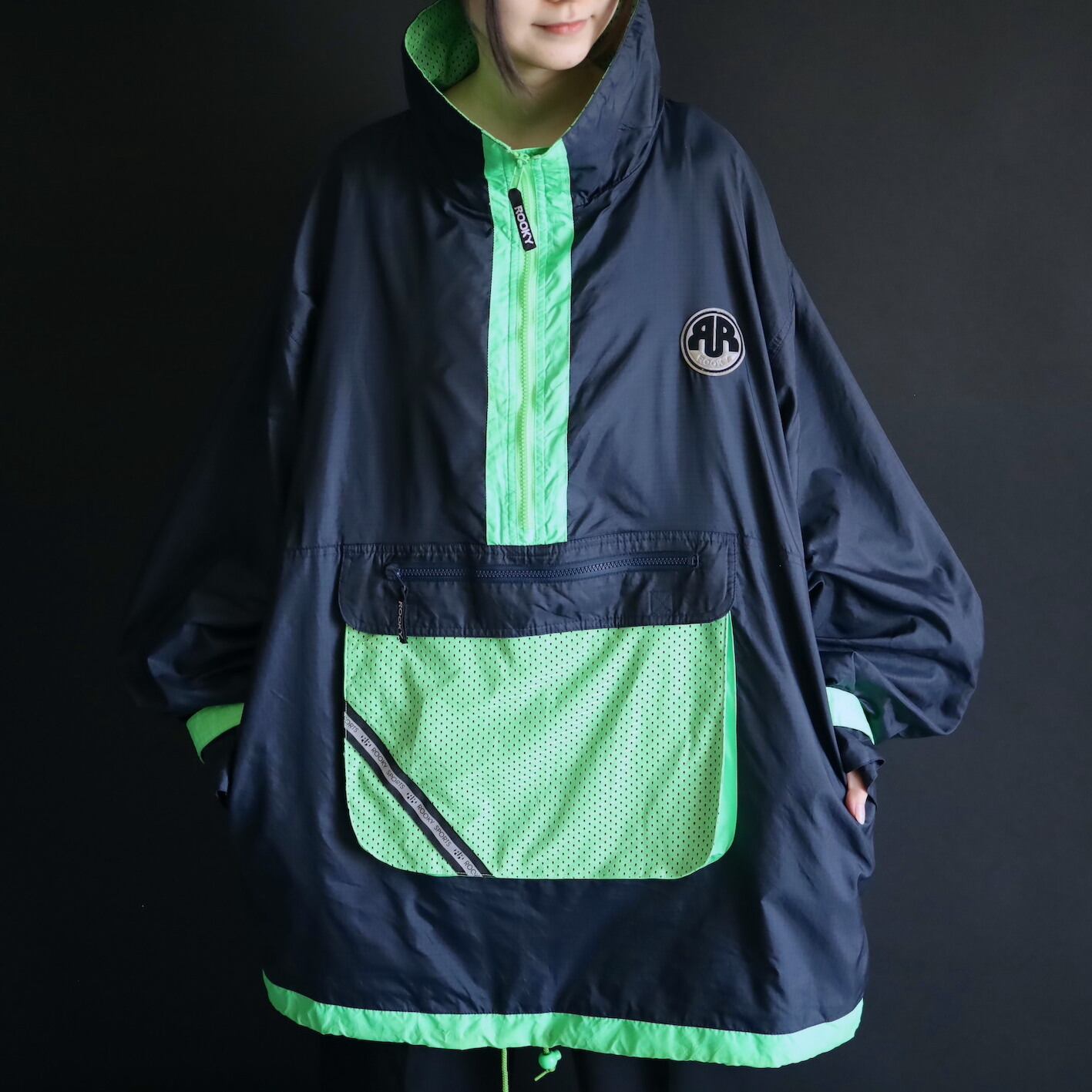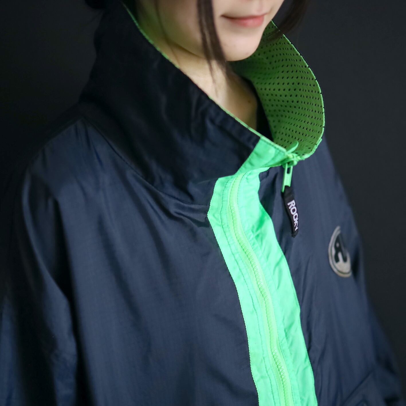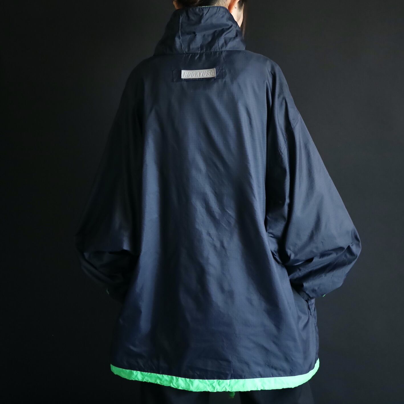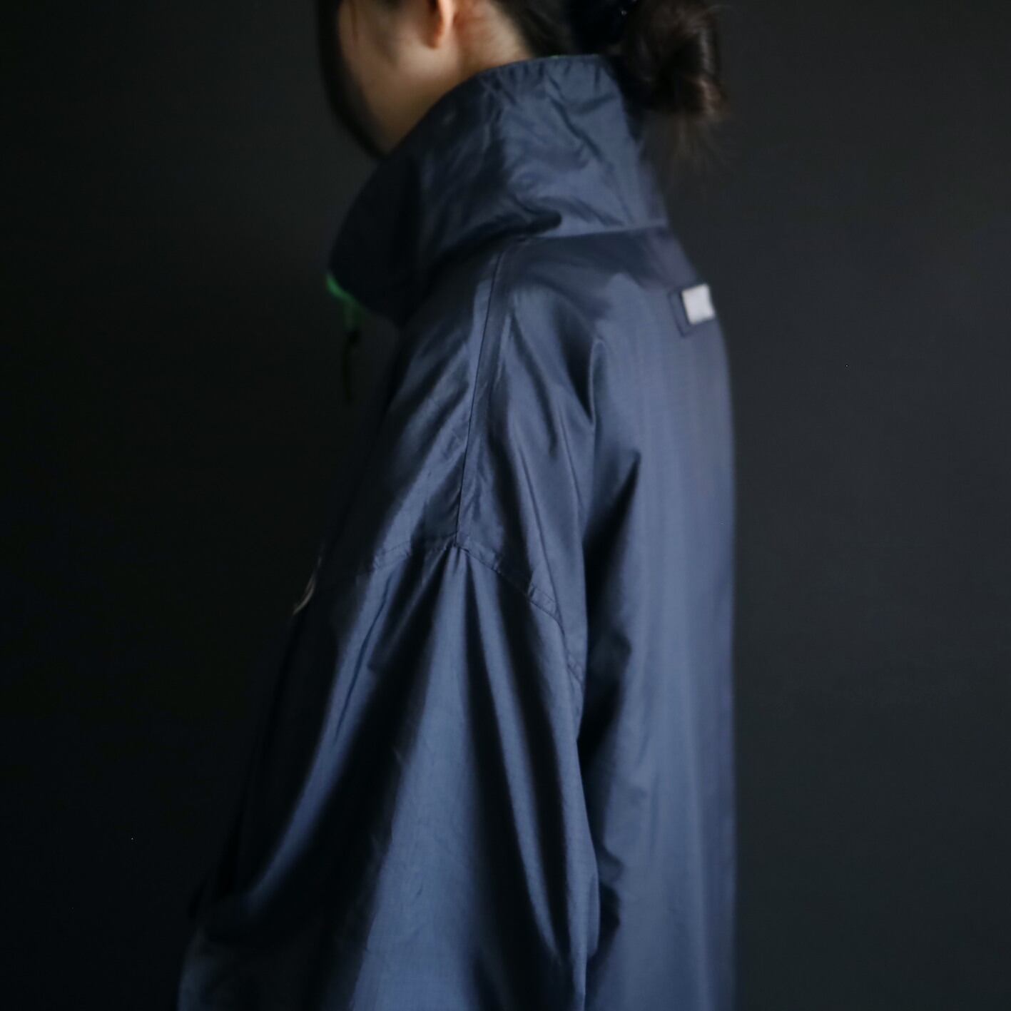 ネイビーのボディをベースに,ジップライン,袖際マジックテープ,マフポケットなどが蛍光グリーンに切り替わった一枚.