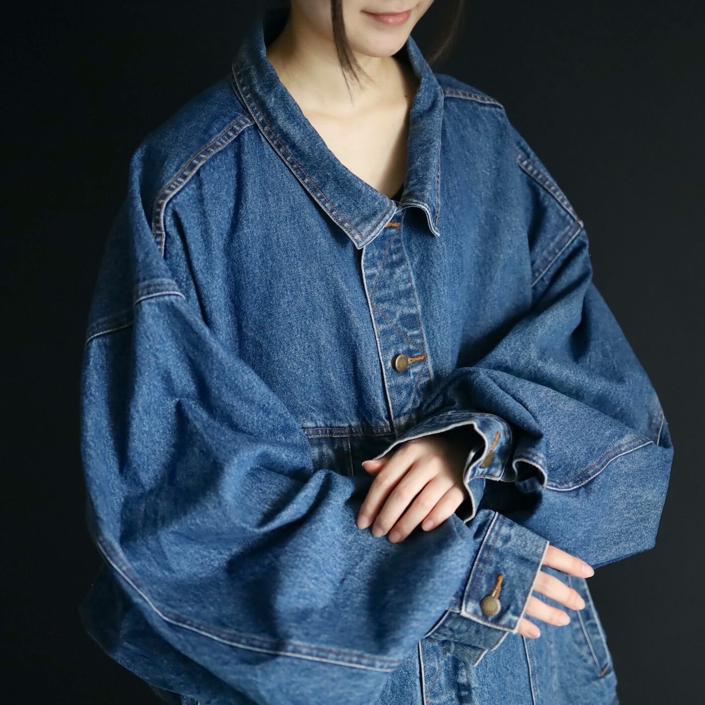 このたっぷりなデニム生地を活かした立体感と,緩やかに広がるようなAラインシルエットは極上.