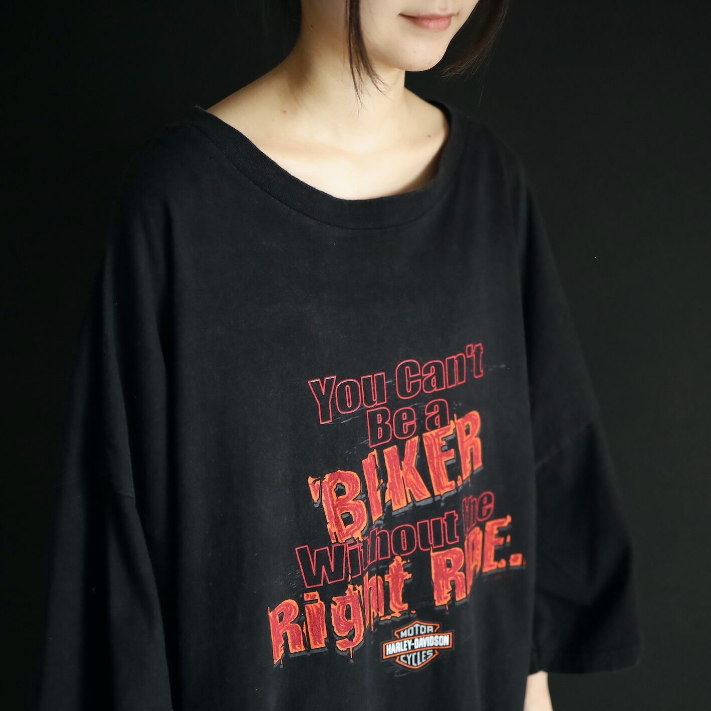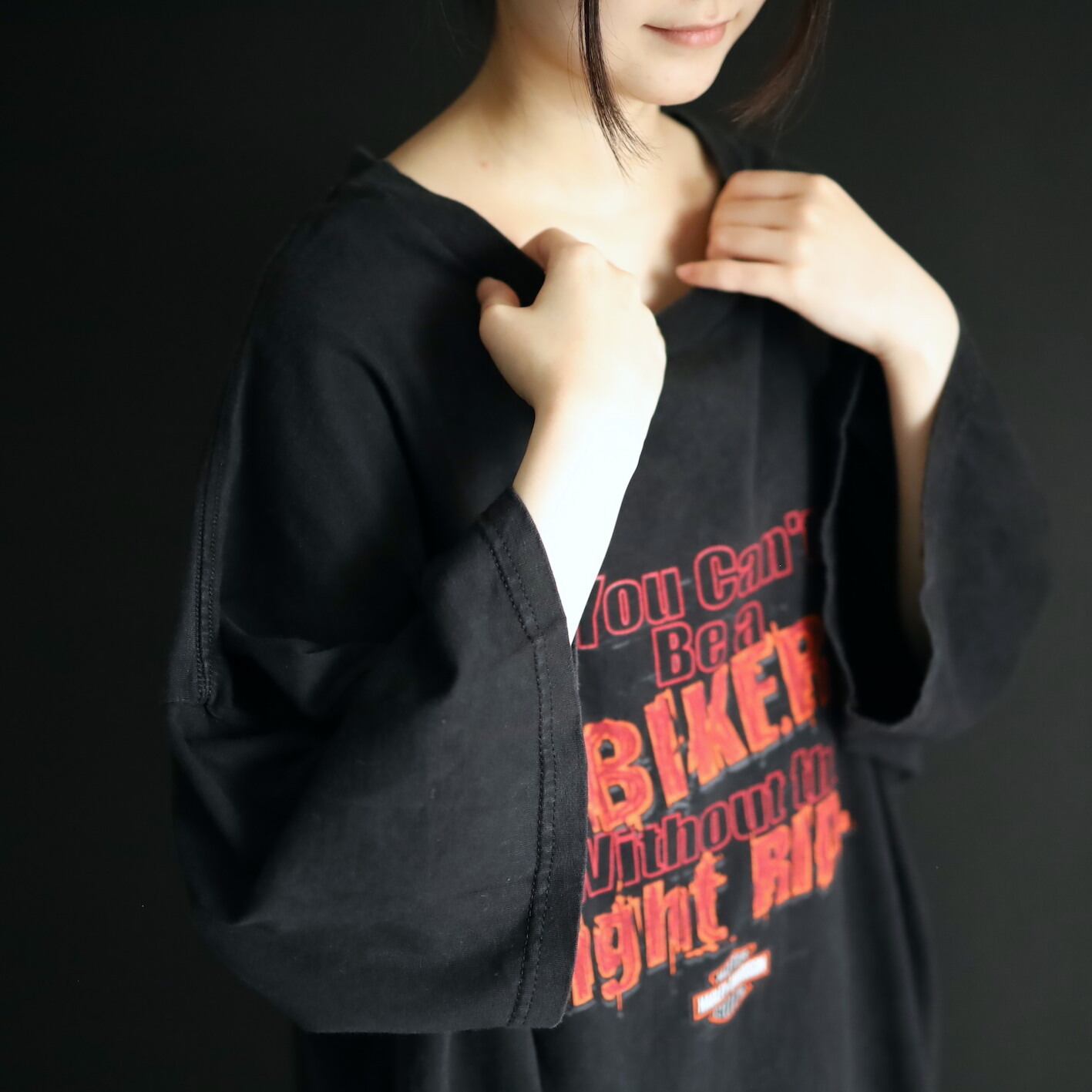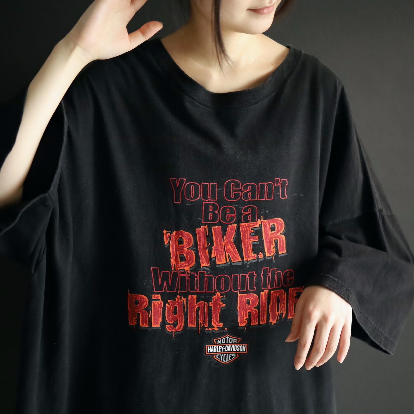 両面ともバイカーに向けたプリントですが,ハーレーの中でもヤンチャ感控えめな仕上がりが◎